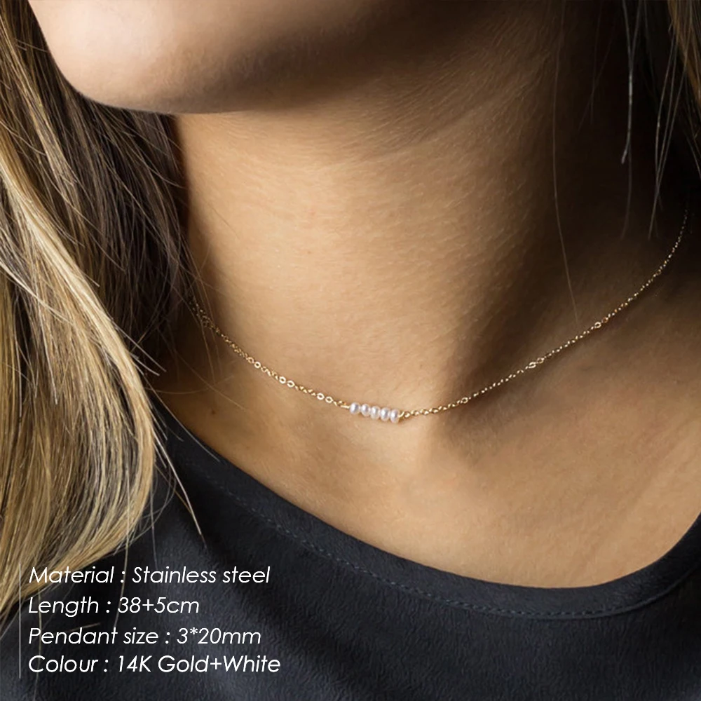 Minimalist Women 14k Gold Plated Necklace Plastic Pearl Bead Necklace Stainless Steel Collar Jewelry