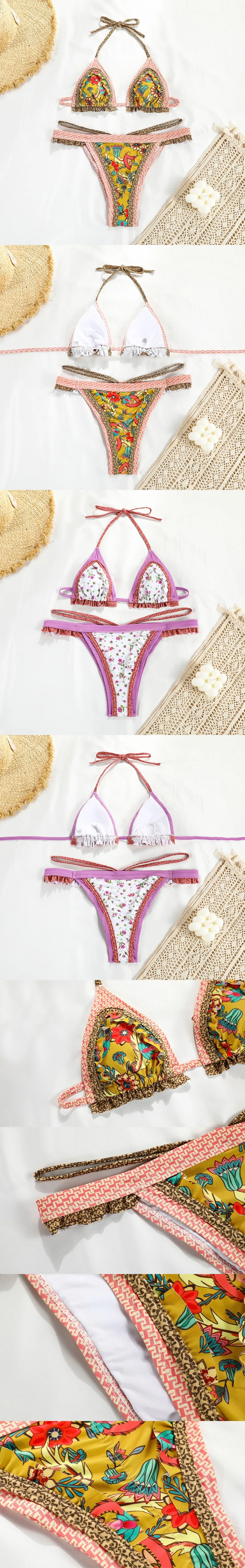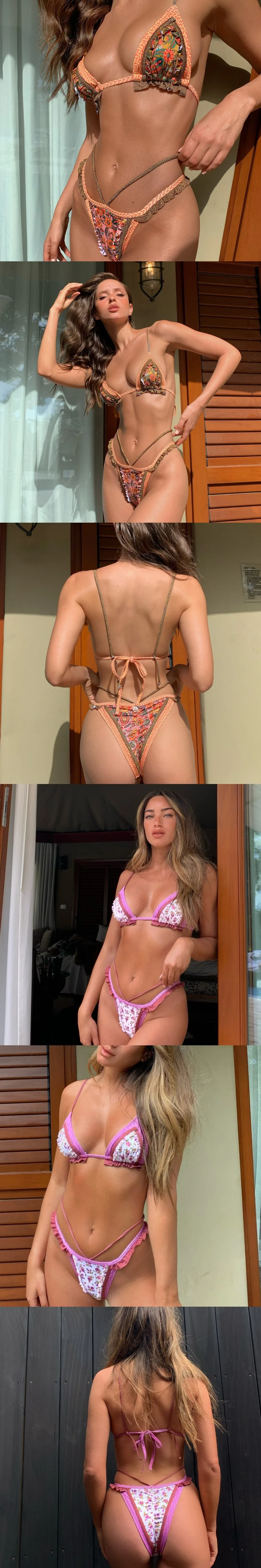 Missadola New Design Wholesale Brown Pink Vintage Printed Back Strap Sexy Swimsuit Women Swimwear Beachwear