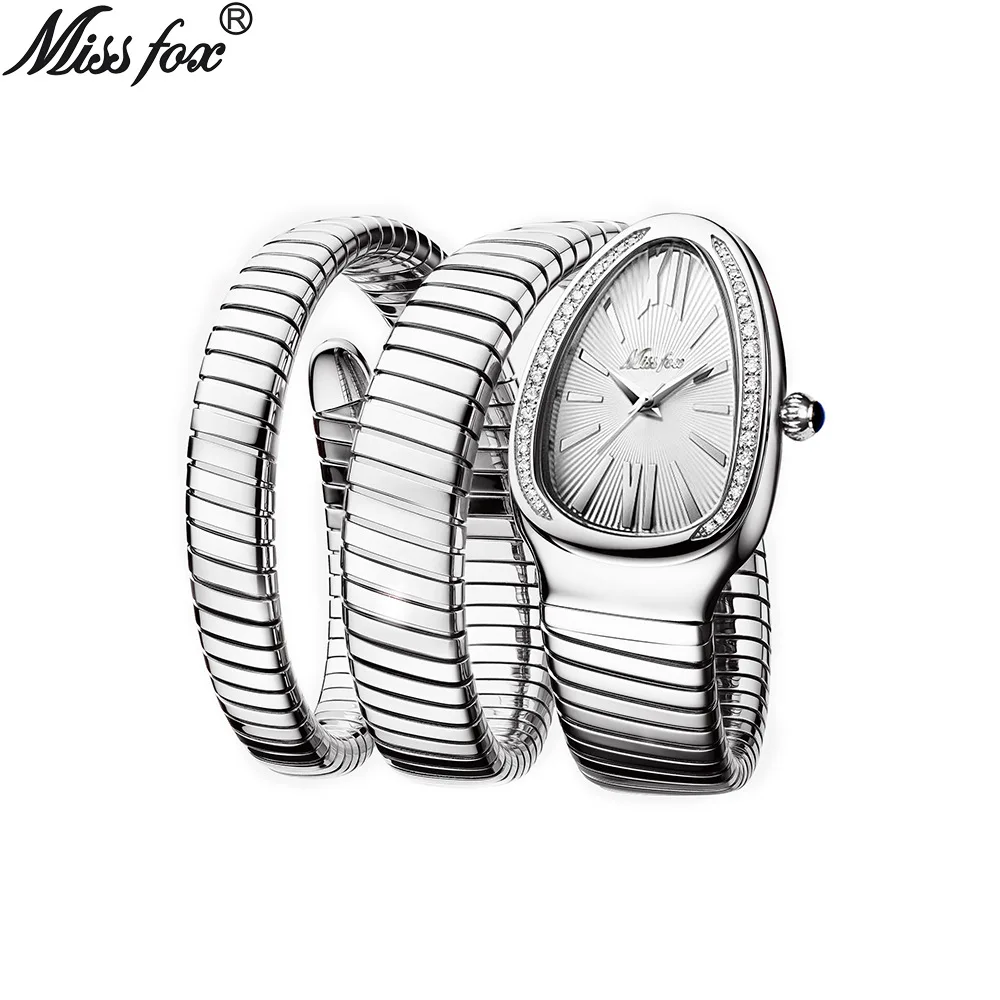 MISSFOX Women's Watches Double Bracelet Snake Shape Luxury Stainless Steel Wristwatch Japanese Quartz Ladies Watch