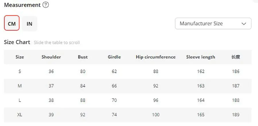 size_info: {"sizeInfoList":[{"length":{"cm":"36","inch":"14.17"},"size":"S","vid":-40},{"length":{"cm":"37","inch":"14.57"},"size":"M","vid":-41},{"length":{"cm":"38","inch":"14.96"},"size":"L","vid":-42},{"length":{"cm":"39","inch":"15.35"},"size":"XL","vid":-43}]}