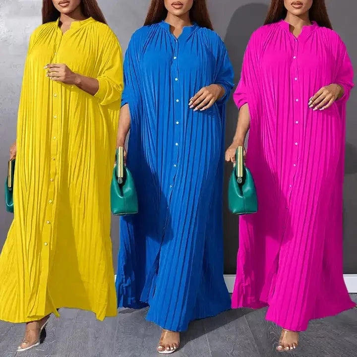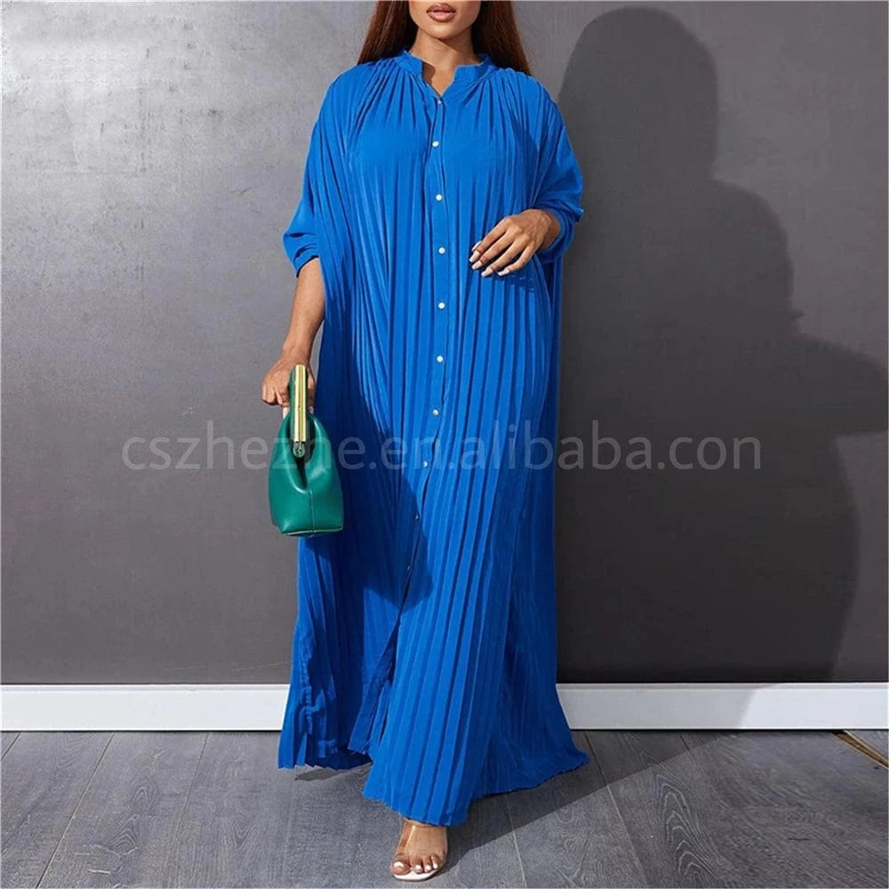Modest 2024 Spring Solid Long Sleeve Single Breasted Blouse Shirt Dress Islamic African Loose Robe Dress Plus Size S-5Xl