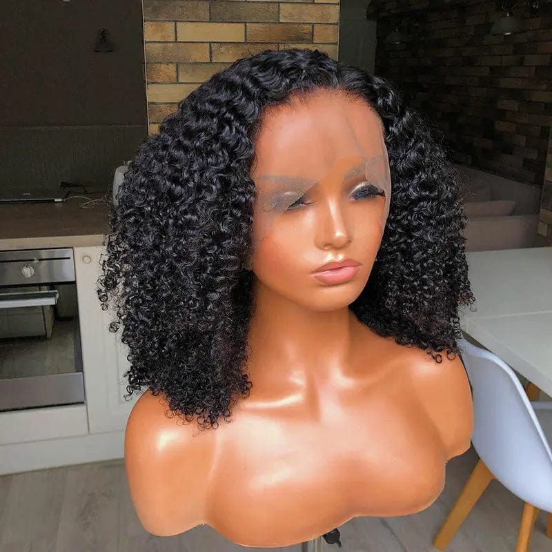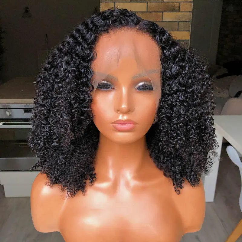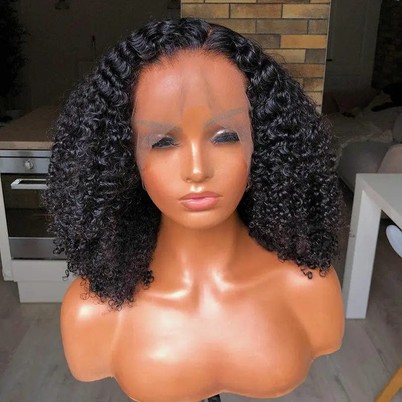 Mongolian Afro Kinky Curly Wig 400% High Density Pre Plucked Glueless Hair Lace Frontal Closure Wigs