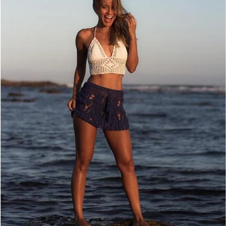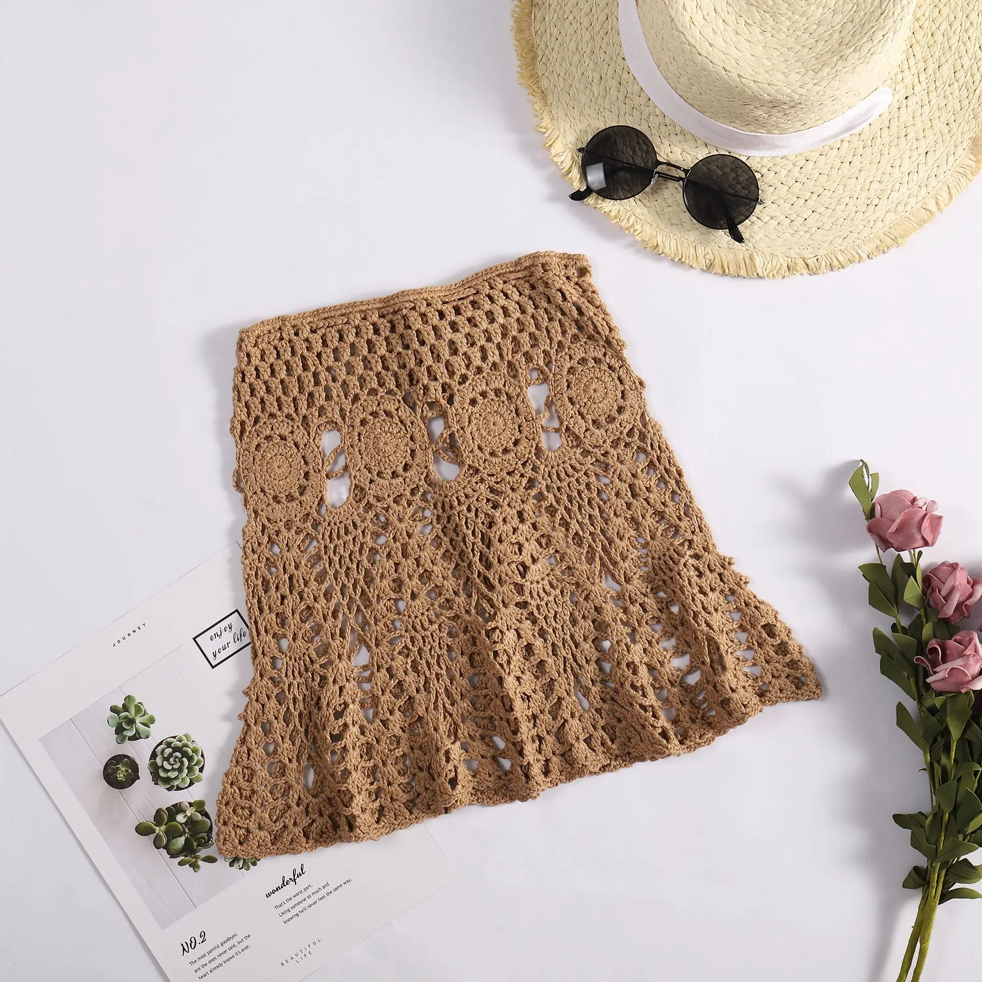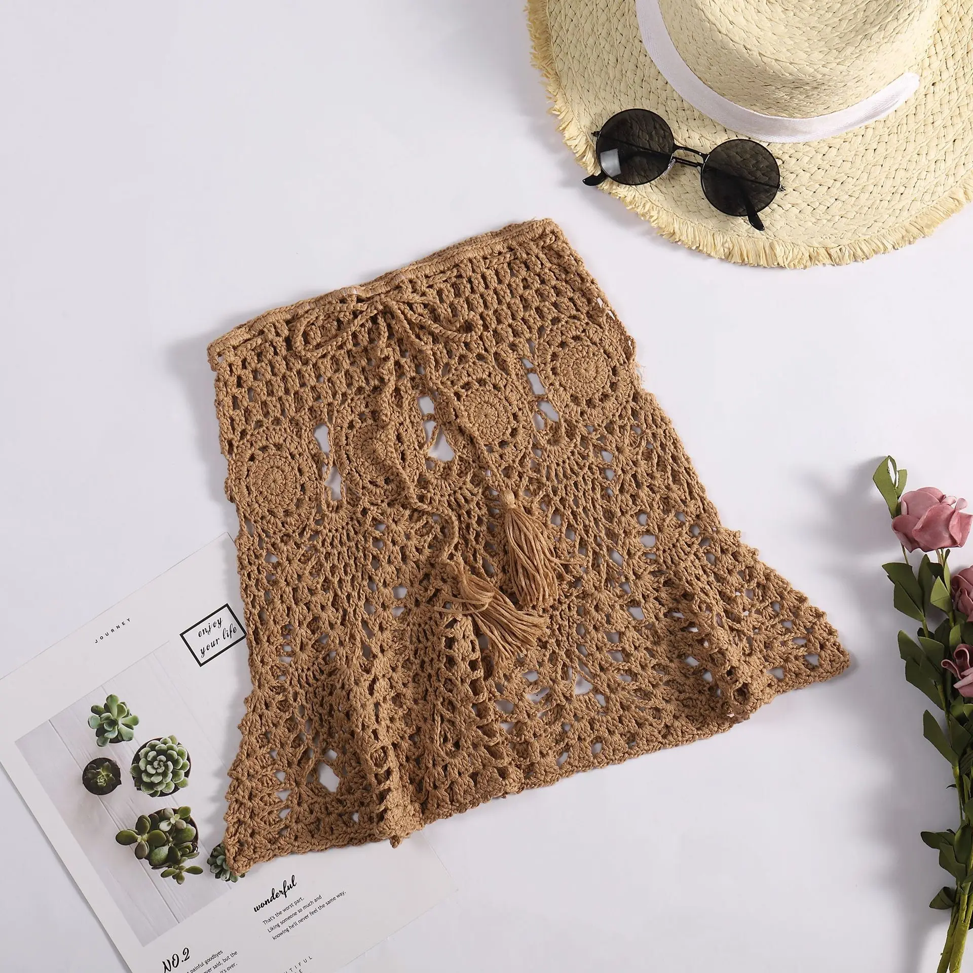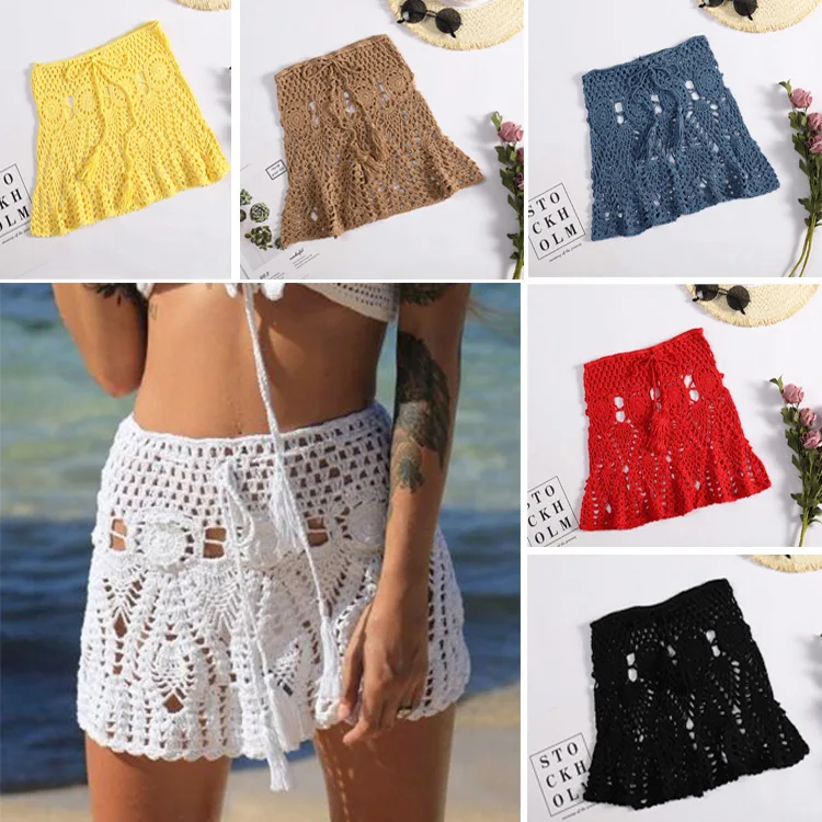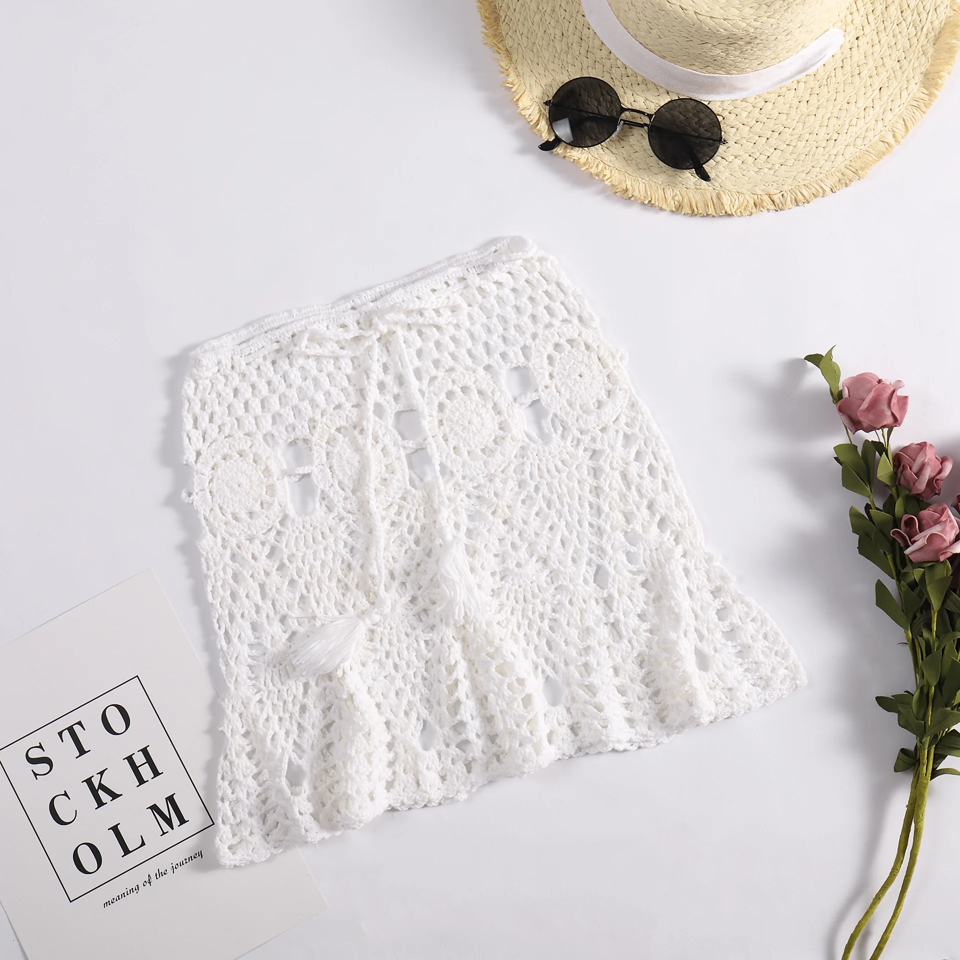 moroccan thailand knitted ladies white beach dresses mesh dress swimwear bikini hollow out sexy crochet skirt swimsuit bottom