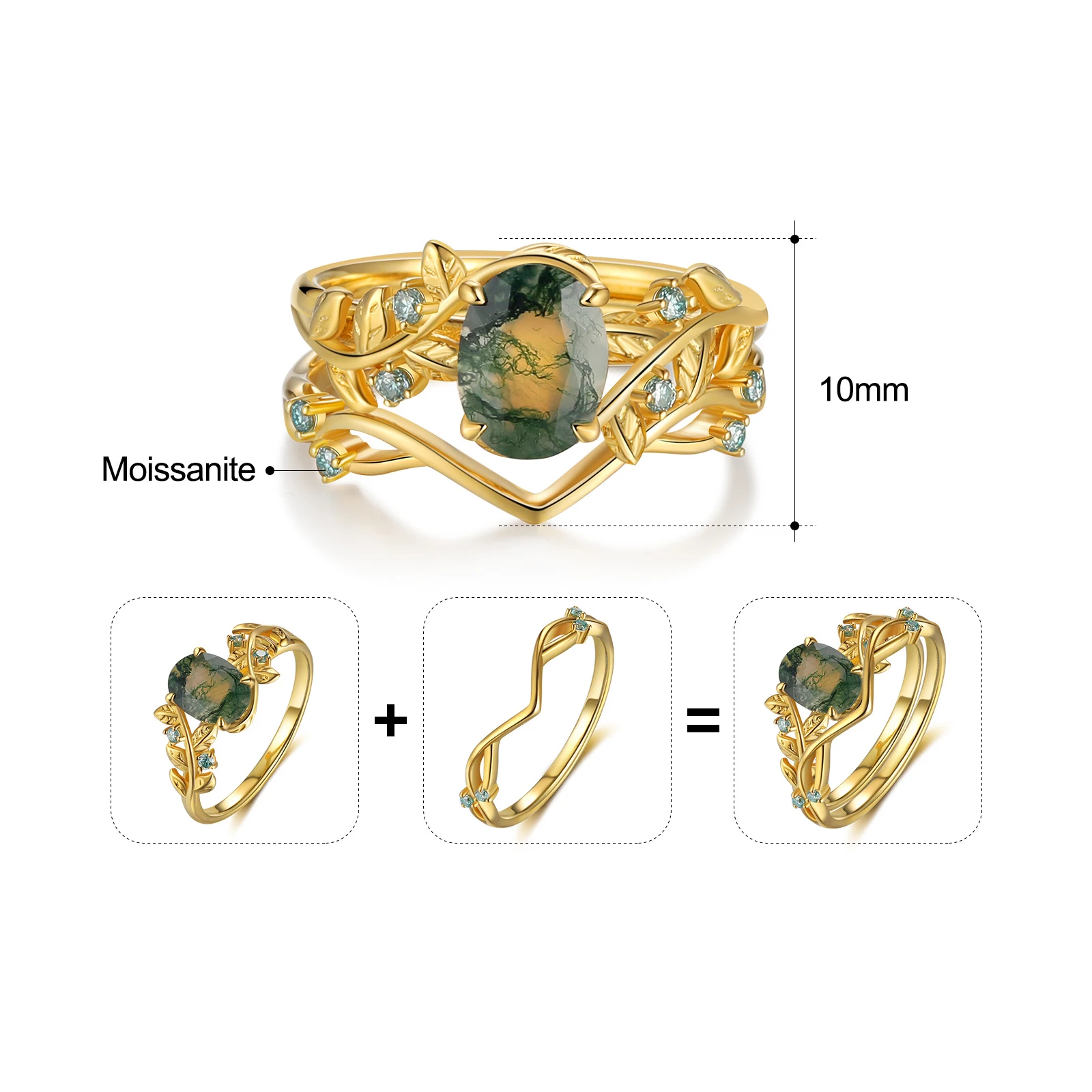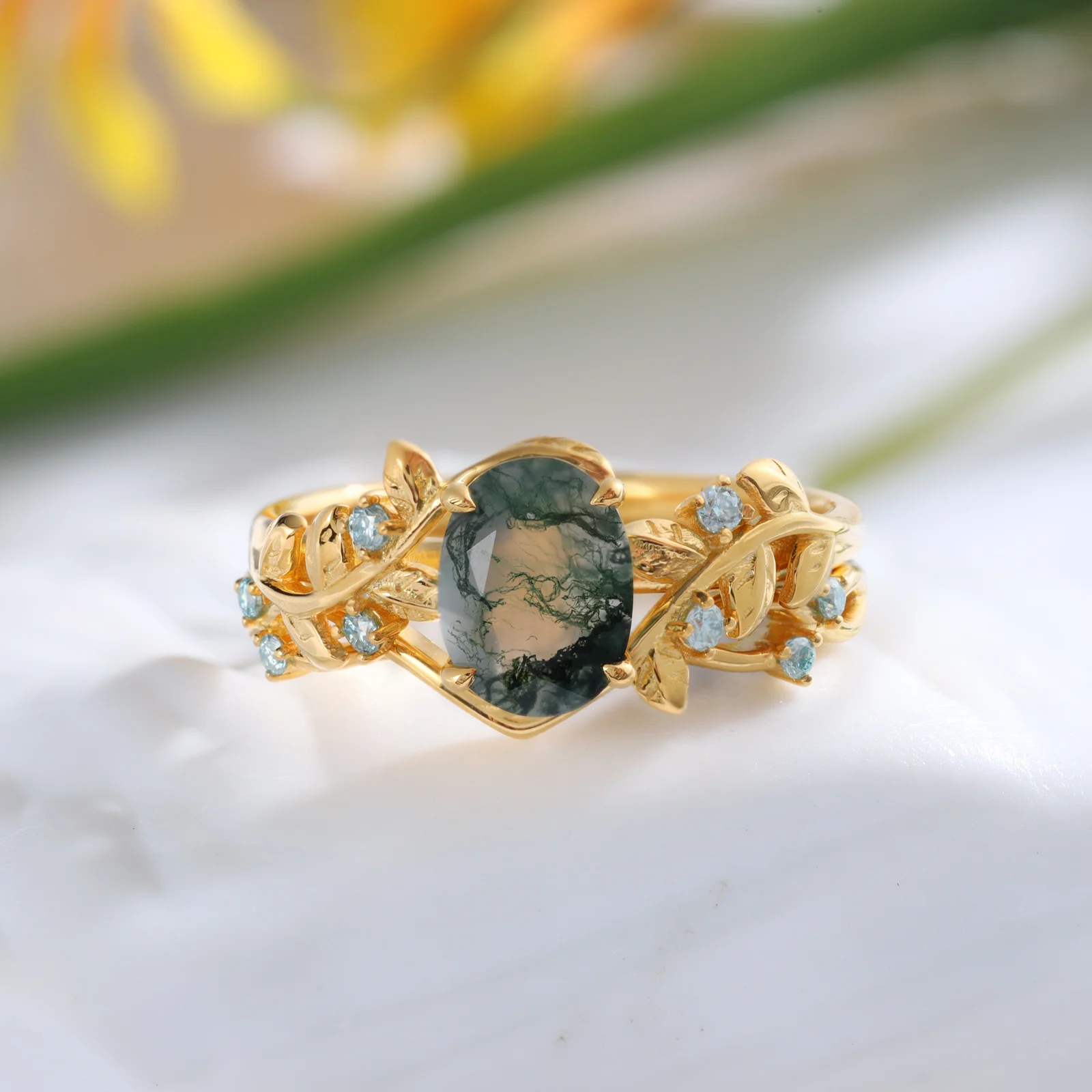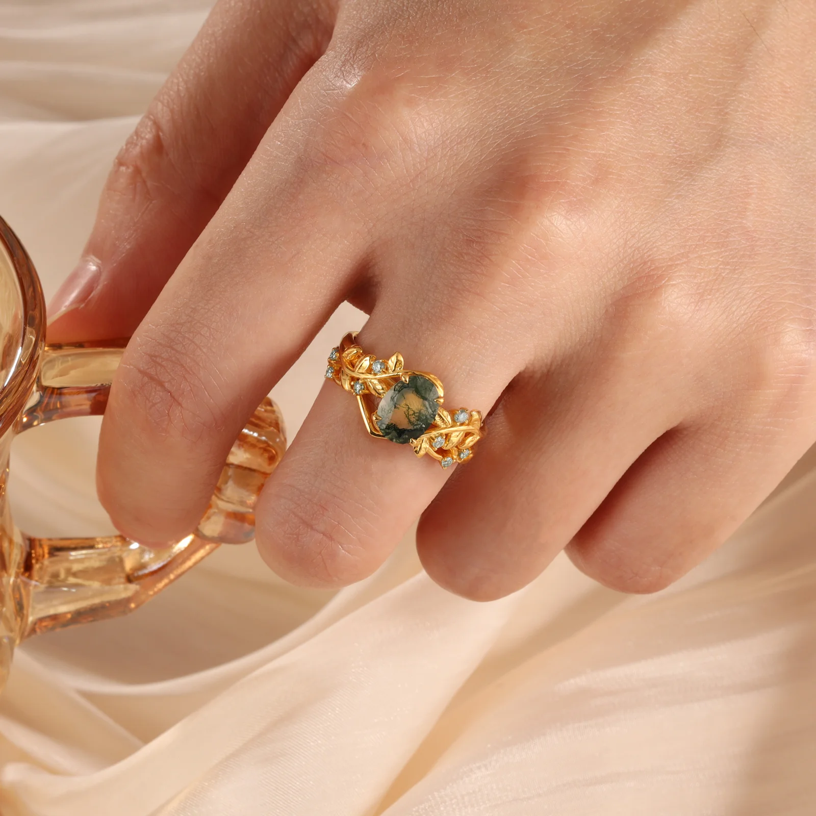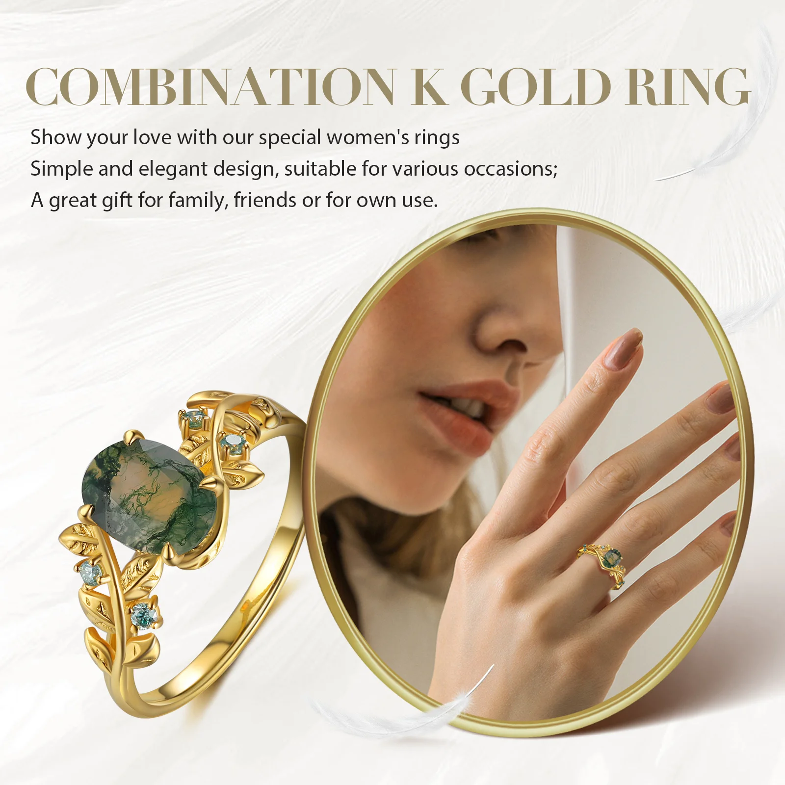 Moss Agate Gemstone Ring 925 Sterling Silver Wedding Rings Fine Jewelry