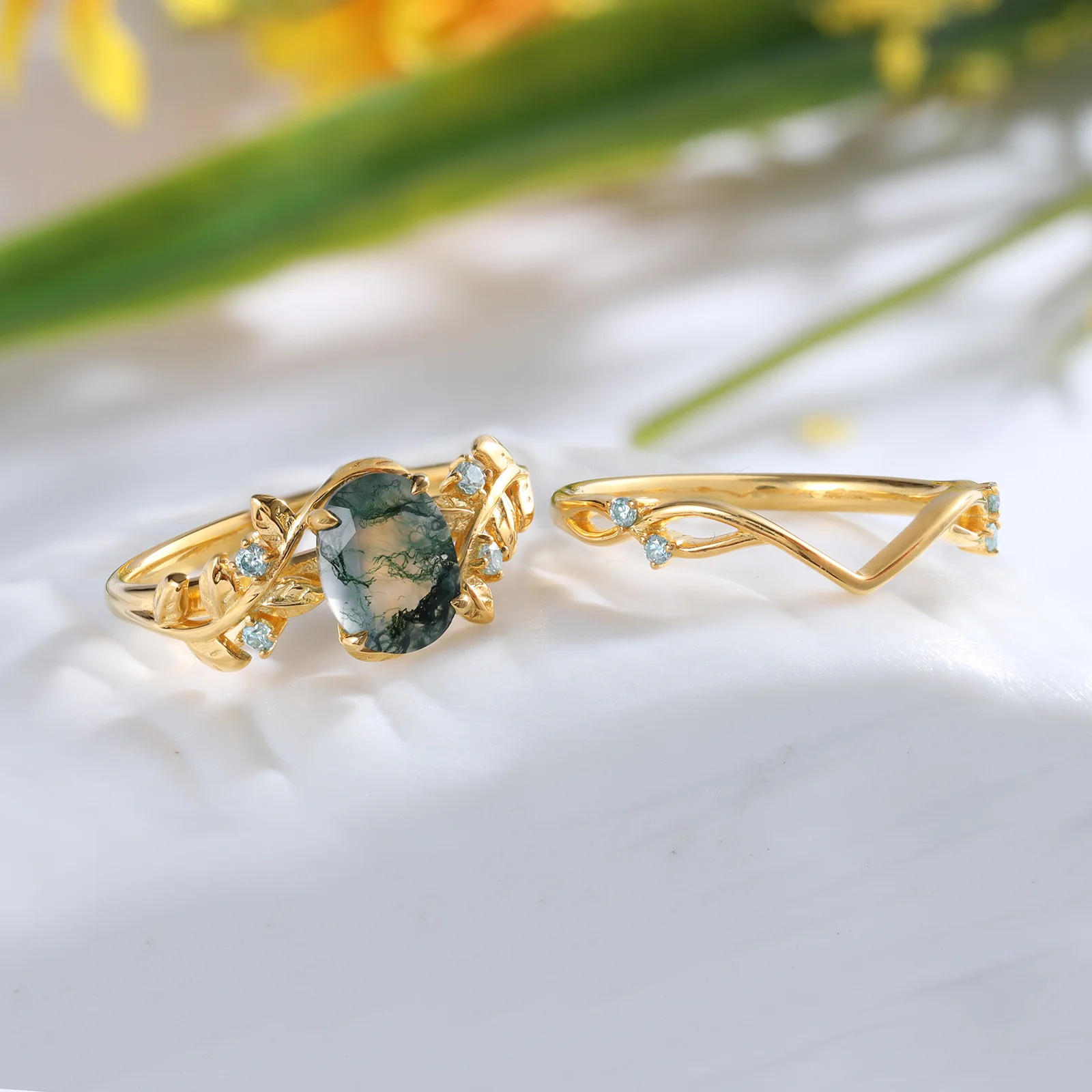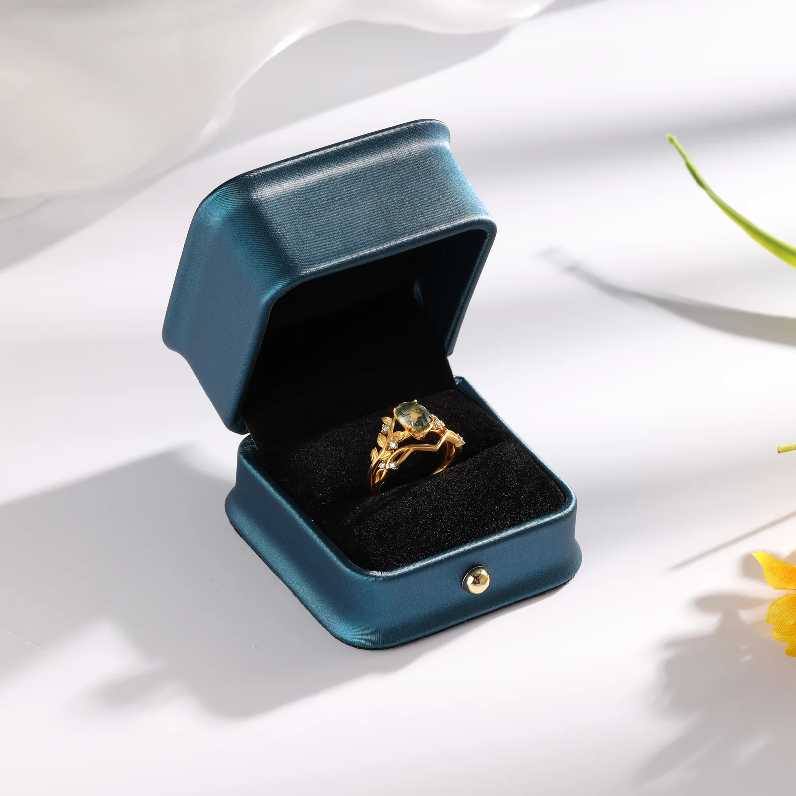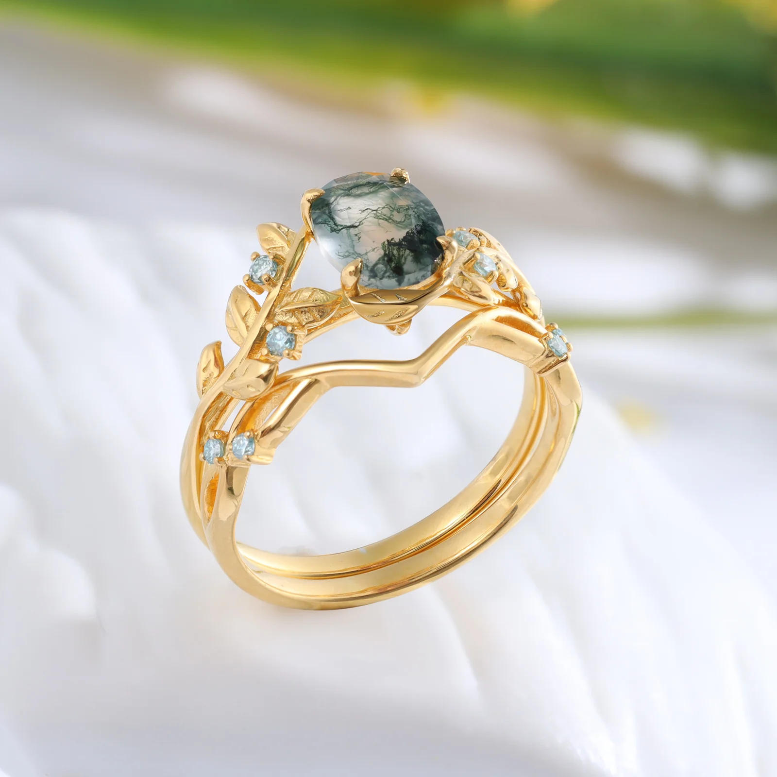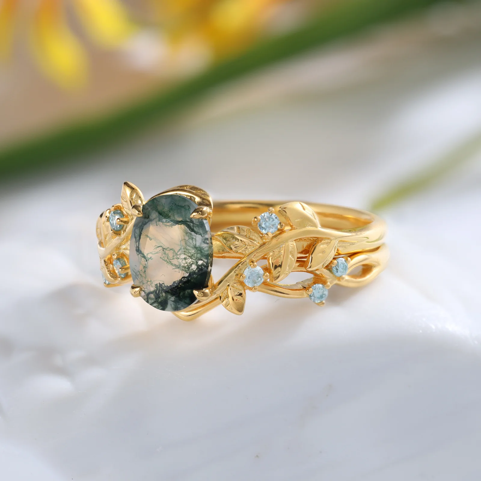 Moss Agate Gemstone Ring 925 Sterling Silver Wedding Rings Fine Jewelry