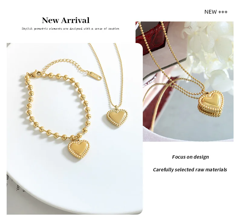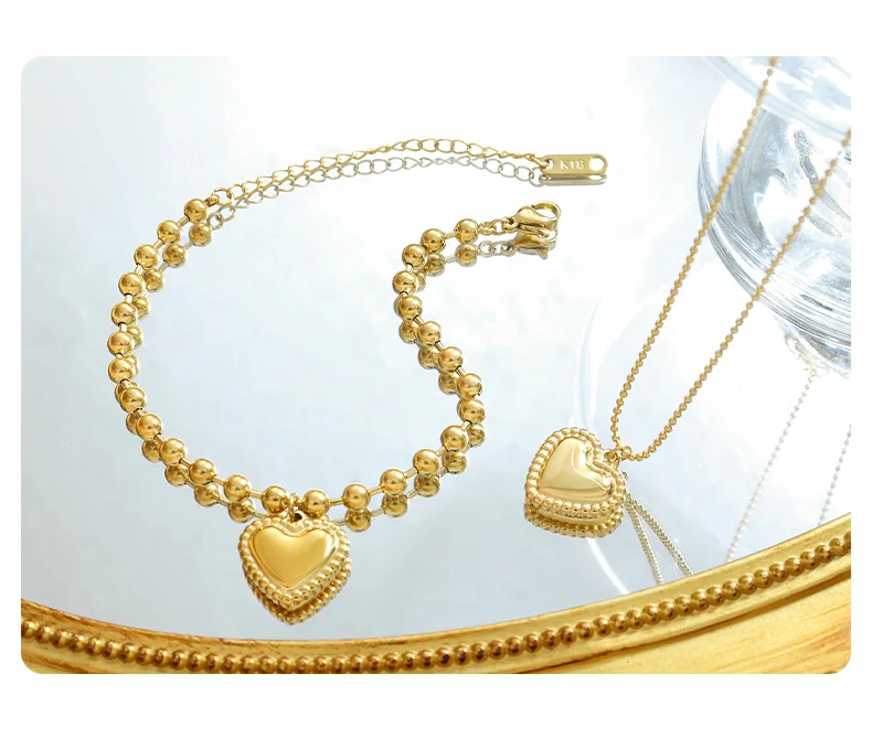 mothers day Heart temperament lace stainless steel bracelet necklace jewelry sets