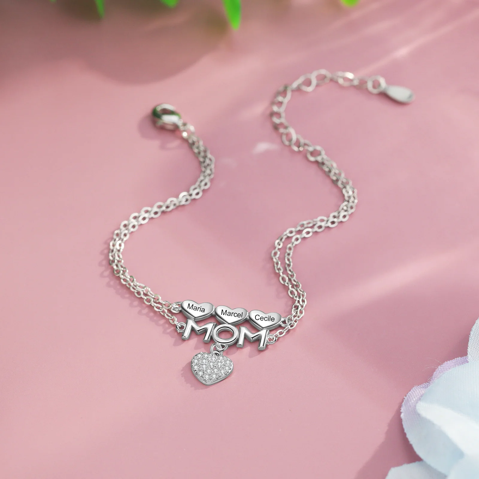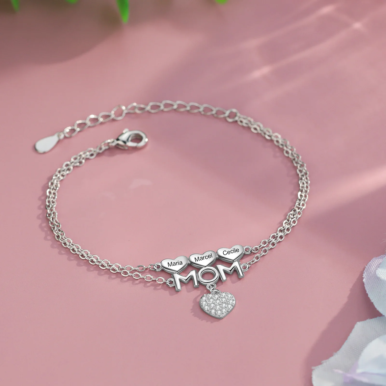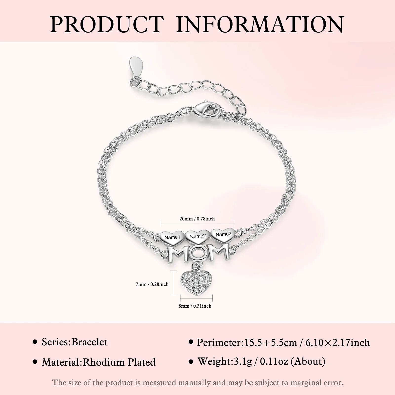 Mother's Jewelry Heart and Inlay Heart Women Bracelet Fashion Jewelry Mom Double Chain Bracelets