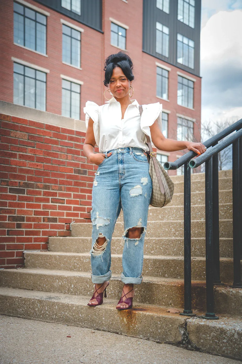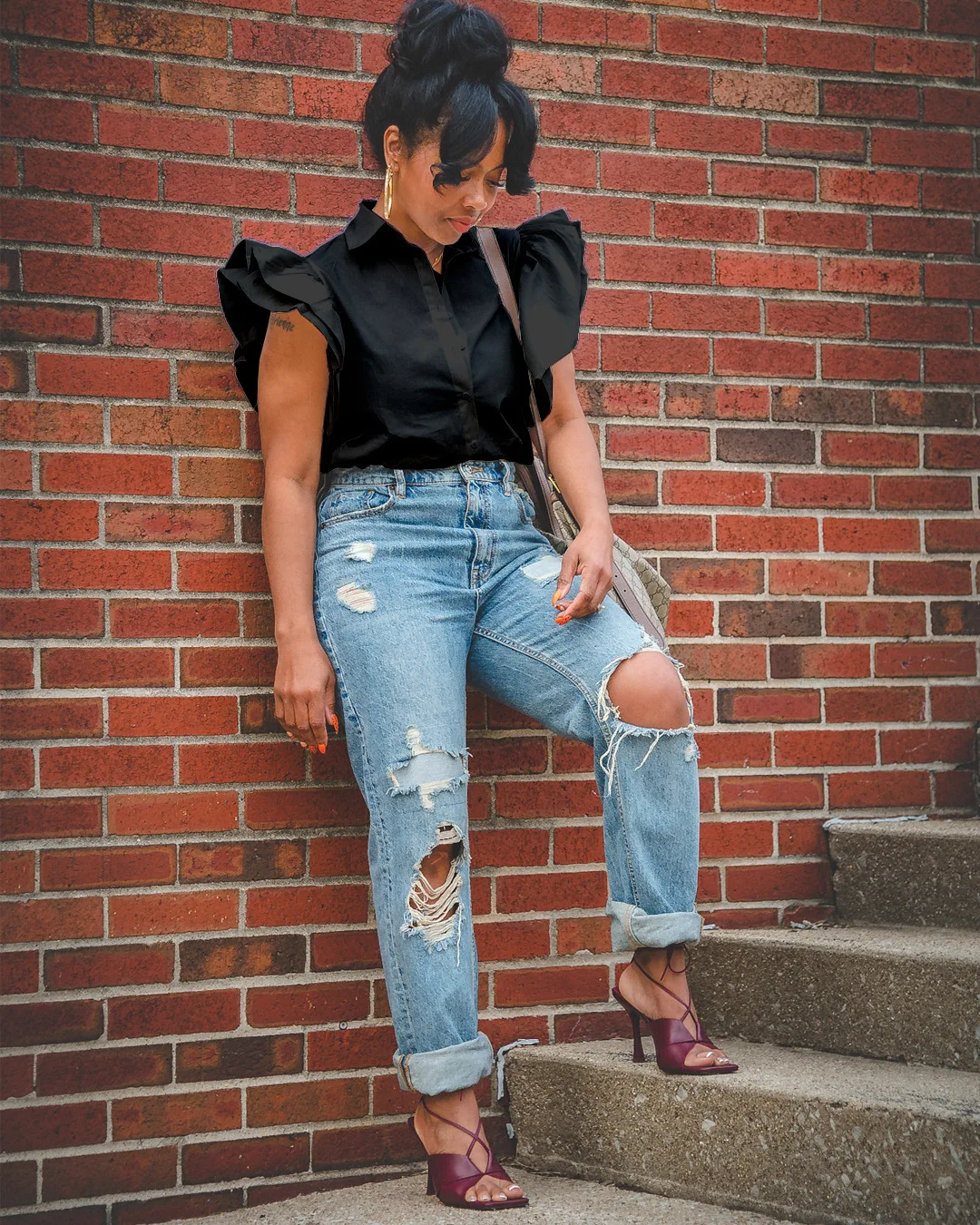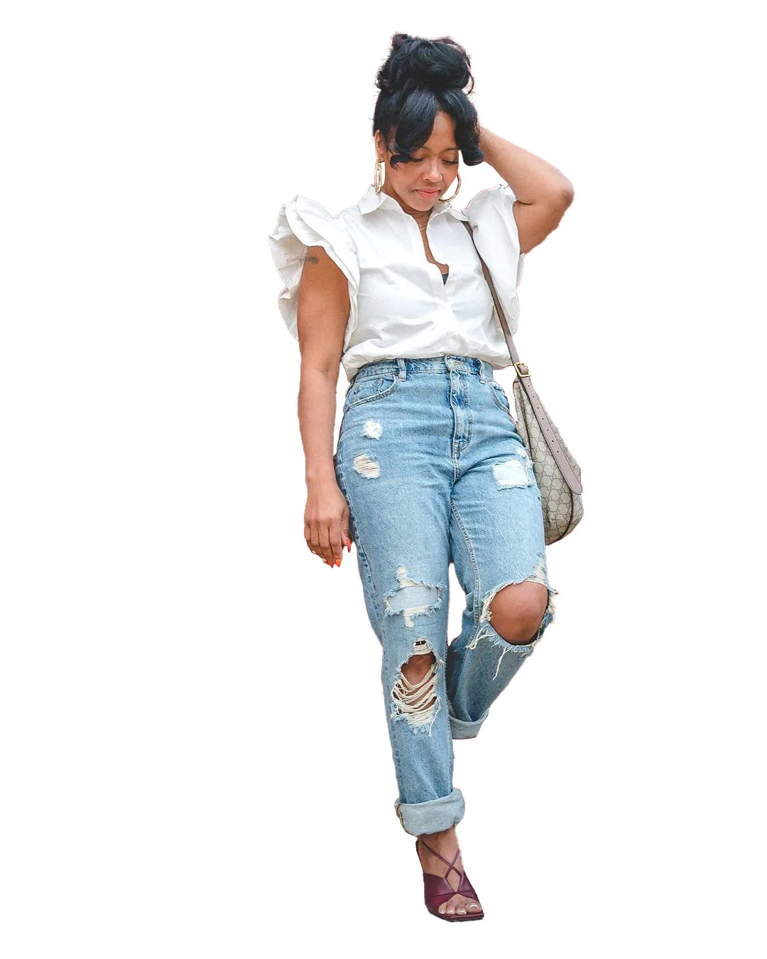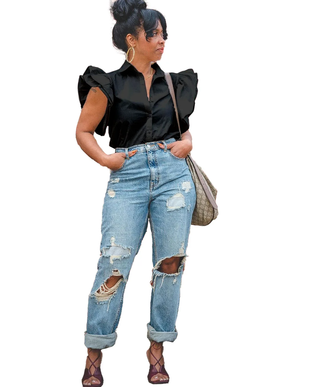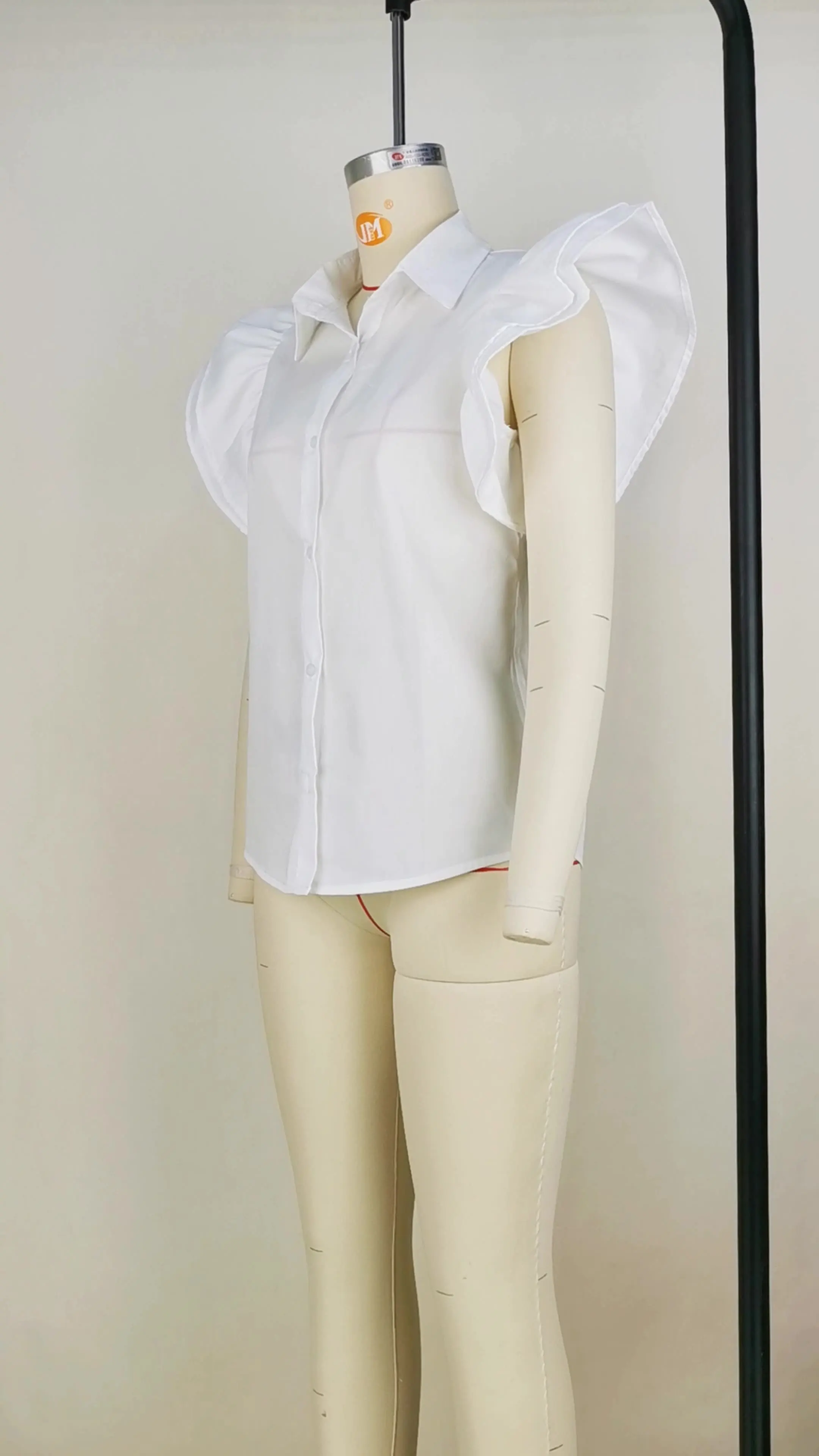 Ms1868 Summer Solid Color Lotus Leaf Sleeve Flower Petal Sleeve Commuting Shirt Top Street Wear Fashionable Tops