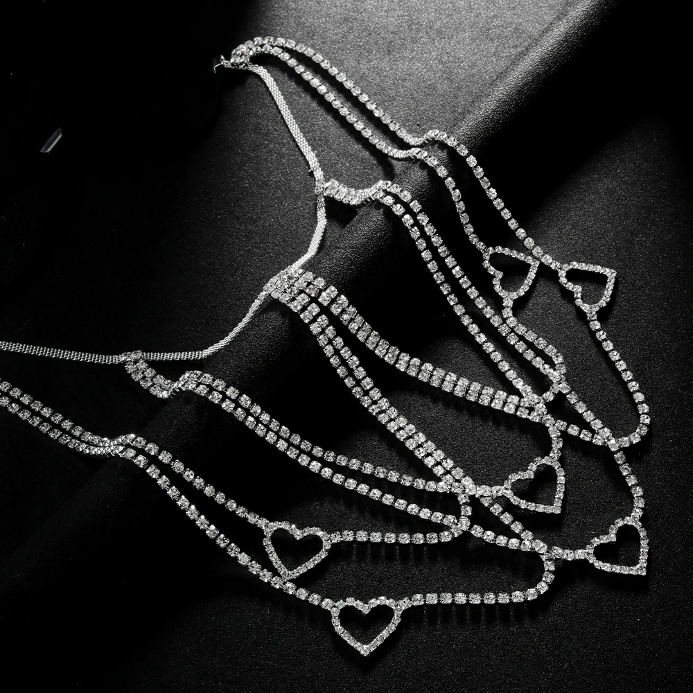 Multi Layer Heart Design Rhinestone Thigh Chain Jewelry For Women Girls Nightclub Party Sexy Crystal Body Leg Chain Wholesale