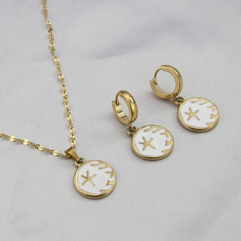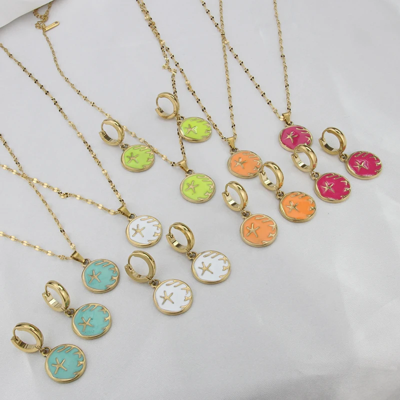 Multicolor Jewelry Set Starfish Pattern 18k Gold Plated Stainless Steel Pendant Necklace Waterproof Chains Choker Jewelry