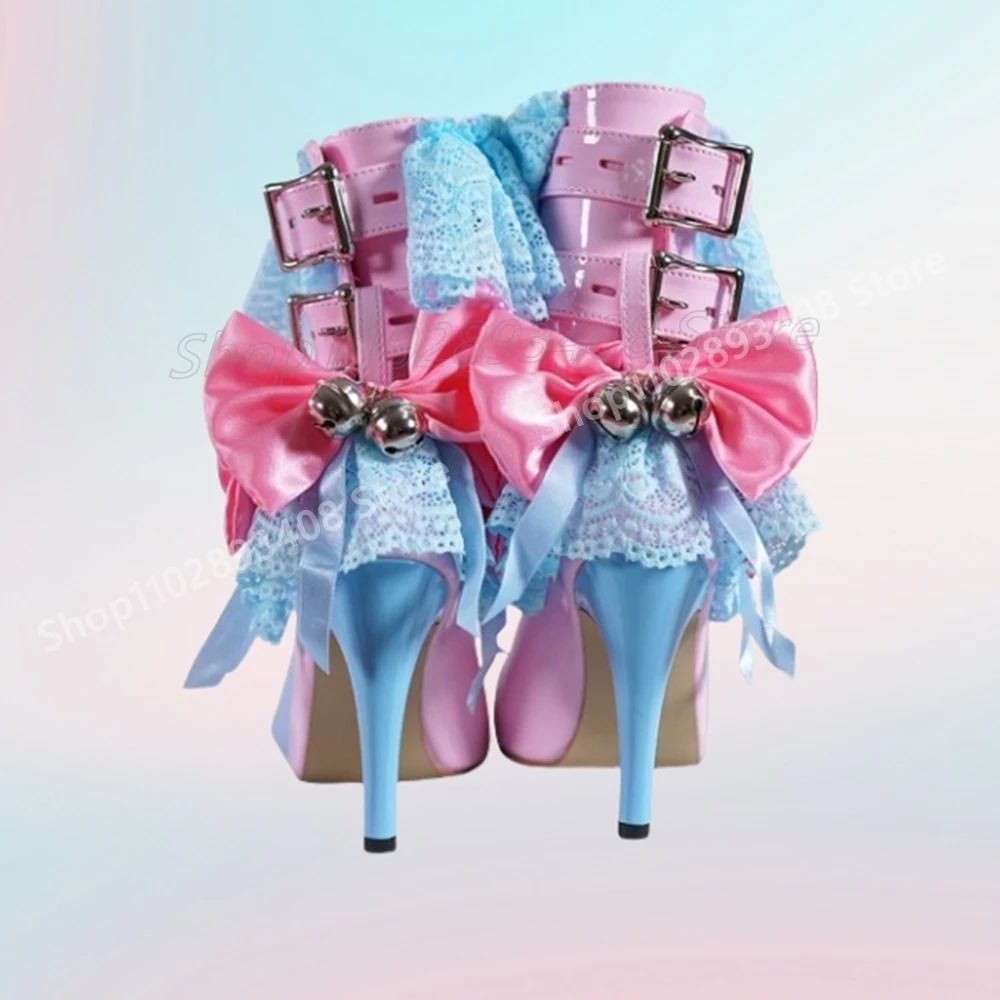 Mutilcolor Ankle Buckle Belts Lace Decor Pumps Butterfly Knot Bell Cosplay Sexy Stiletto High Heel Women Shoes 2025 Para Mujere