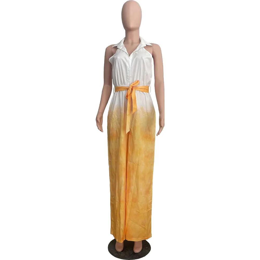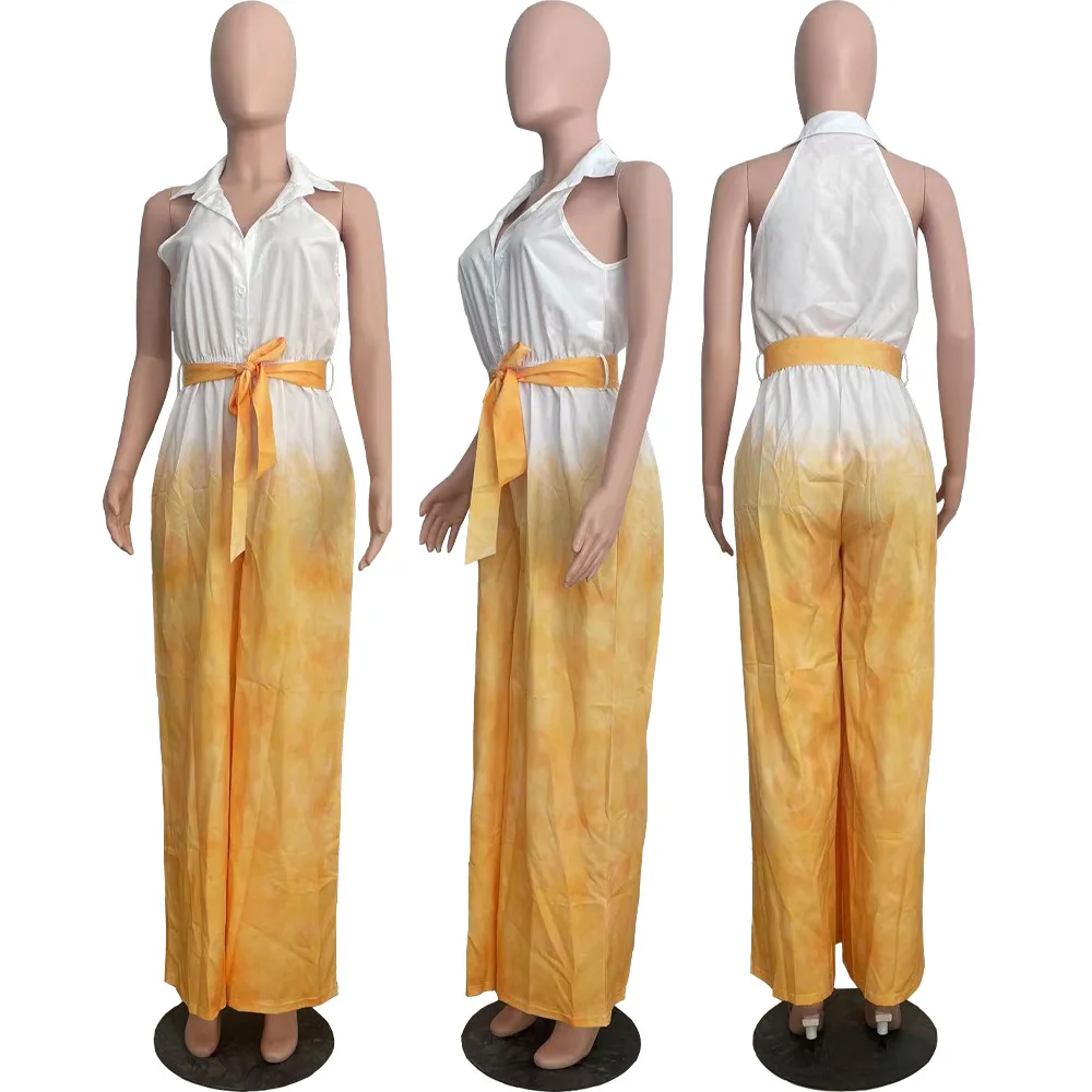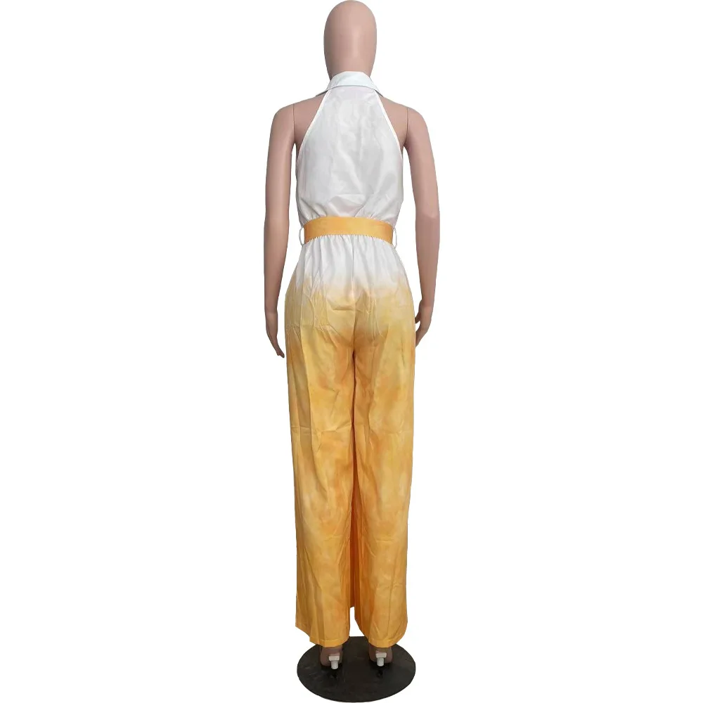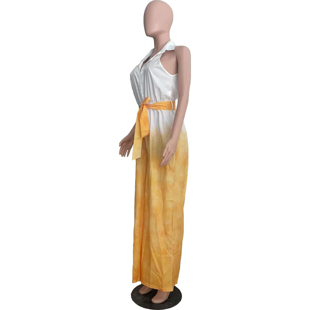 Mx6125 Sexy Sleeveless V Neck Polo Shirt High Waist Contrast Color Wide Leg Pants One Piece Jumpsuit Elegant Street Playsuit
