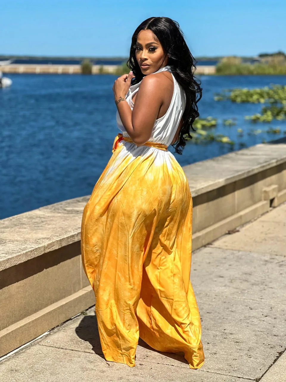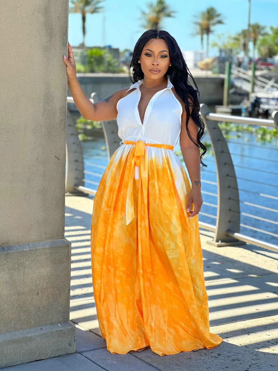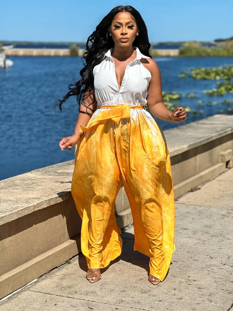 Mx6125 Sexy Sleeveless V Neck Polo Shirt High Waist Contrast Color Wide Leg Pants One Piece Jumpsuit Elegant Street Playsuit