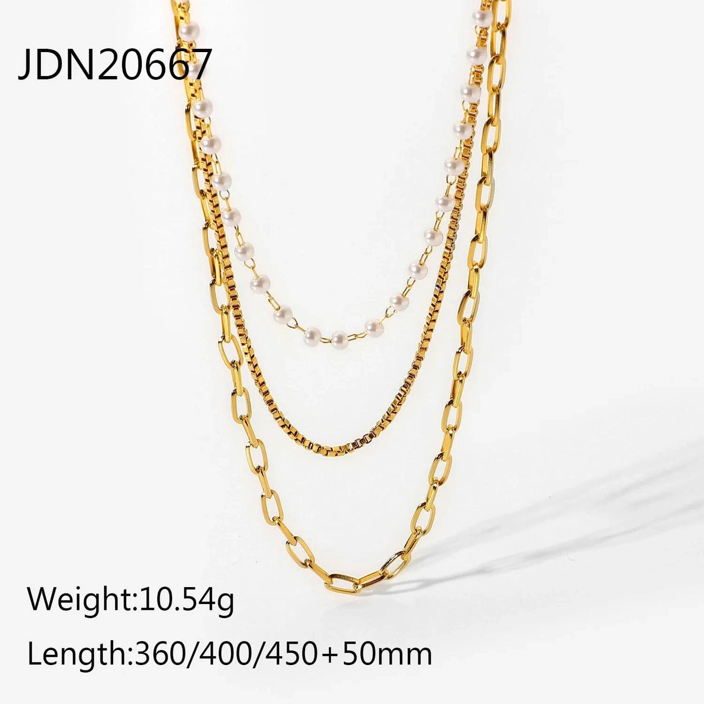 N2501 18k Gold Multi Layer Necklace Pearl Collar Summer Beach Stainless Steel Link Chain Choker Necklace