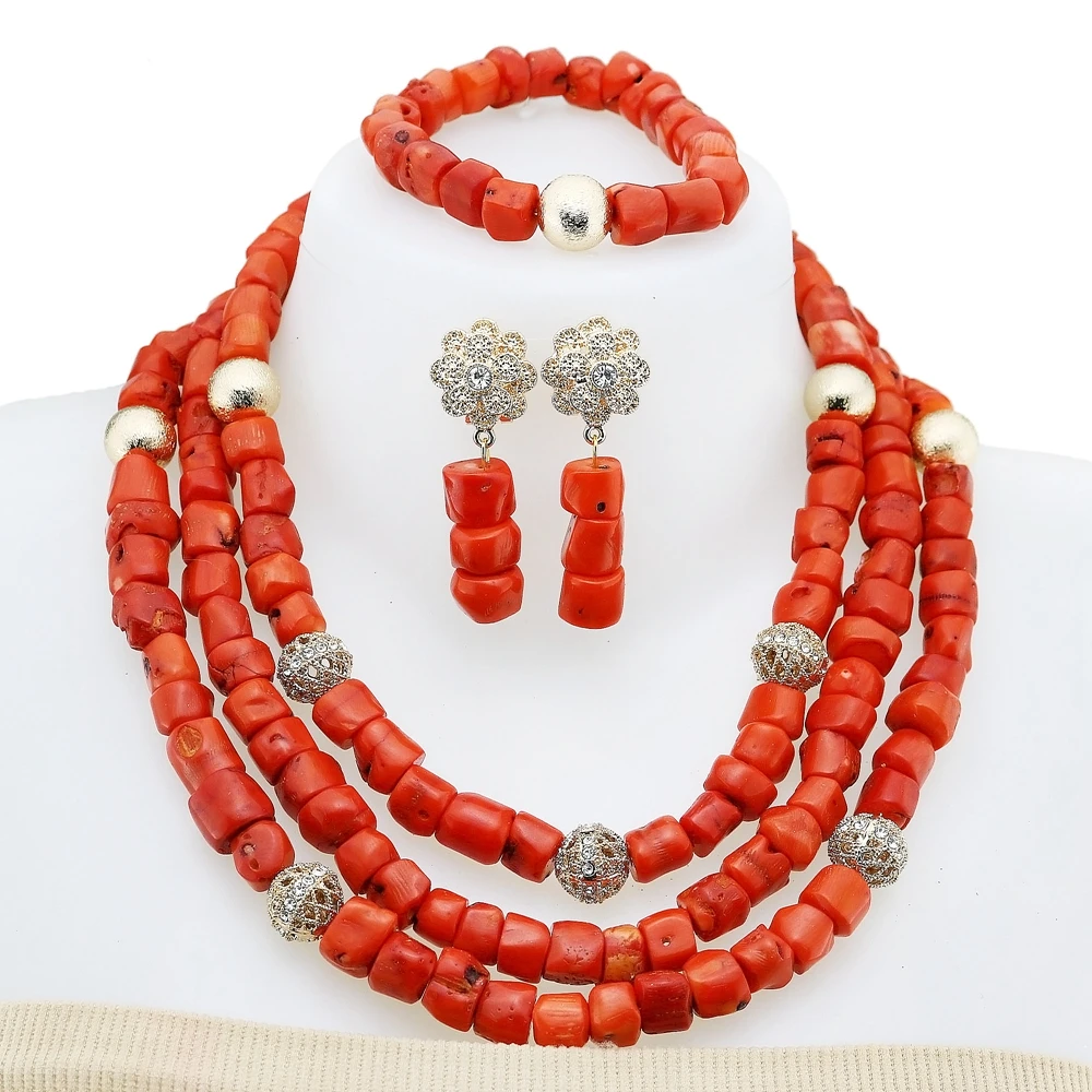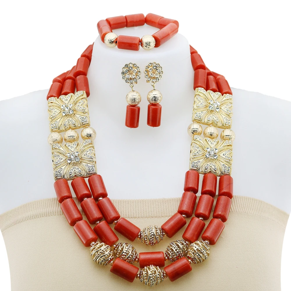 Natural coral beads gold plated high quality fashion latest wedding party gift bridal hot sale wholesale factory jewelry set