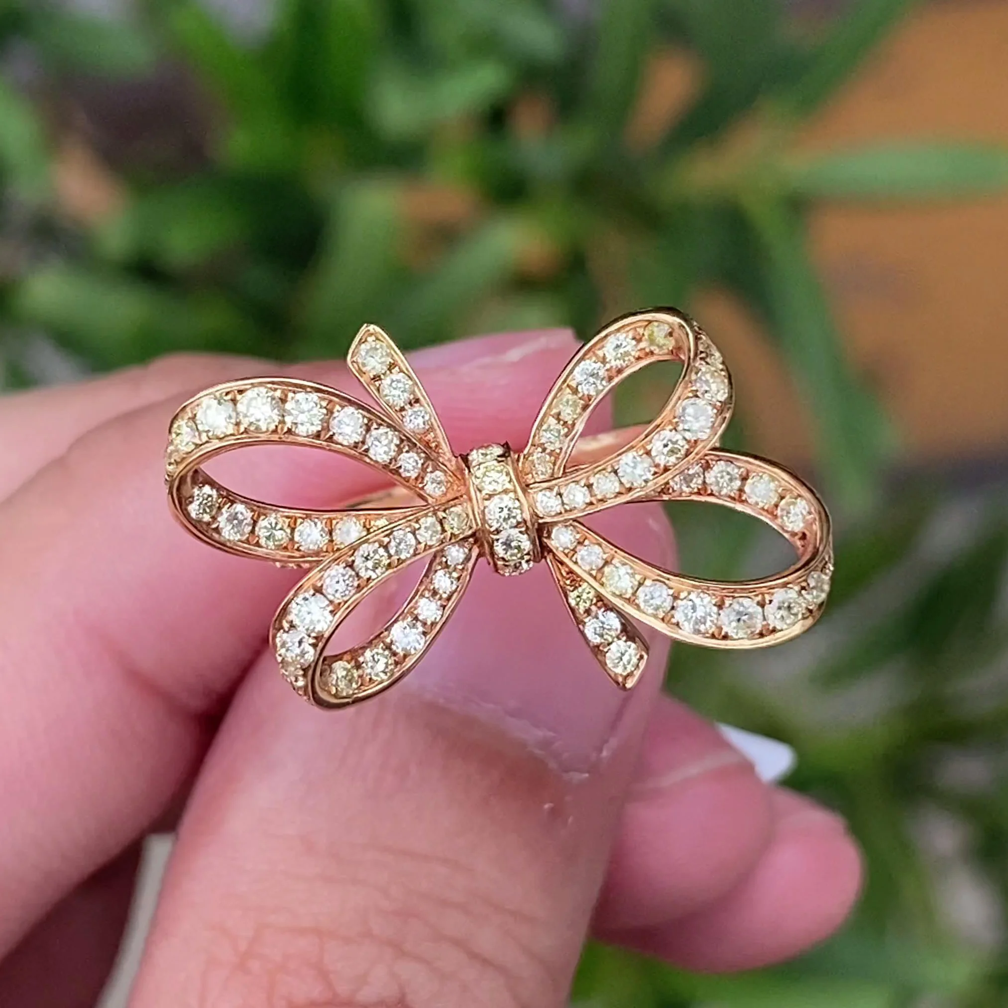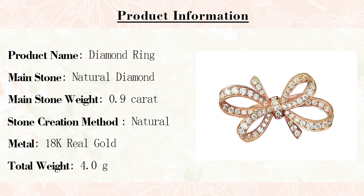 natural diamonds jewelry gold jewelry 18k real classical bowknot delicate diamond stone ring