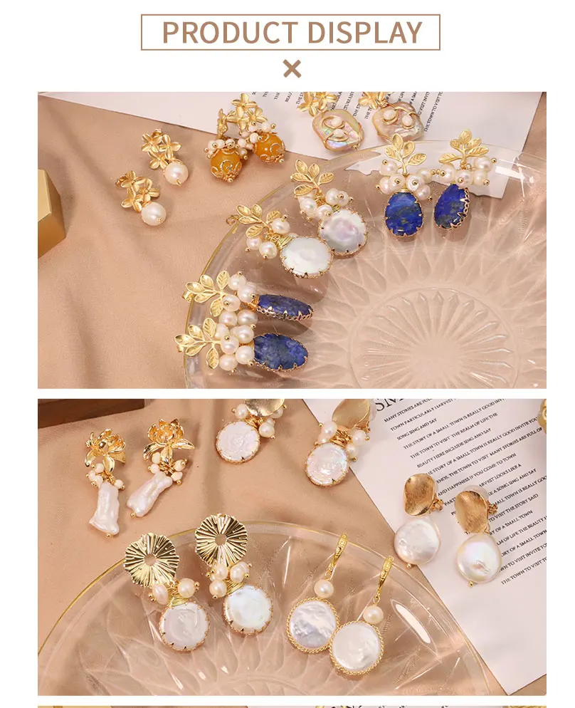 Natural Freshwater Pearl Drop Earrings For Women Bridal Baroque Statement Luxury Flower Dangle Earrings Fine Jewelry