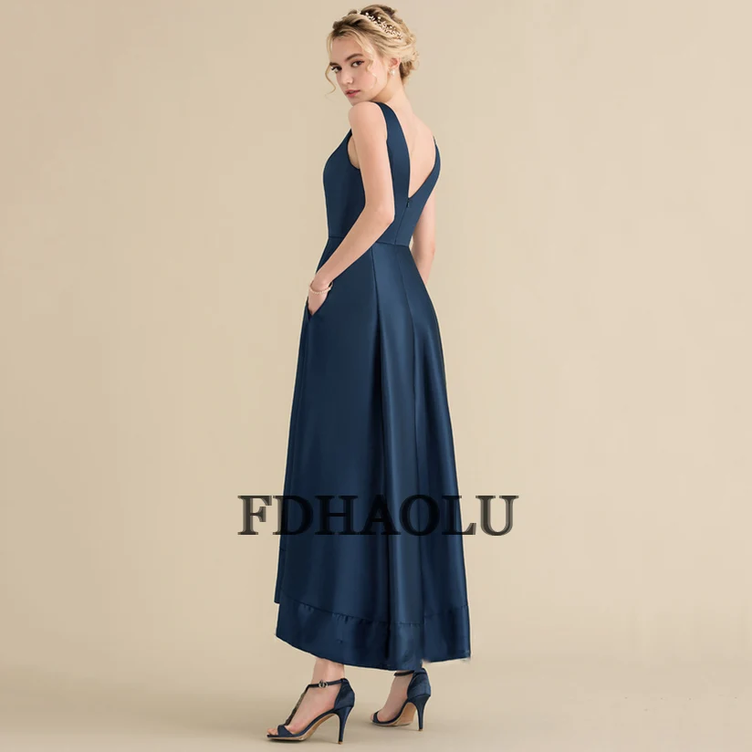 Navy Blue Prom Dresses Long Ankle Length V-Neck Zipper Back Satin Evening Gowns Formal Party Dress Vestidos De Festa Customized