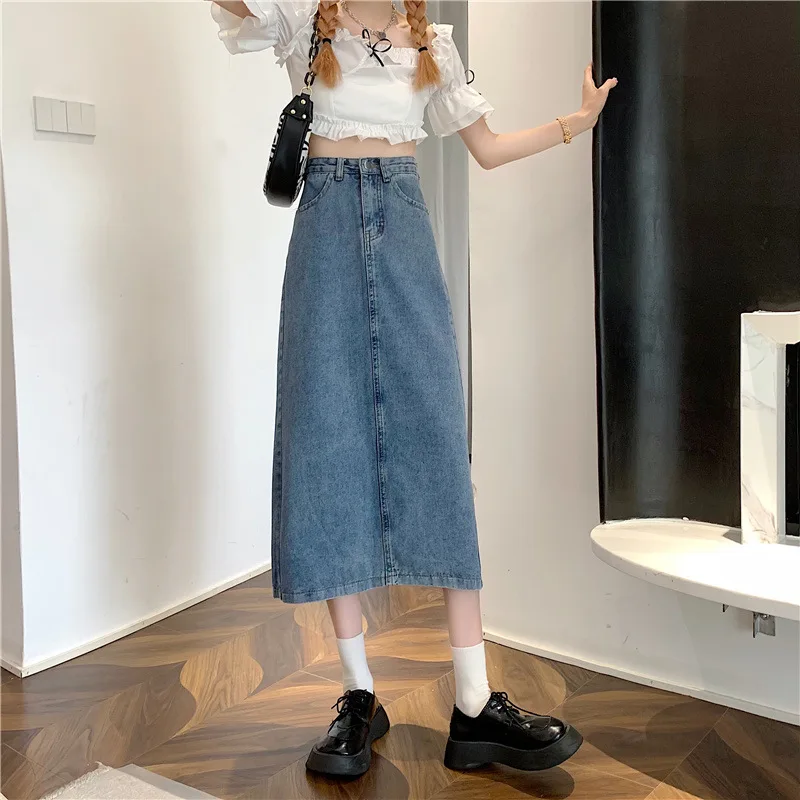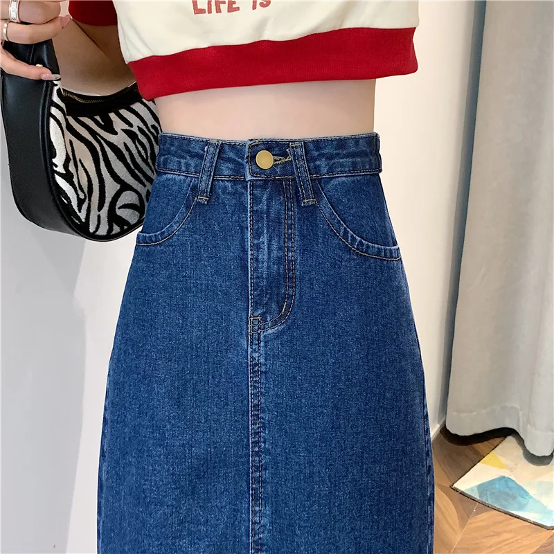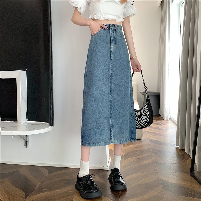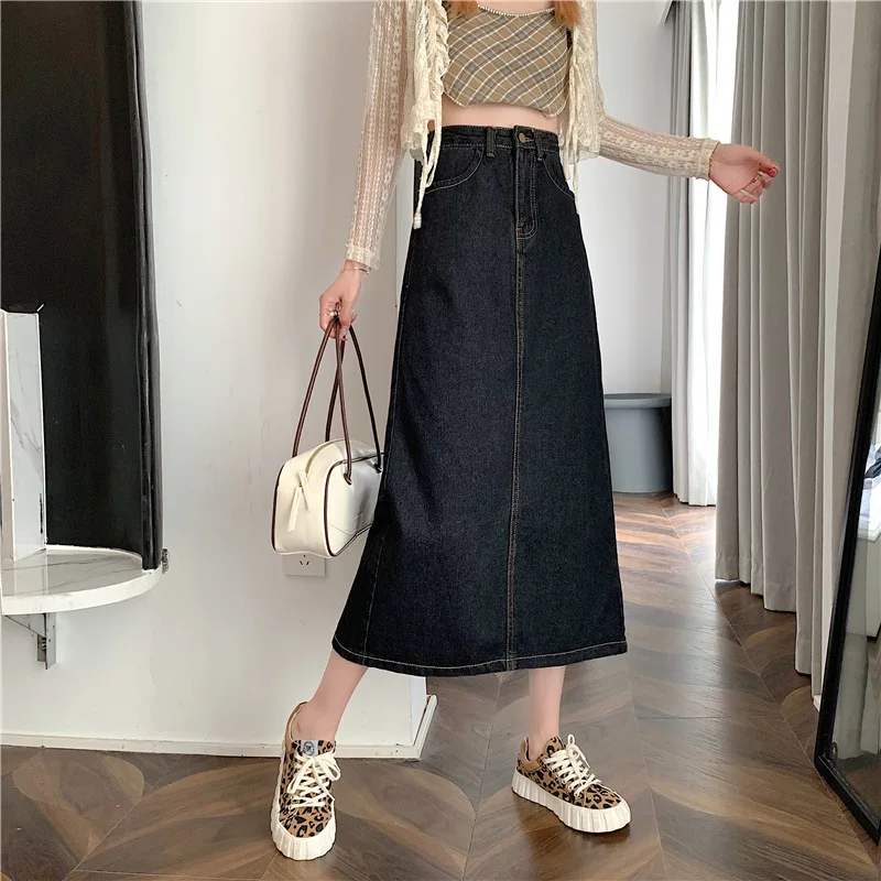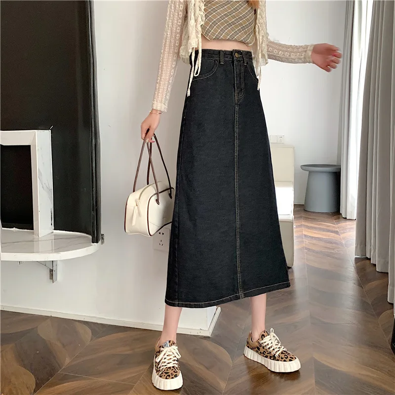New 2022 Spring-Autumn Medium-Length Denim Skirt For Women High-Waisted Slimming Plus Size Curvy Girls A- Line Hip Covering Skir