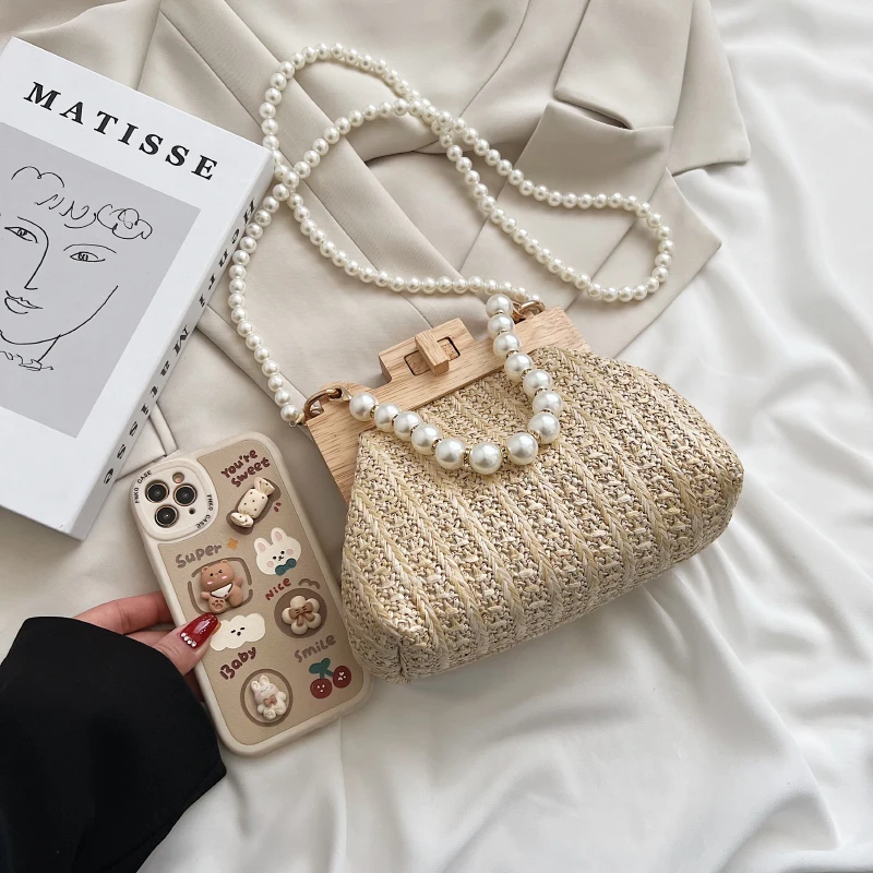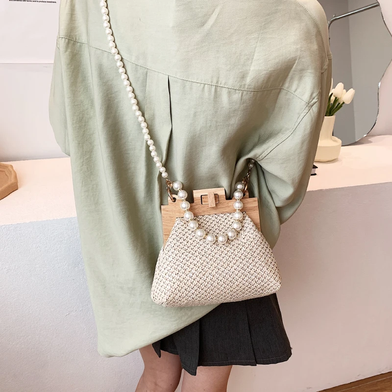 New 2022 Summer Women Fashion Hand Bags Bohemian Wooden Rattan Casual Beads Beach Straw Handbags for Women