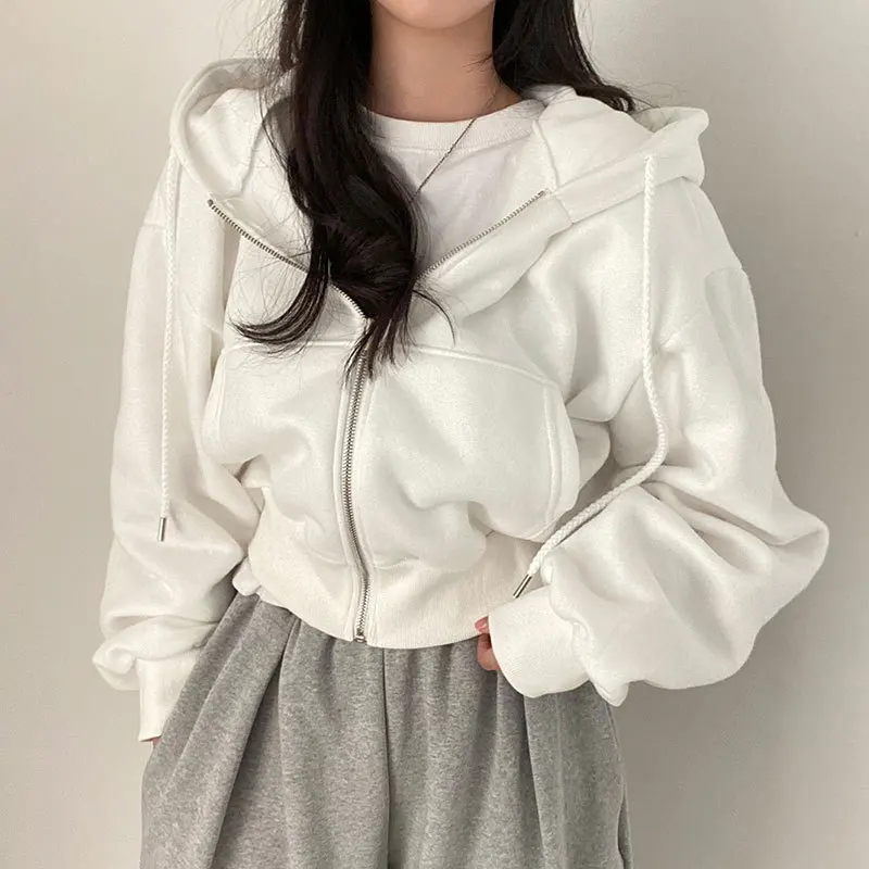 New 2023 Autumn European and American Women's Elegant Solid Hooded Cardigan Zipper Long Sleeve Loose Relaxed Sweater