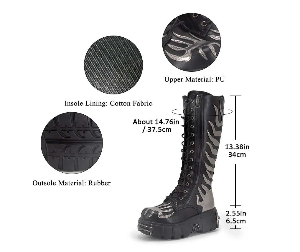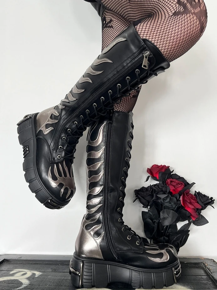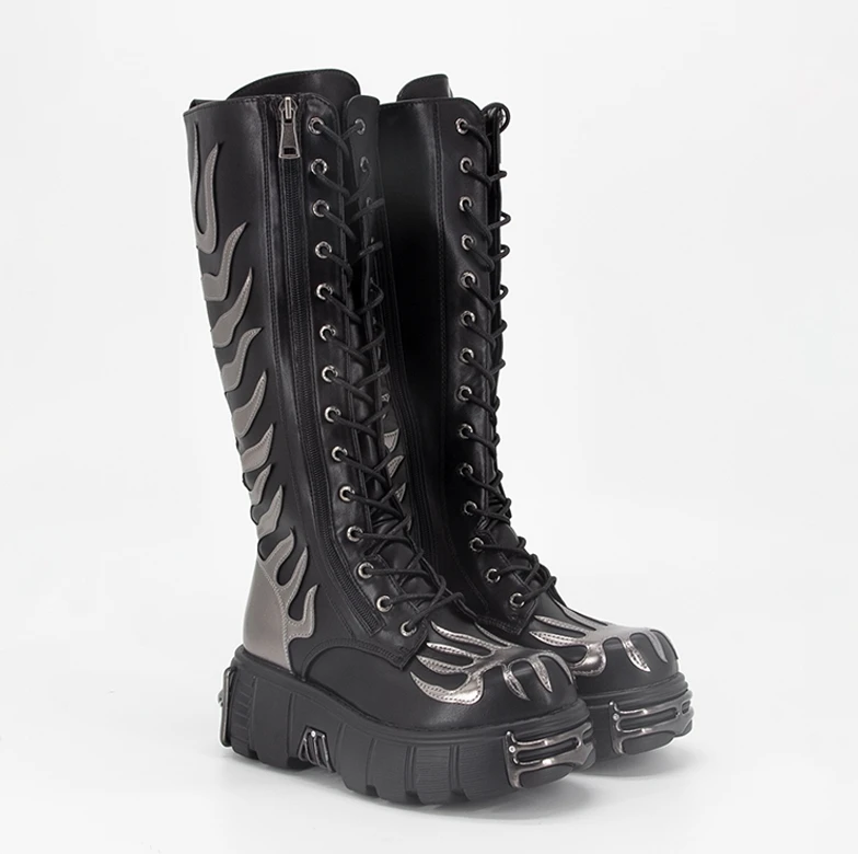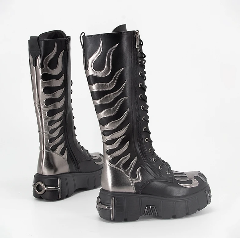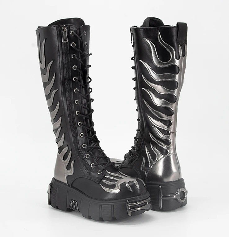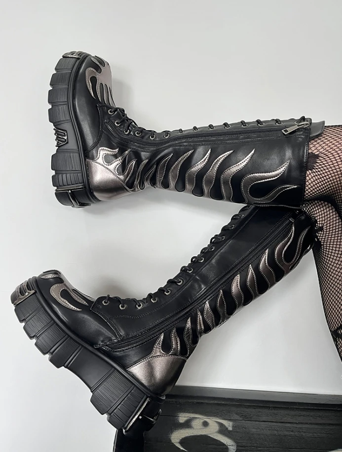 New 2024 high shoes women's shoes thick sole punk flame shoes