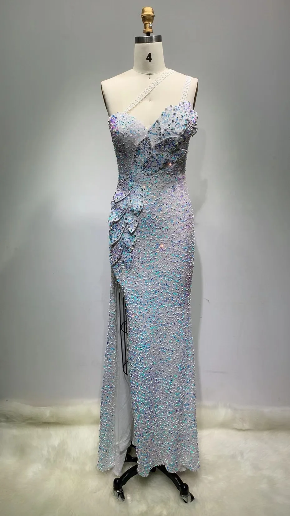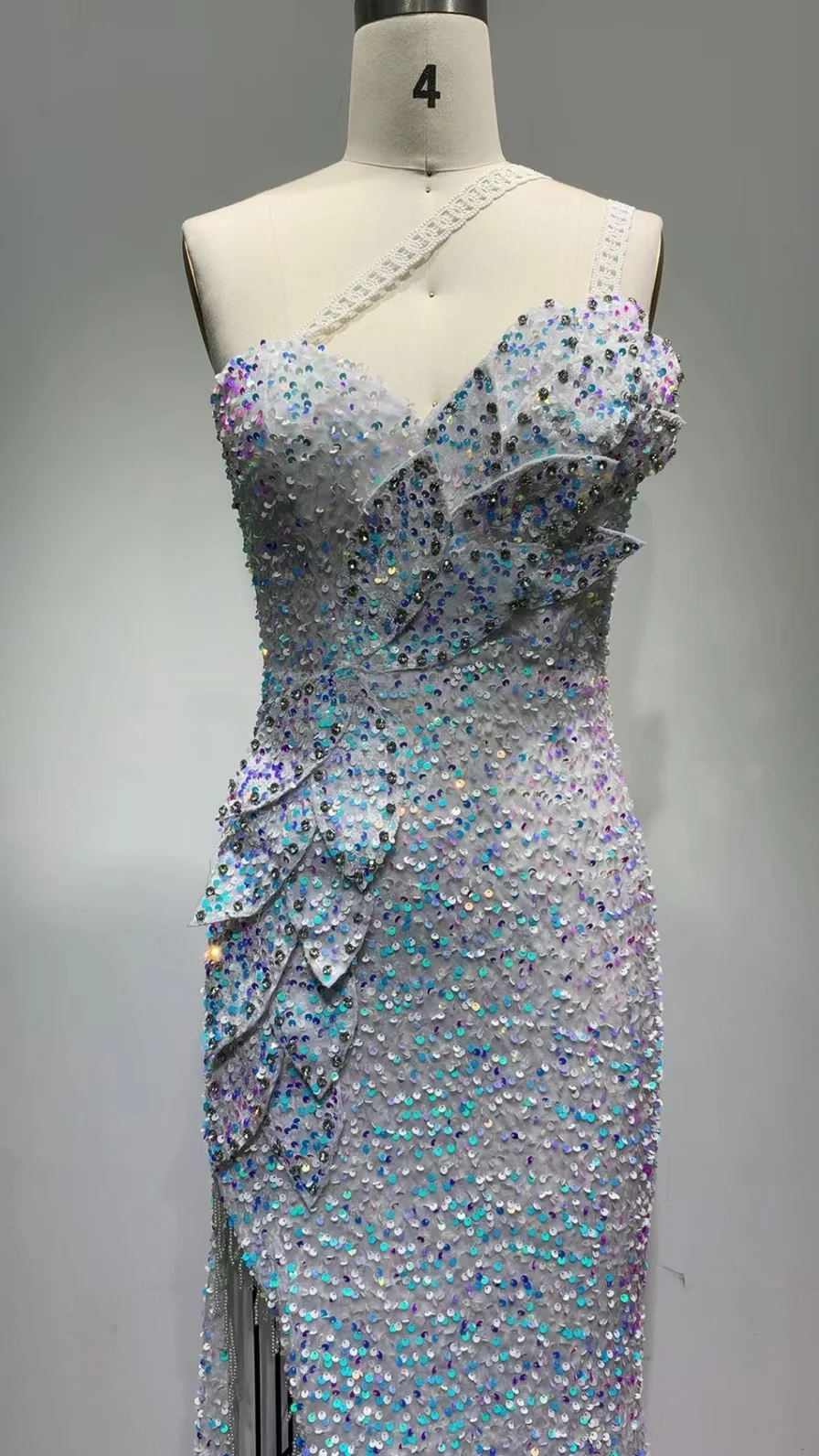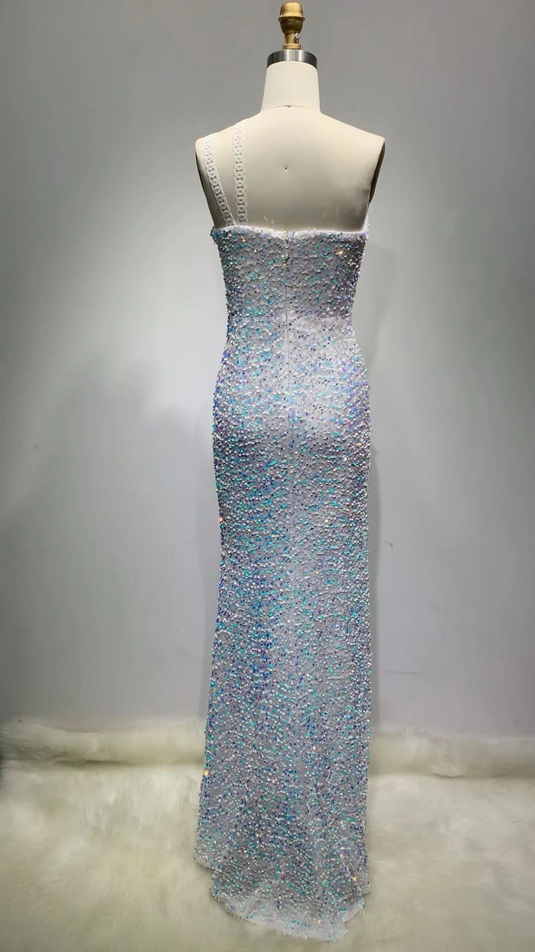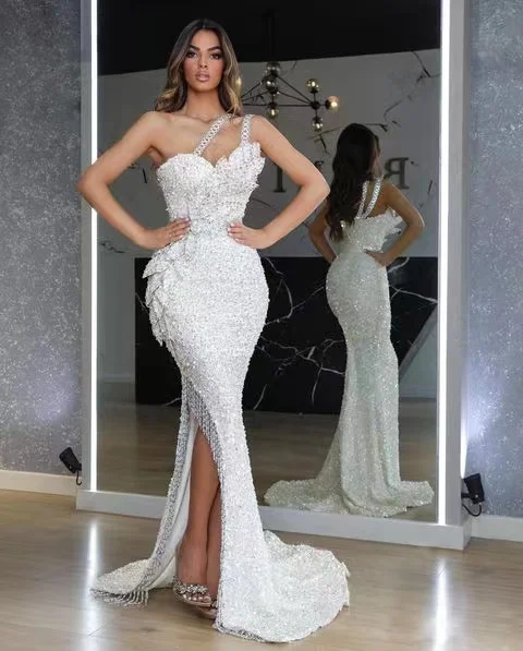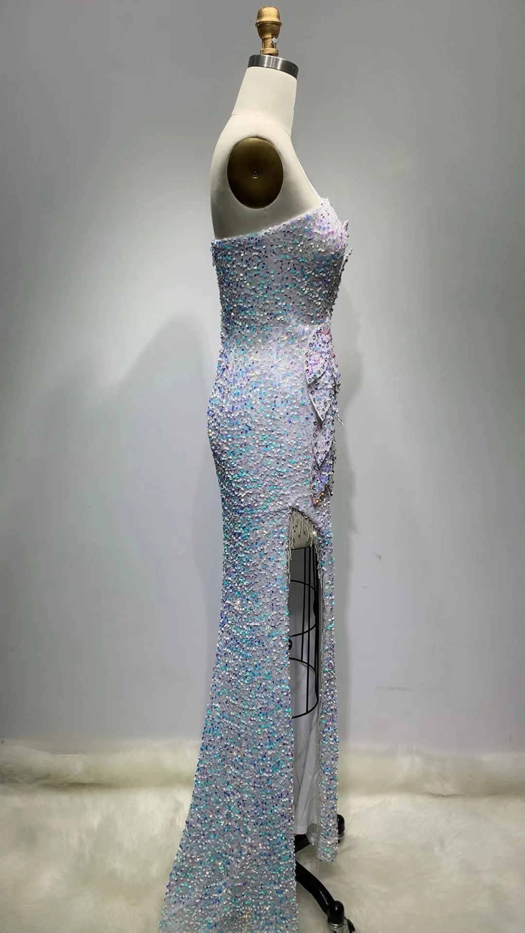 New Arrival Blue Strapless Women's Elegant Evening Dress Sequin Chain Women's Sexy Long Dress