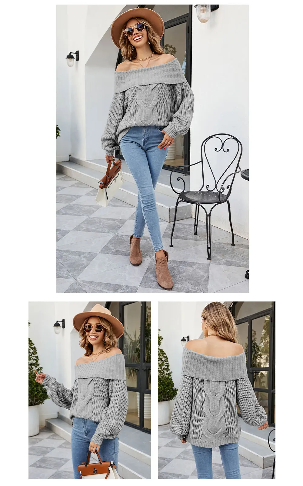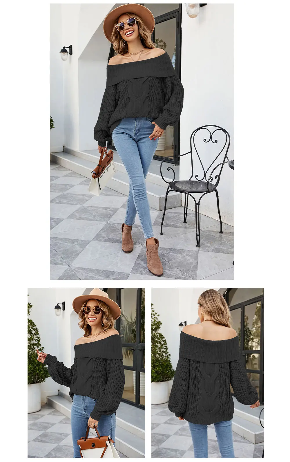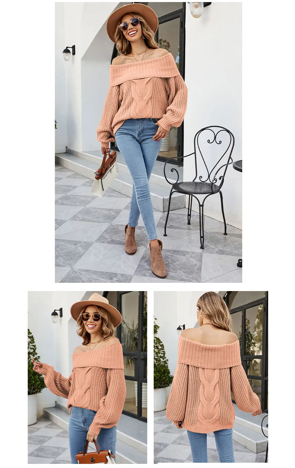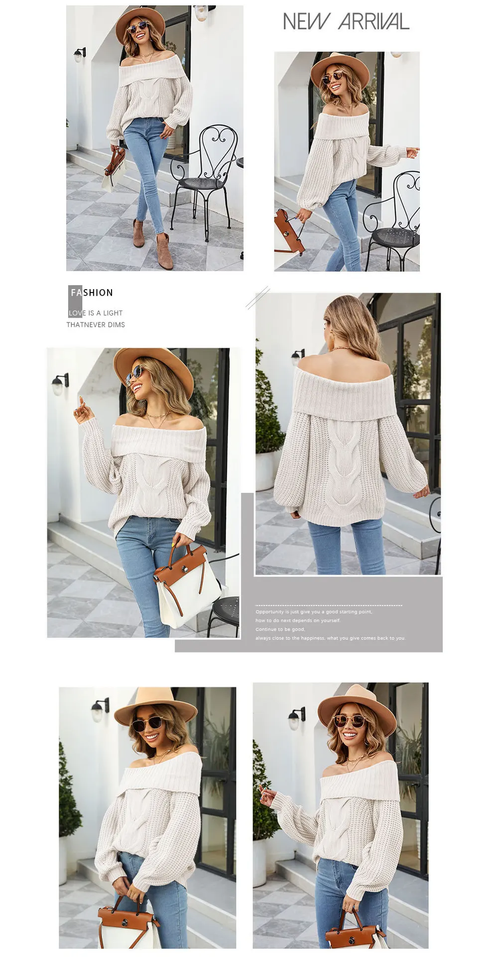 New Arrival Casual Straight shoulder Sexy Loose Women Sweater