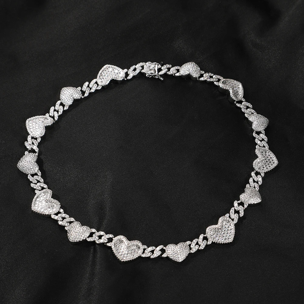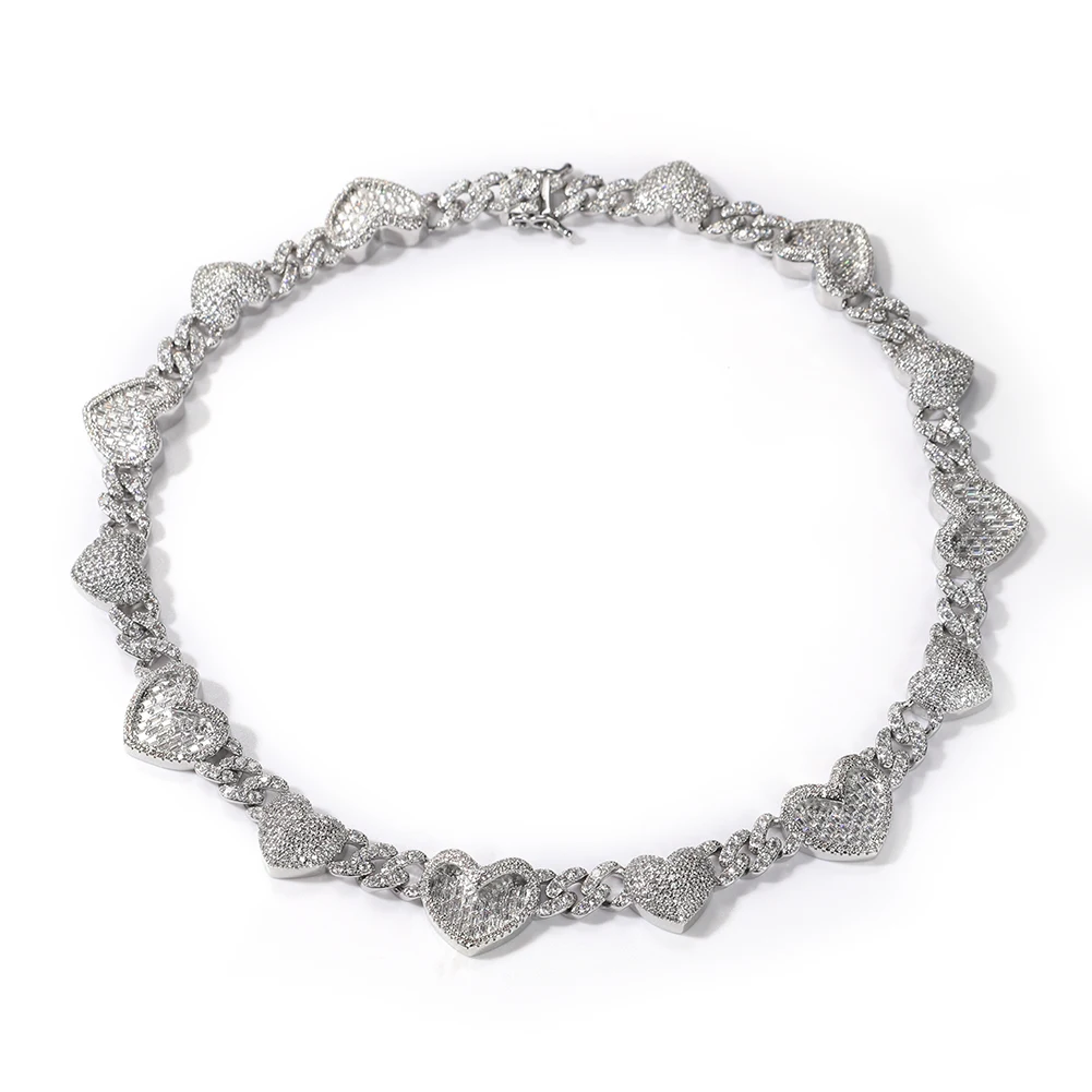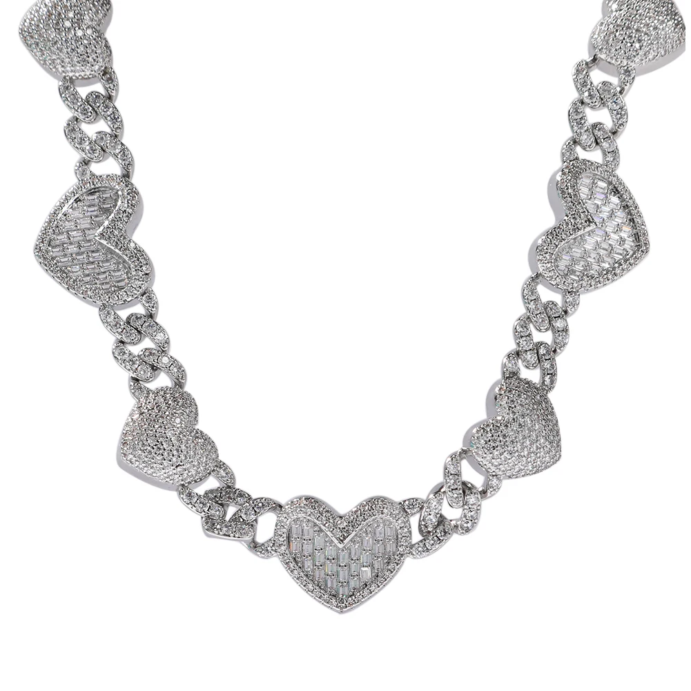 CZ Link Chain Cuban Choker Heart Charm set on 9mm CZ Cuban Necklace