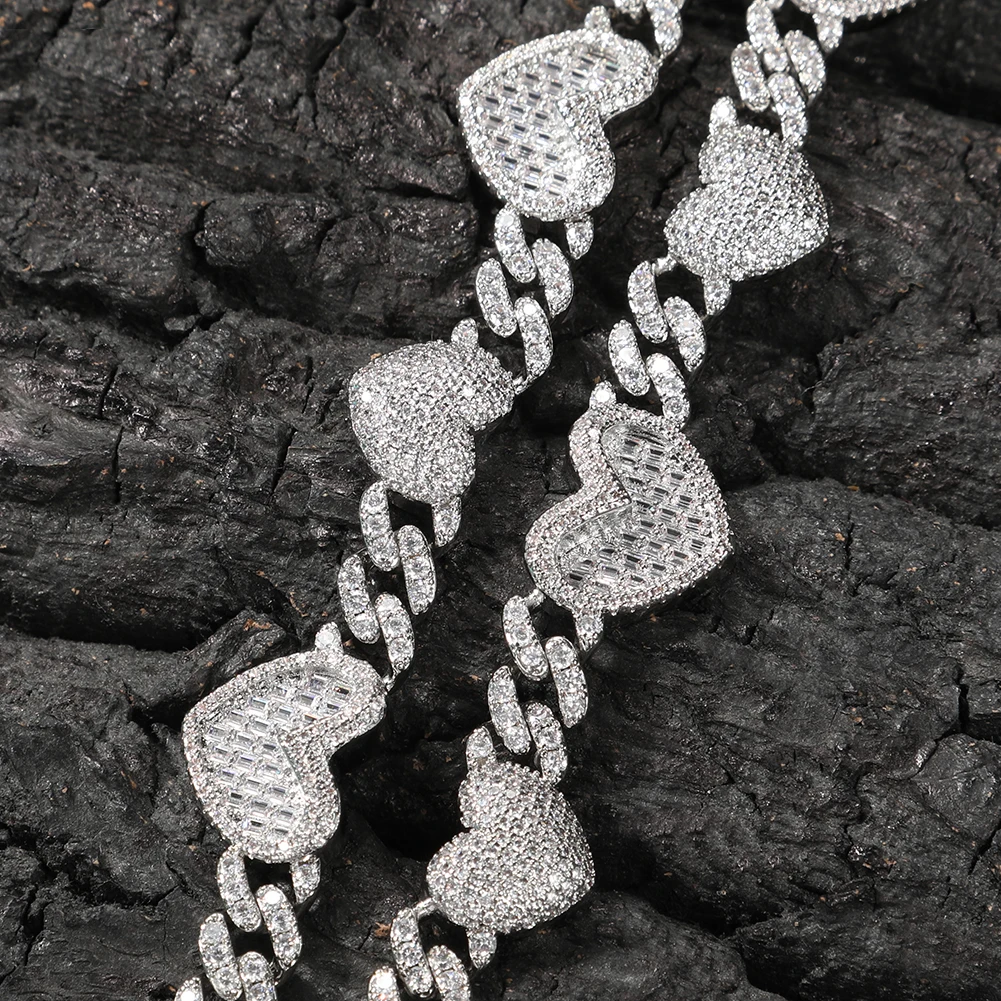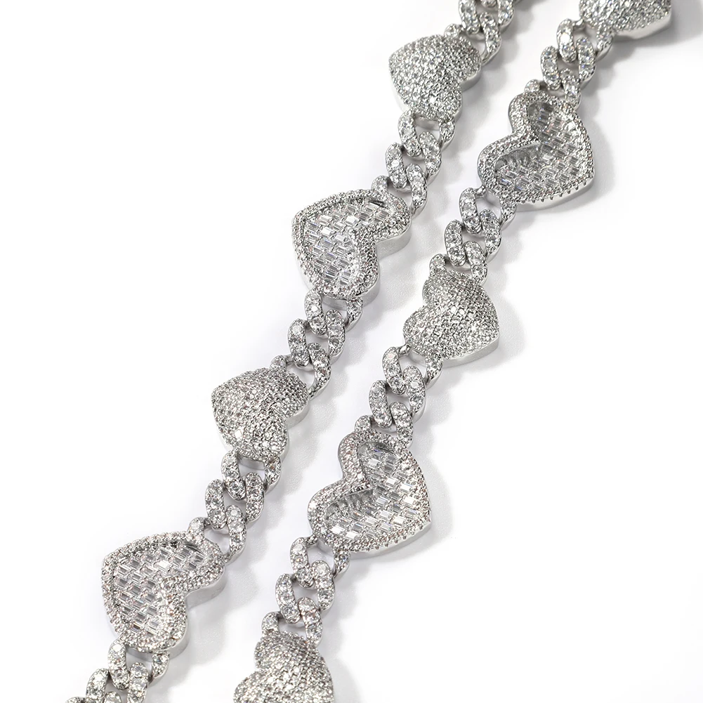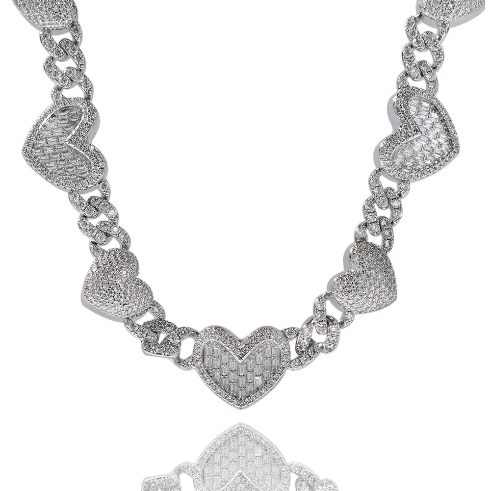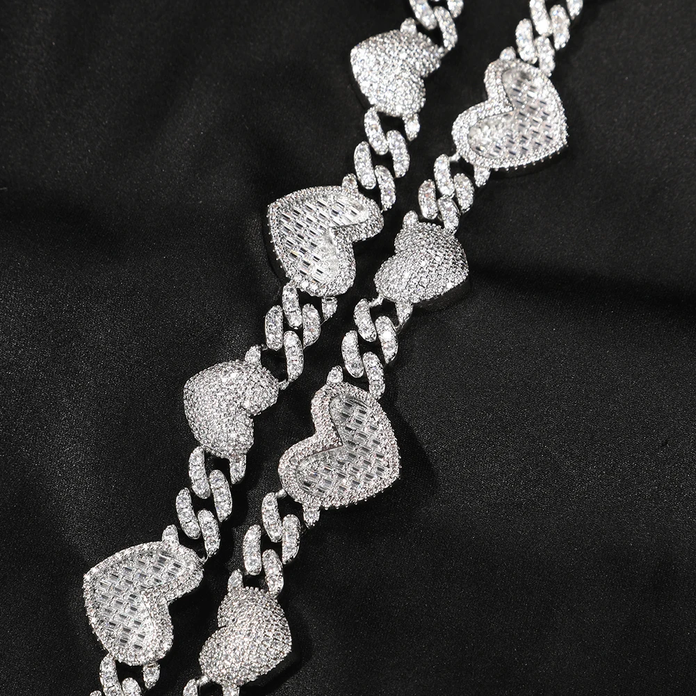 CZ Link Chain Cuban Choker Heart Charm set on 9mm CZ Cuban Necklace