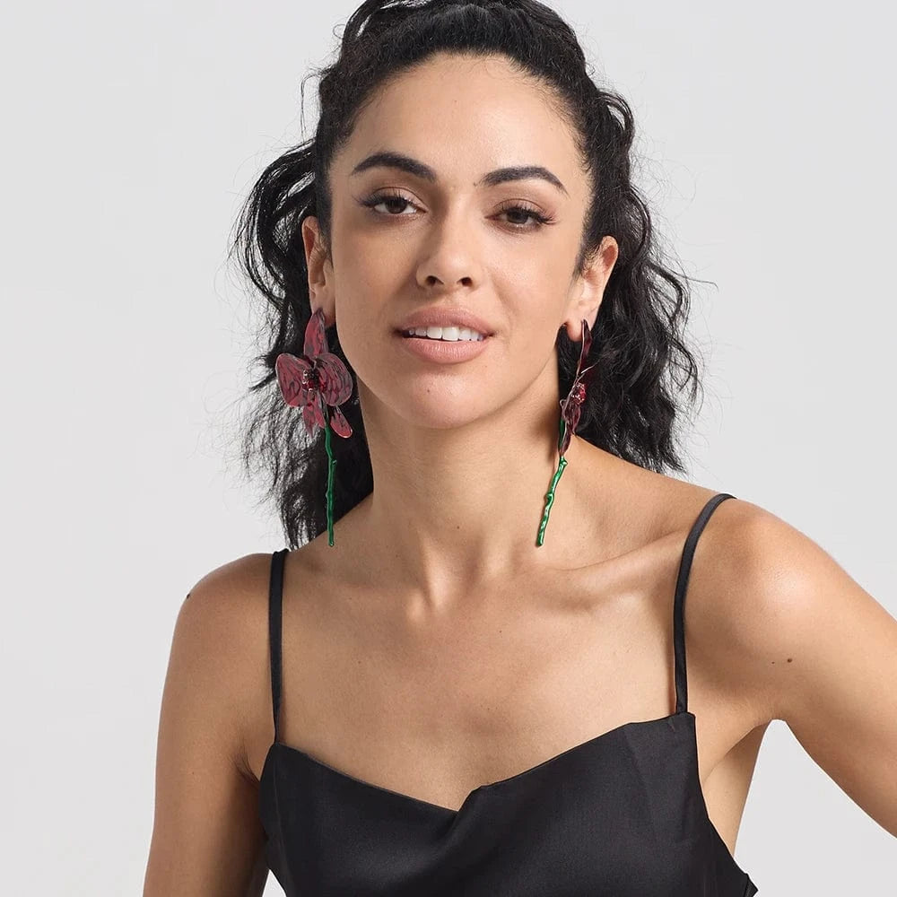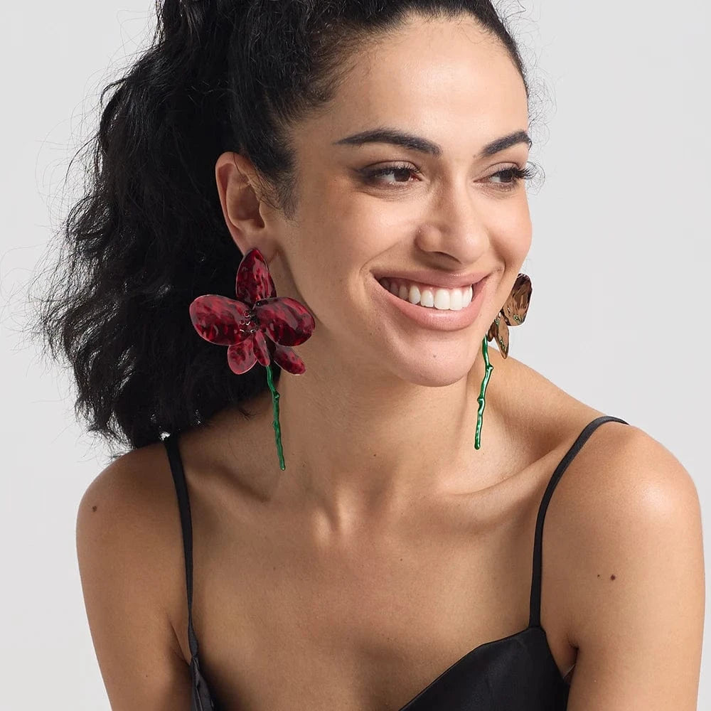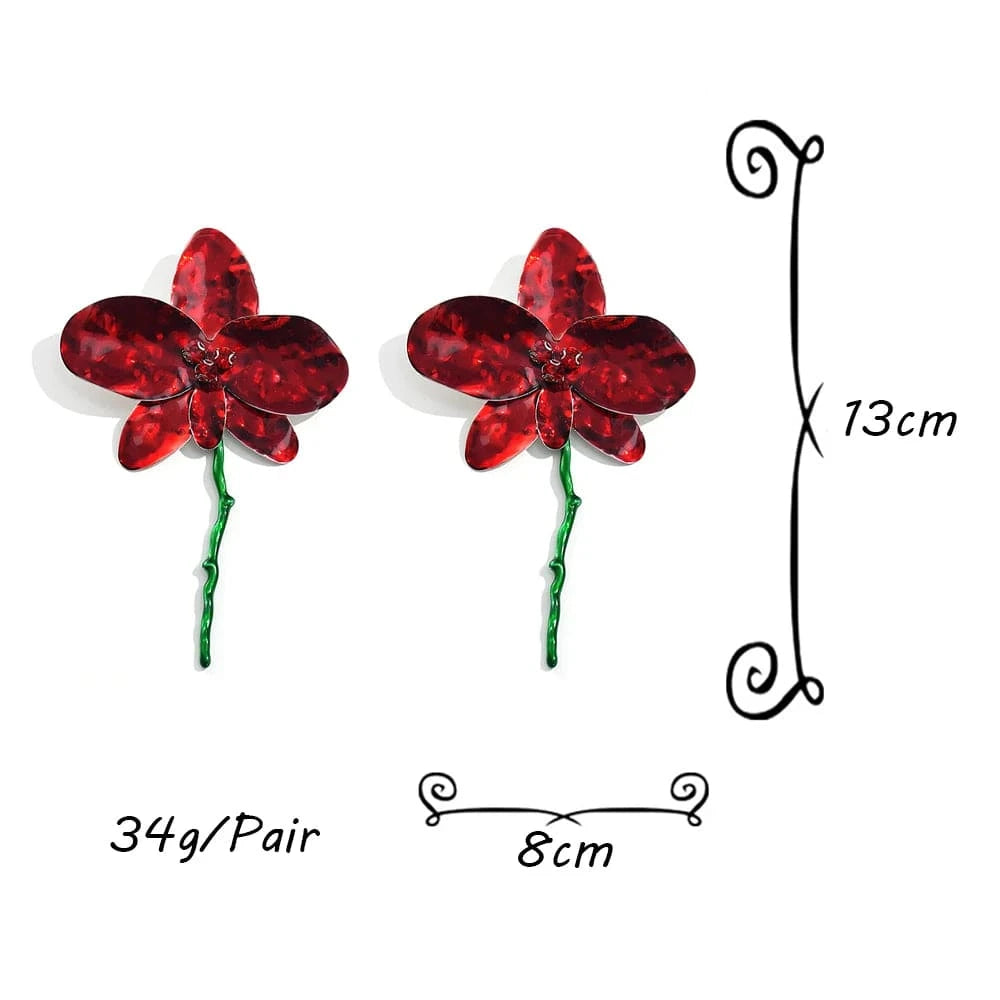 New Arrival Exaggerated Large Red Flower Drop Earrings High-Quality Trendy Long Earrings For Women Statement Jewelry Accessories