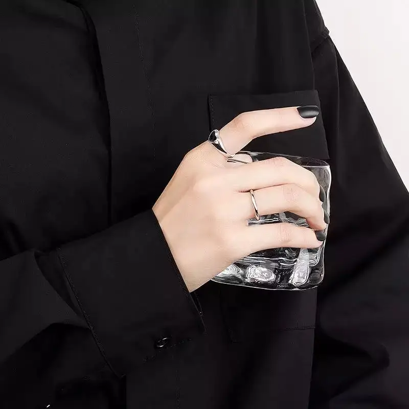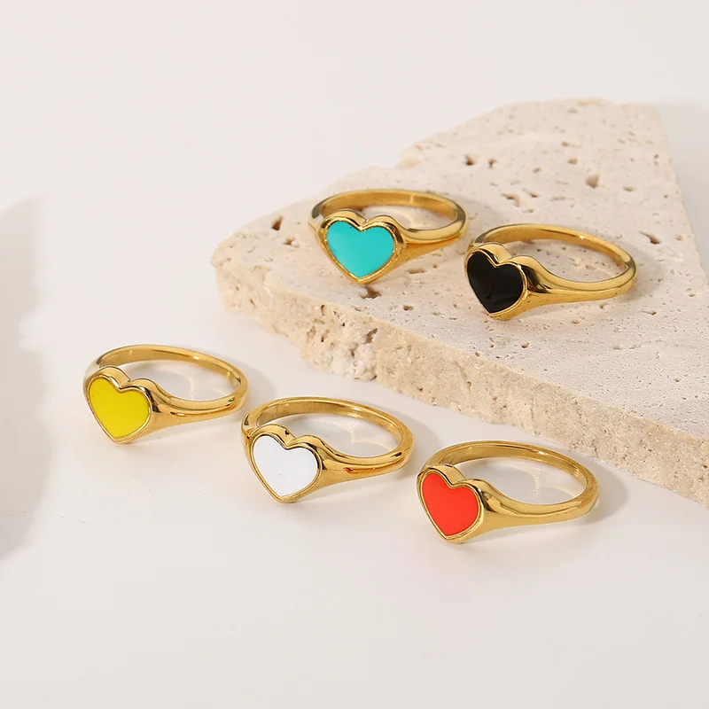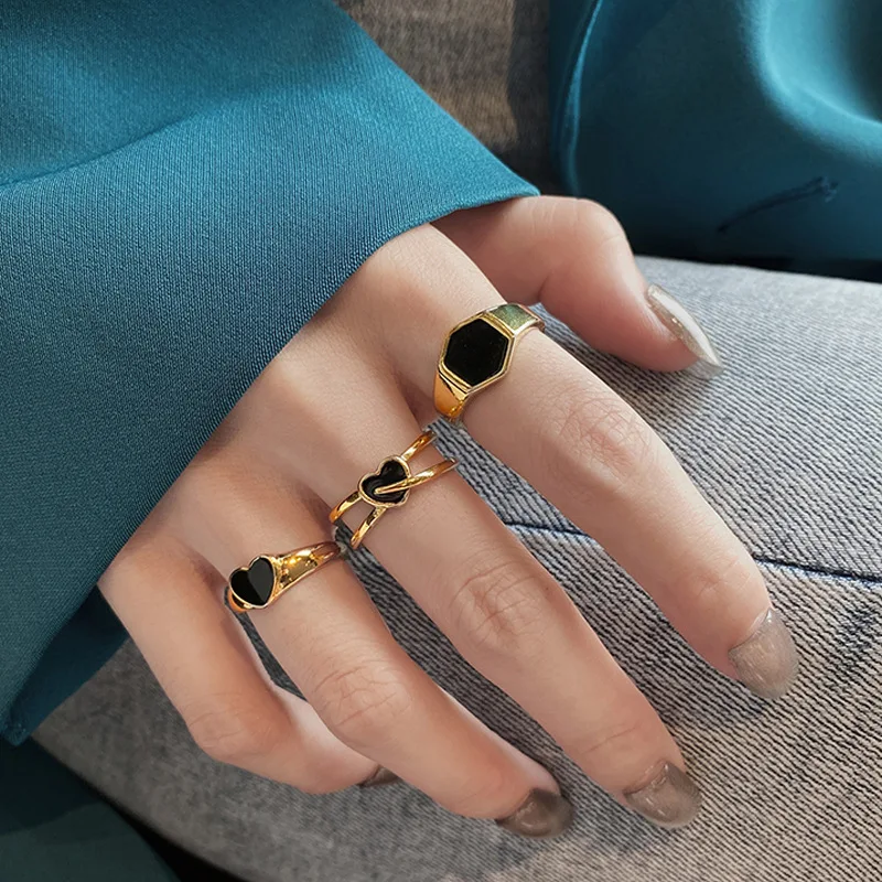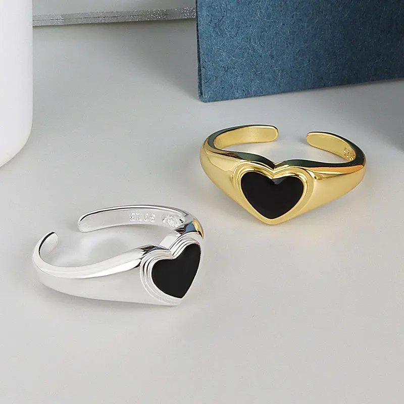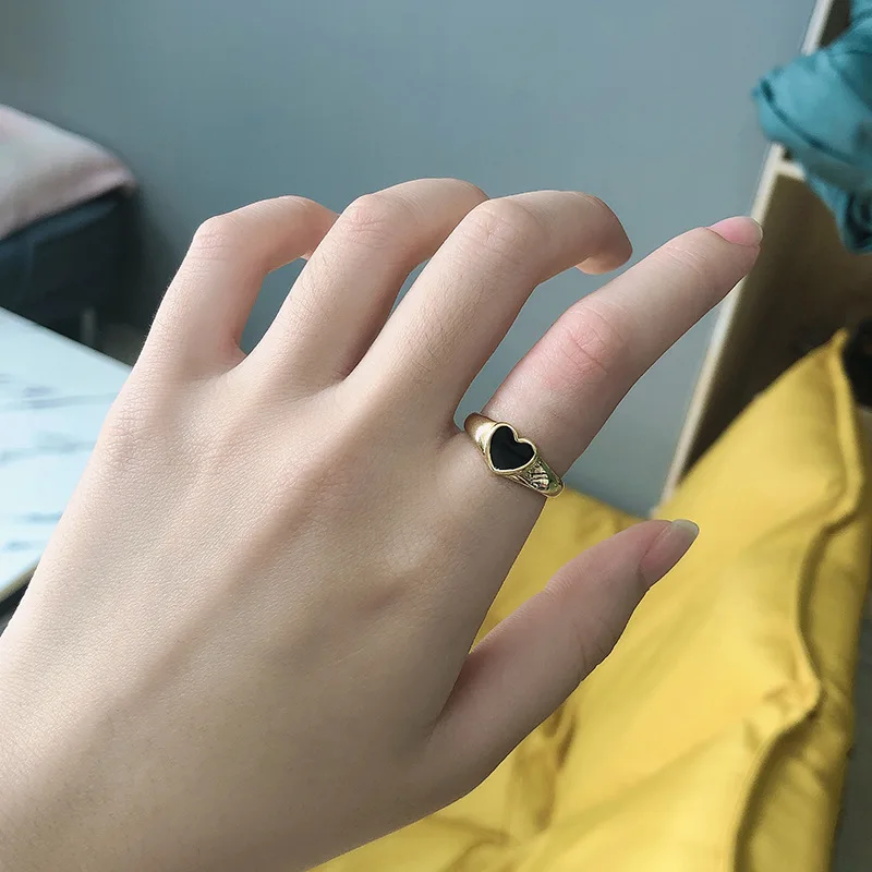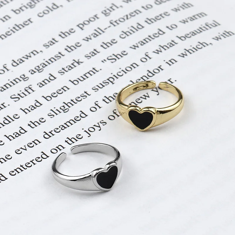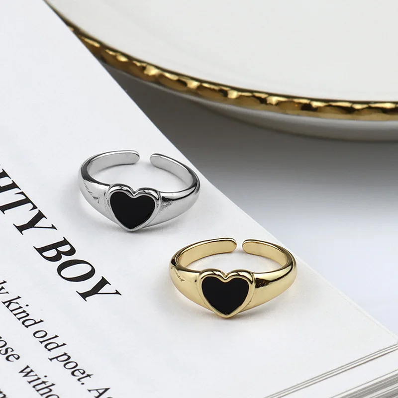 New Arrival Heart Shaped Opening Drop Oil Rings Fashion Gold Plated Black Love Heart Open Finger Rings For Girls Wholesale