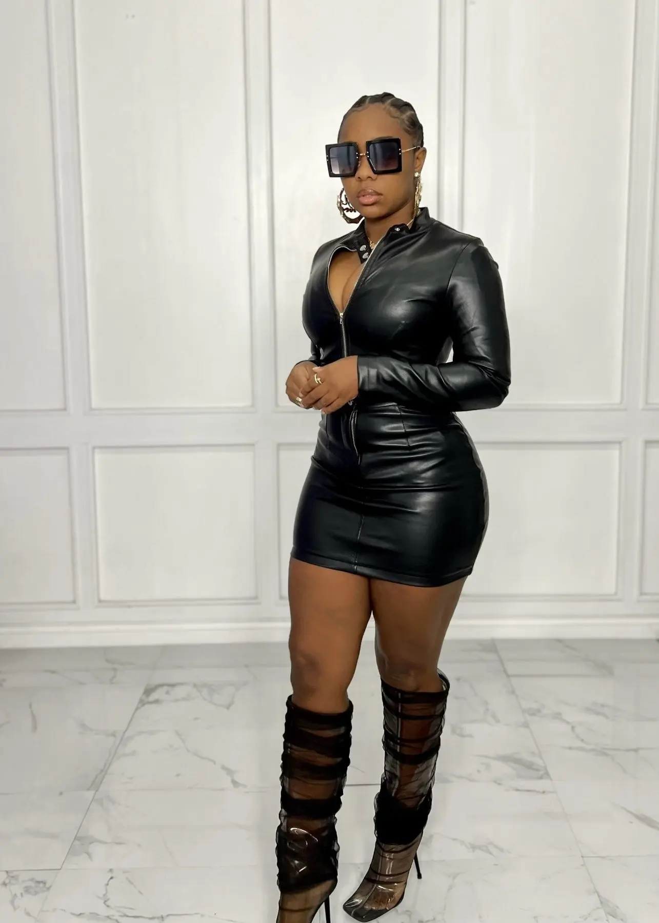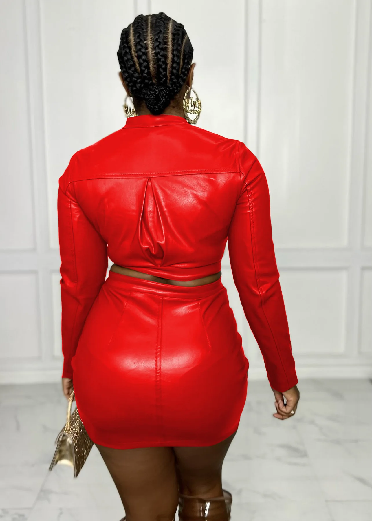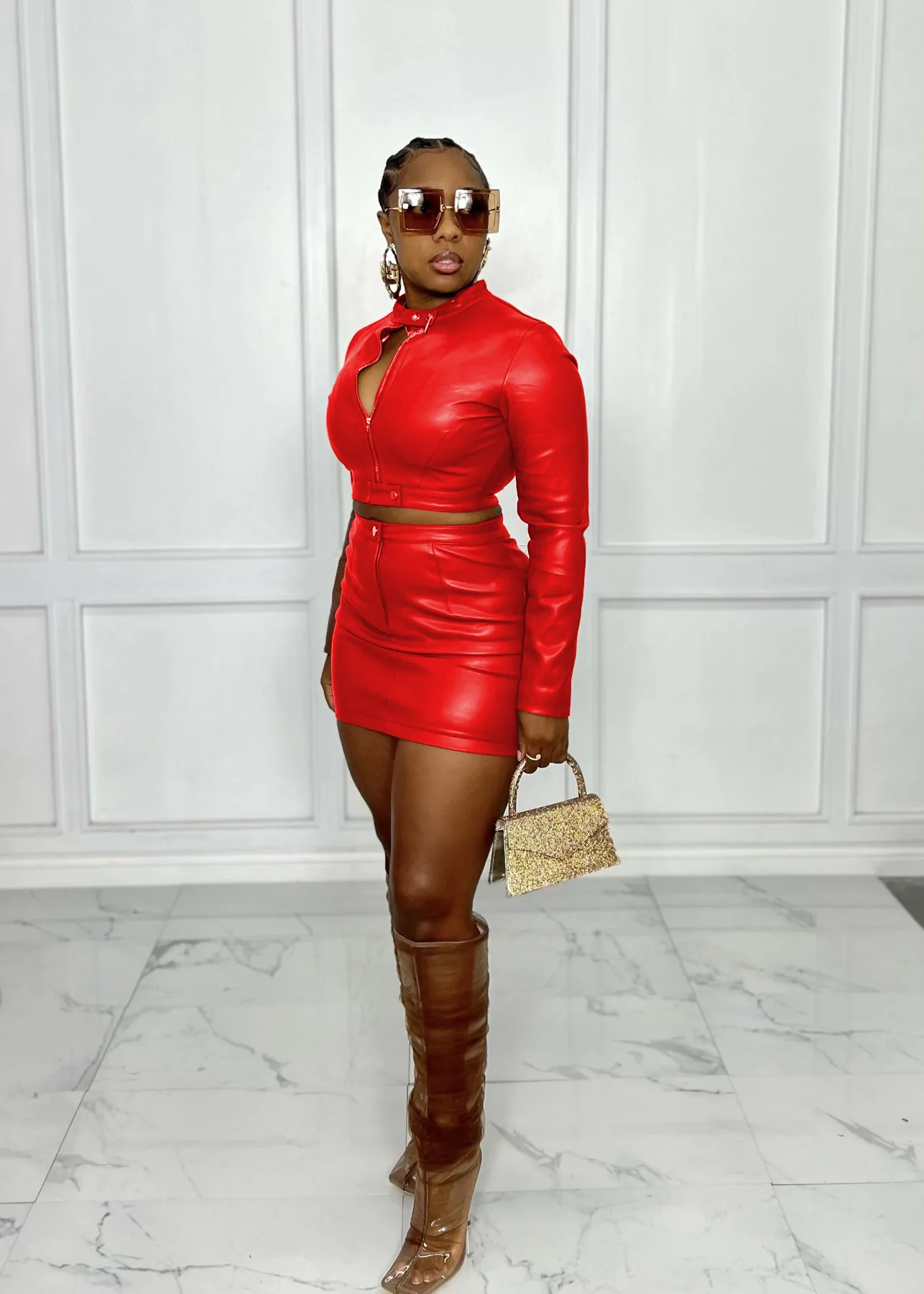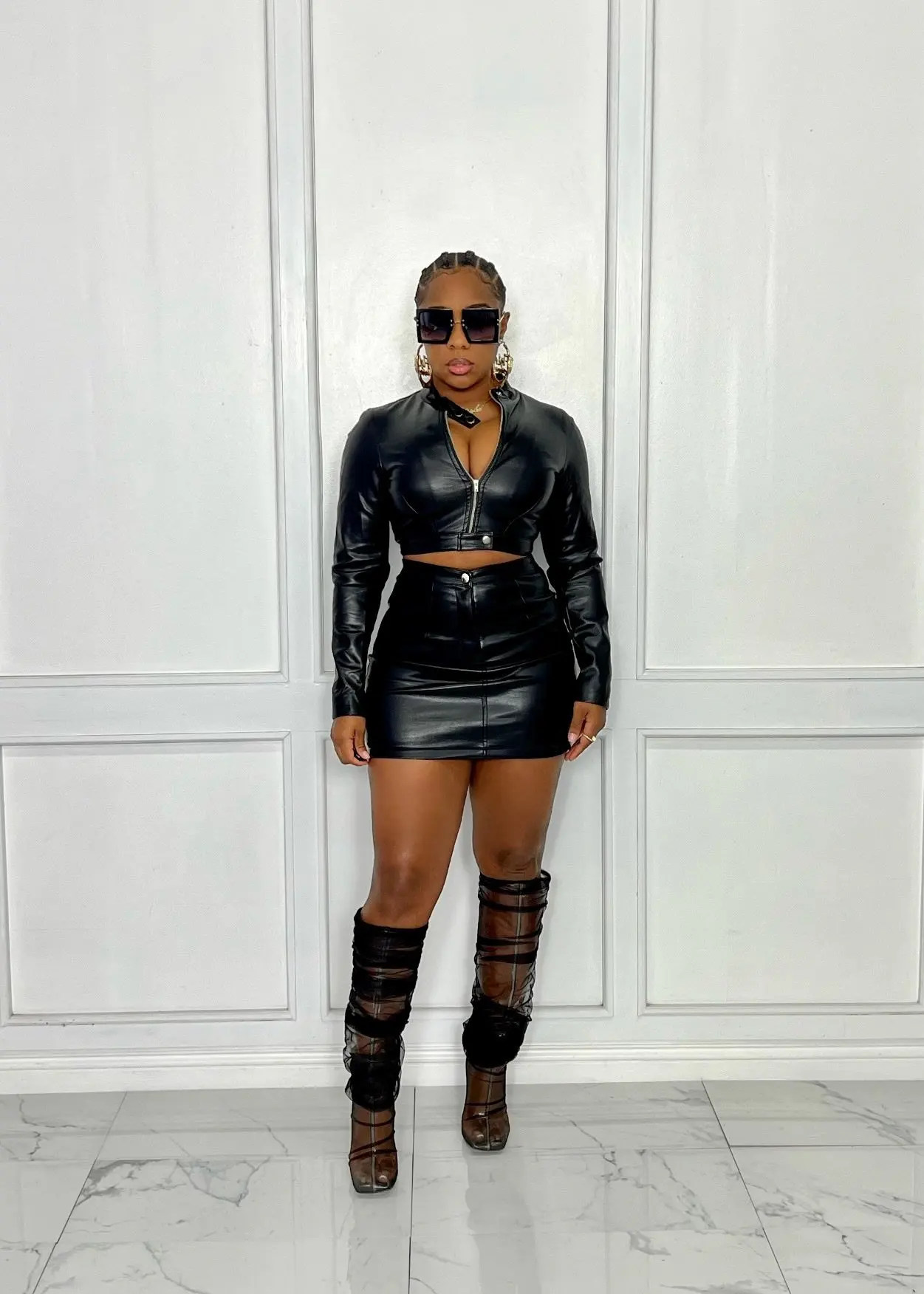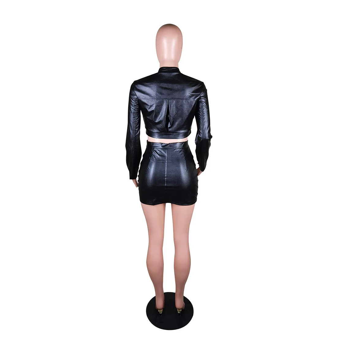 New Arrival New Product Ideas 2024 Zipper Crop Jacket+Mini Skirt Set Fall Women Clothes Sexy Pu Leather Tight 2 Piece Set