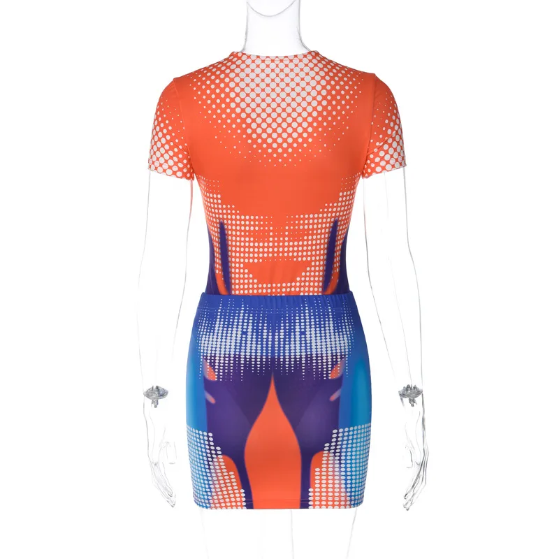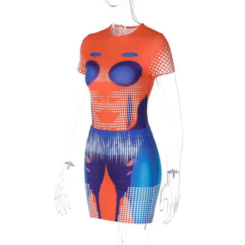 New Arrival O Neck 3d Print Short Sleeve One Piece Jumpsuit Skirt Women's Sets 2023 Casual Summer Y2k Party Club Women Clothes