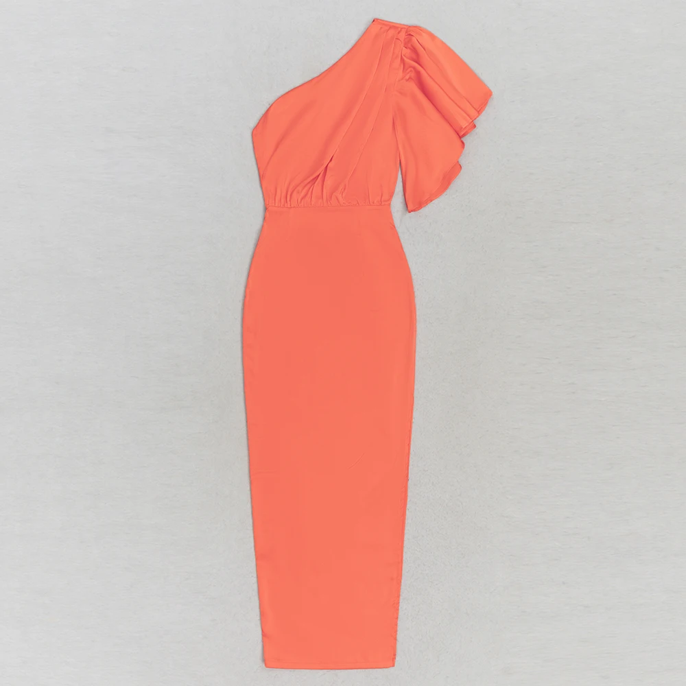 New Arrival One Shoulder Peplum Sleeve Slim-Fit Summer Casual Party Club Wedding Bridesmaid Evening Dress