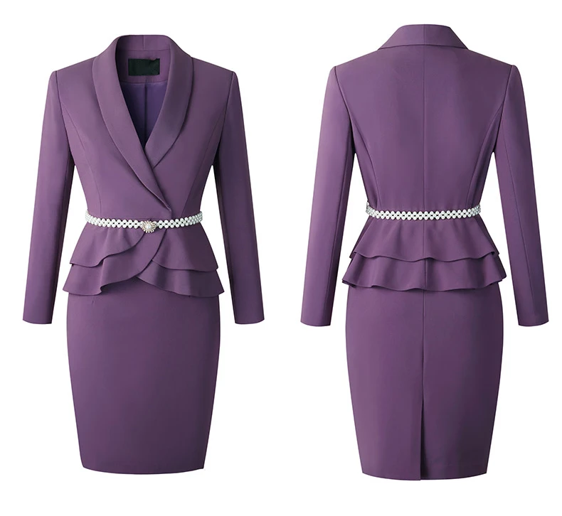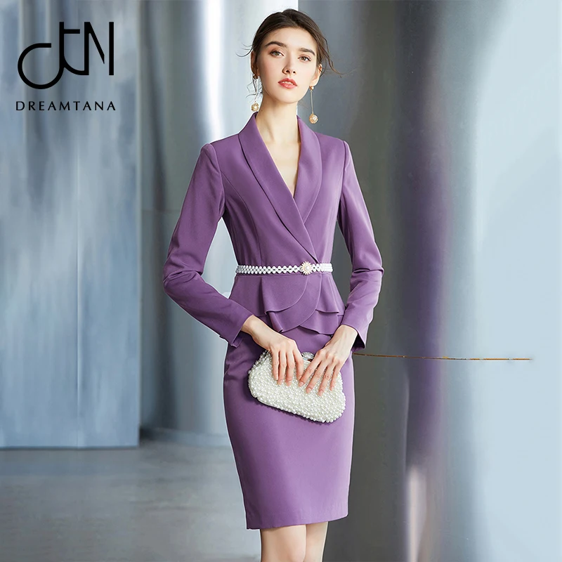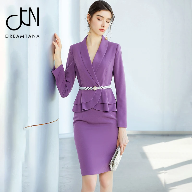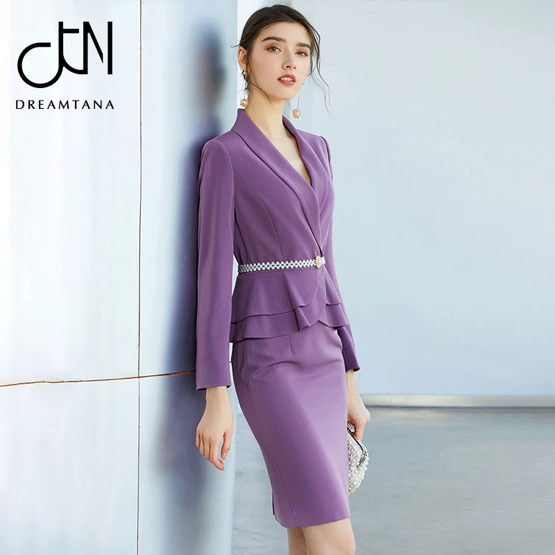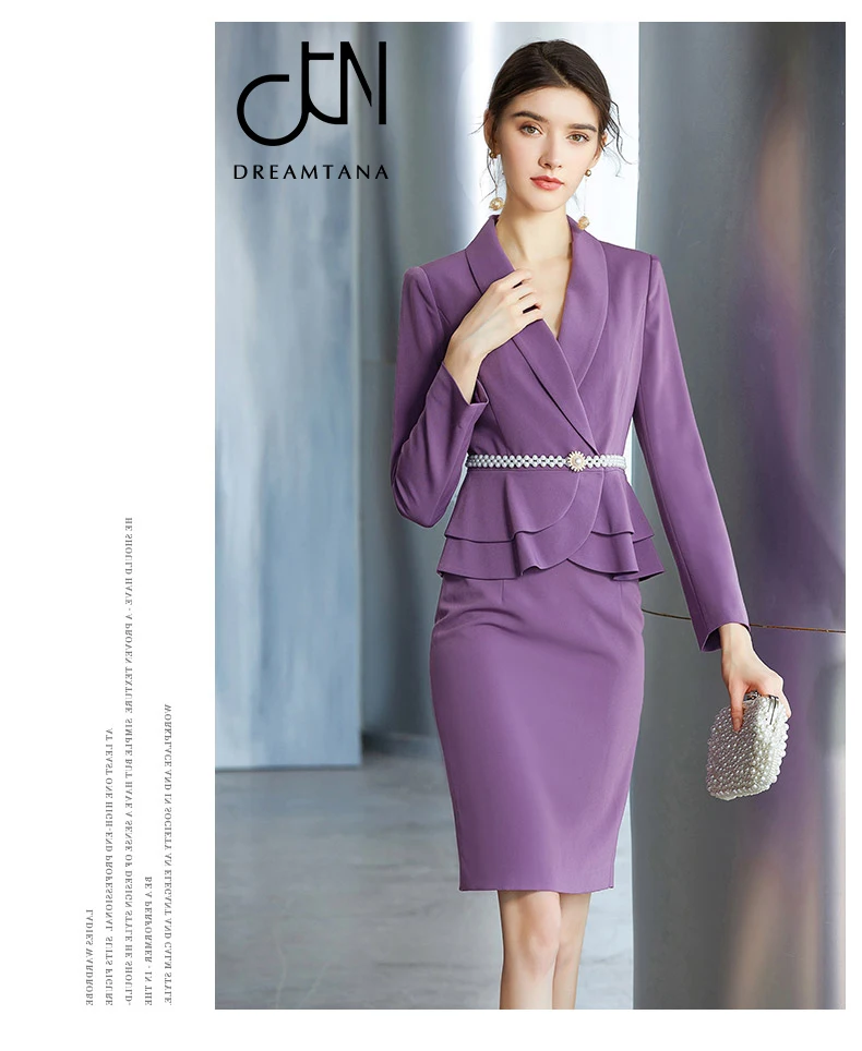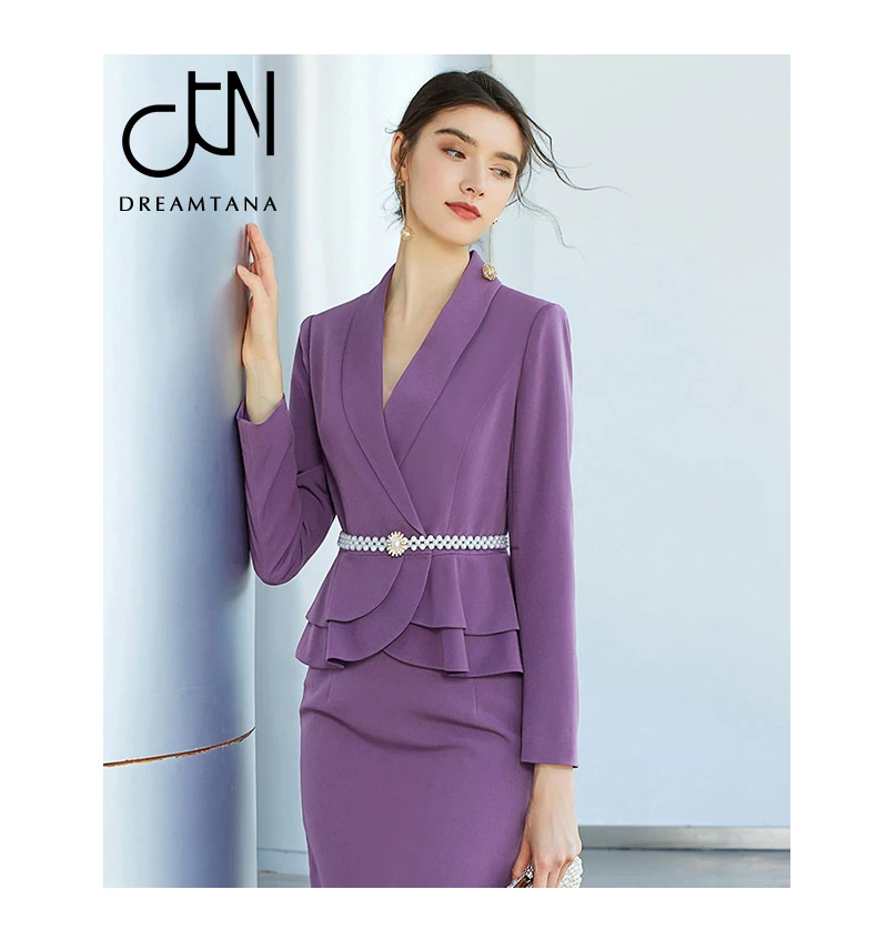 New Arrival Purple Suit V Neck Simple Design women business dress spring suits set outfits for women
