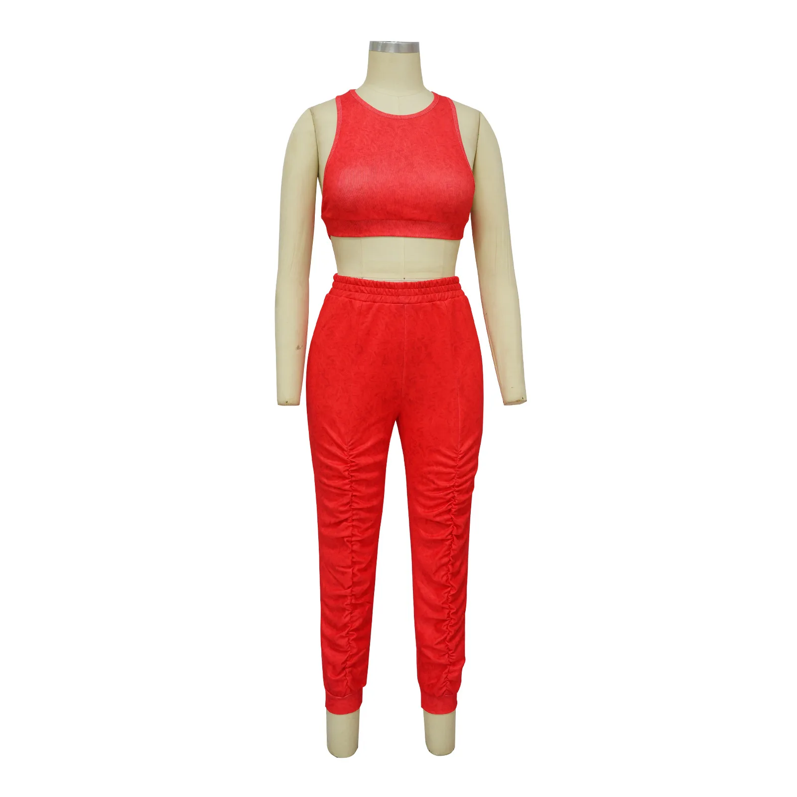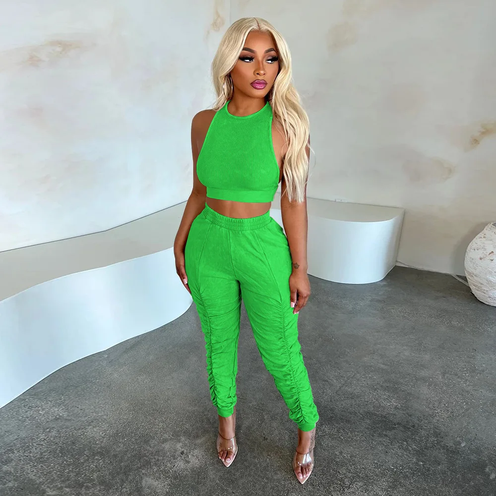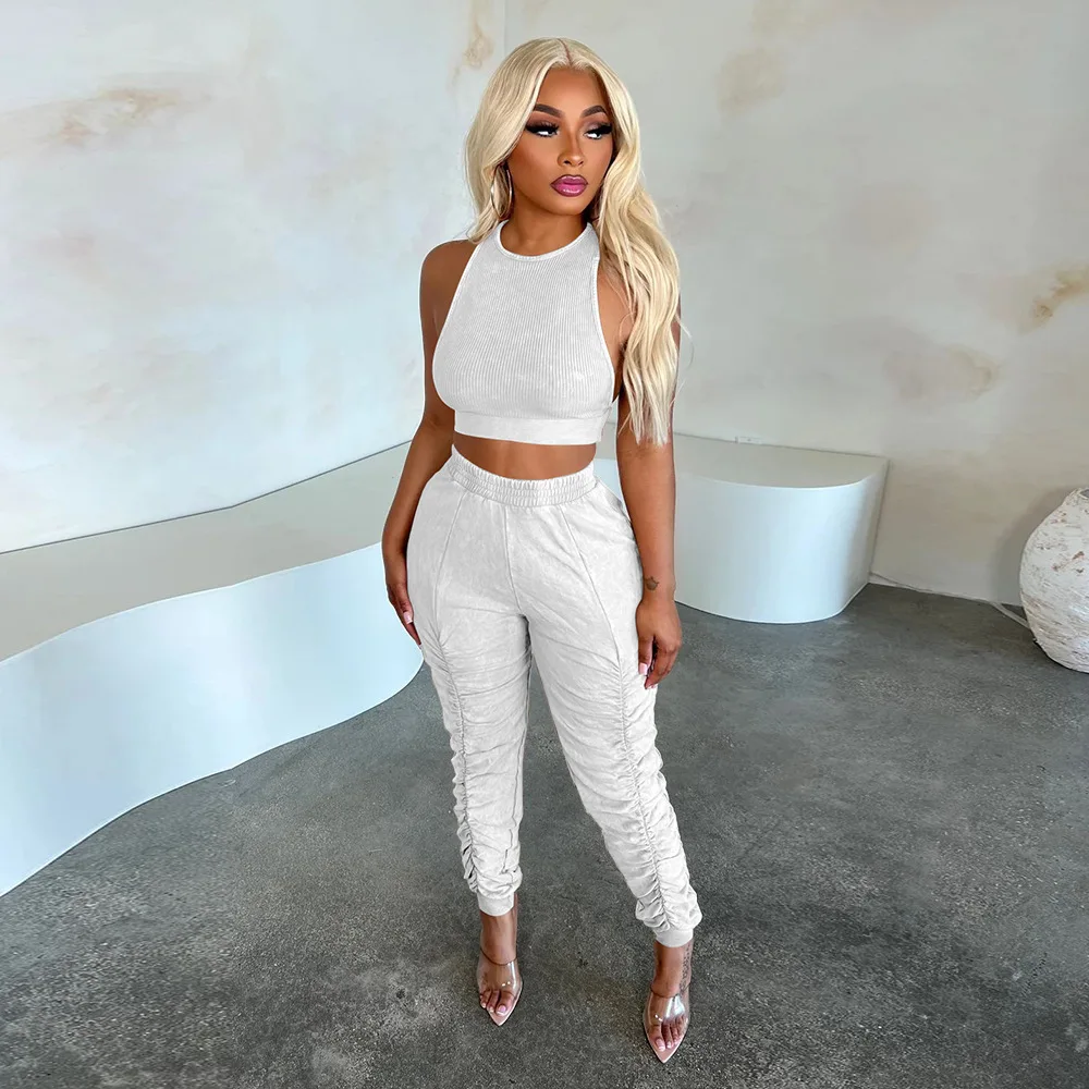 New Arrival Solid Color Sleeveless Vest Top Pleated Stacked Pants Summer Casual Women Two Piece Pants Set