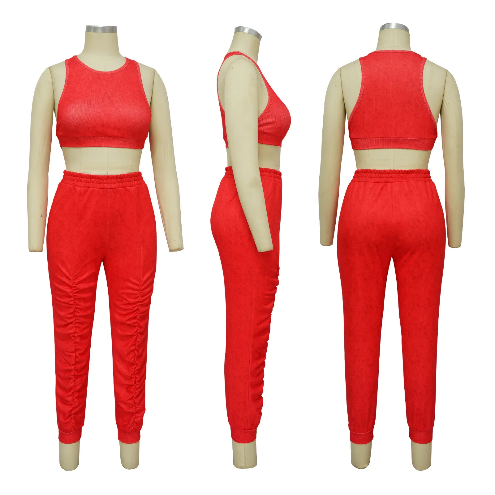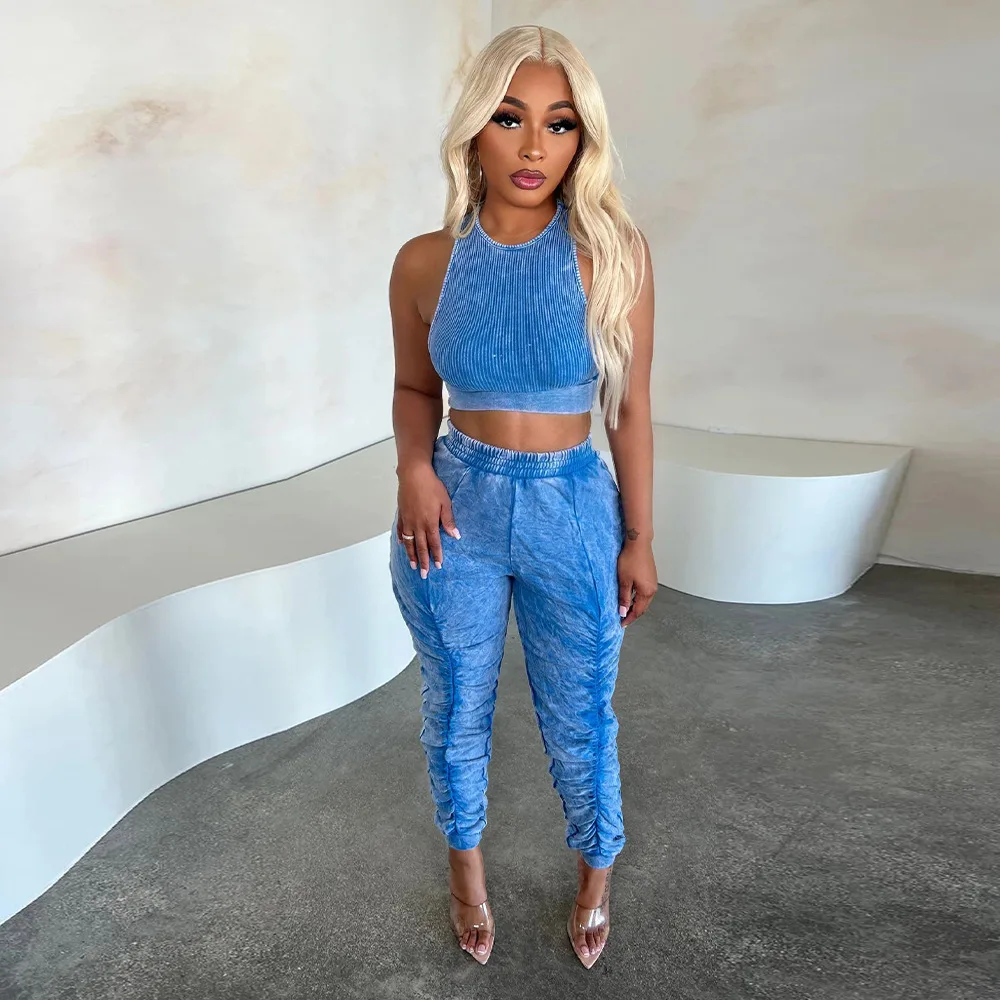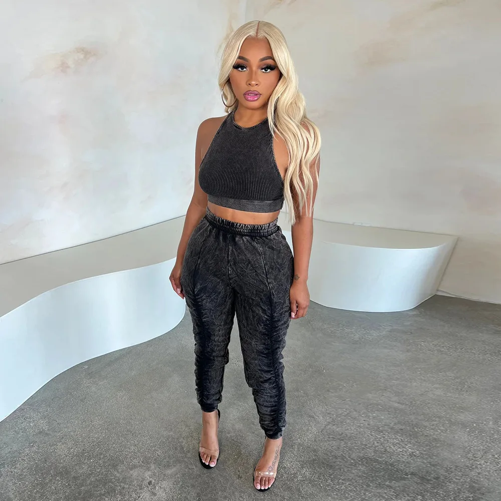 New Arrival Solid Color Sleeveless Vest Top Pleated Stacked Pants Summer Casual Women Two Piece Pants Set