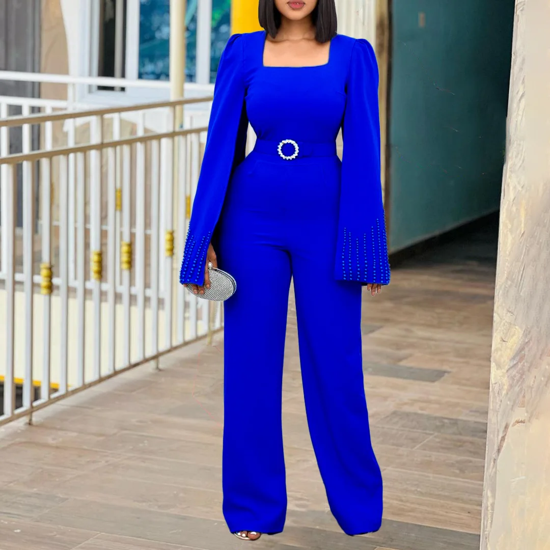 New Arrival Solid Wide-leg Beaded Cape Casual Temperament Women Jumpsuits