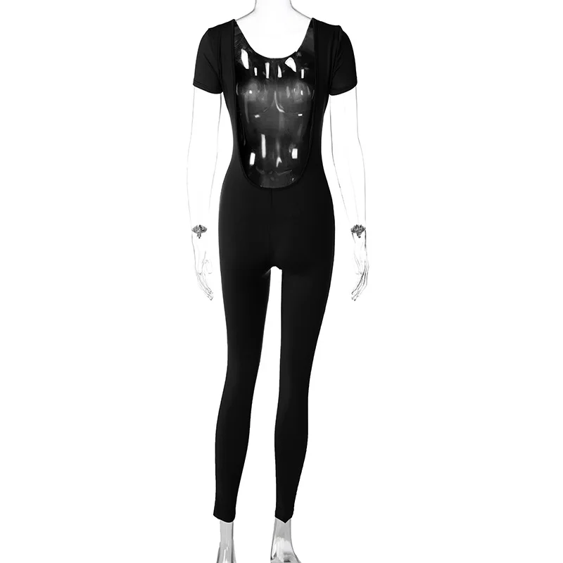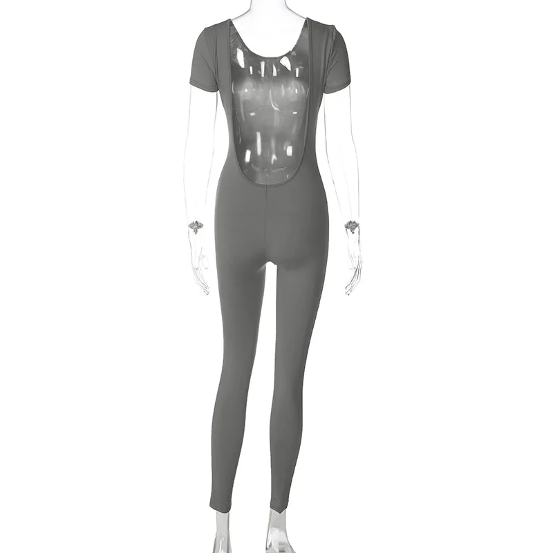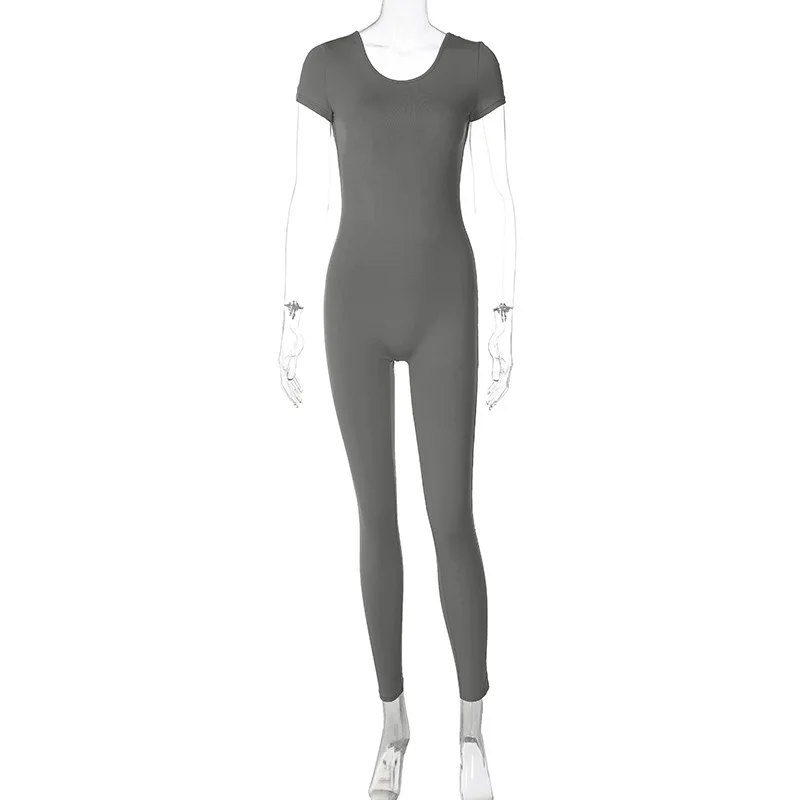 New Arrival Summer Casual Sexy Backless One Piece Rompers Women Jumpsuit Short Sleeve Bodycon Lady Jumpsuit