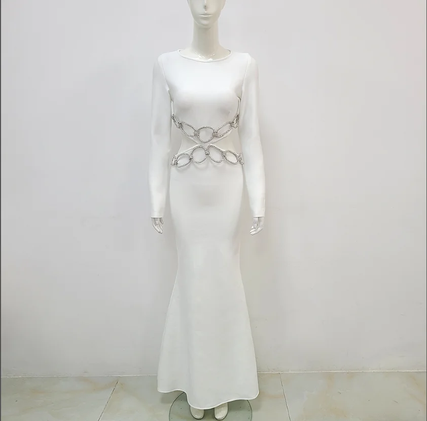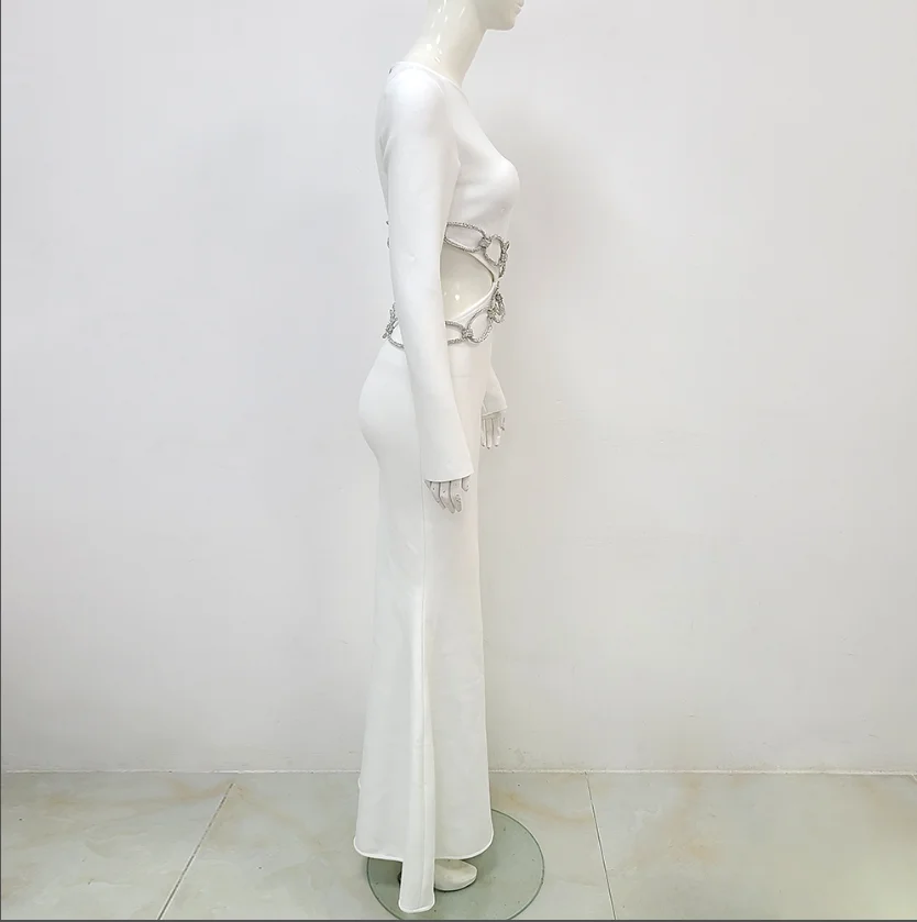 New Arrival Summer Hollow Diamond Chain Women's Jersey Girls Sexy Club Evening with Dress
