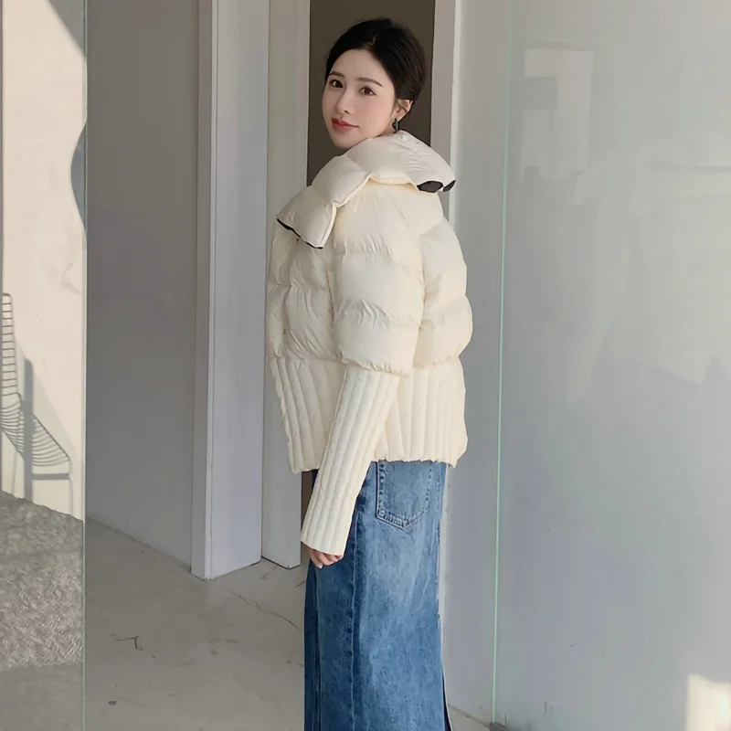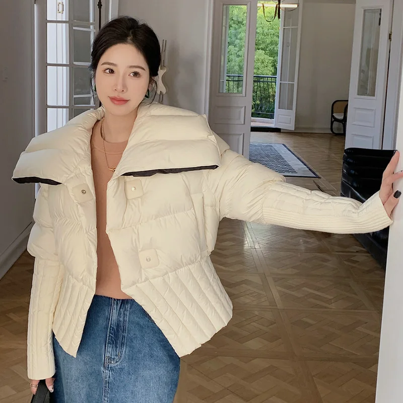 New Arrival Winter Warm Crop Puffer Coat Women Light Goose Down Jacket