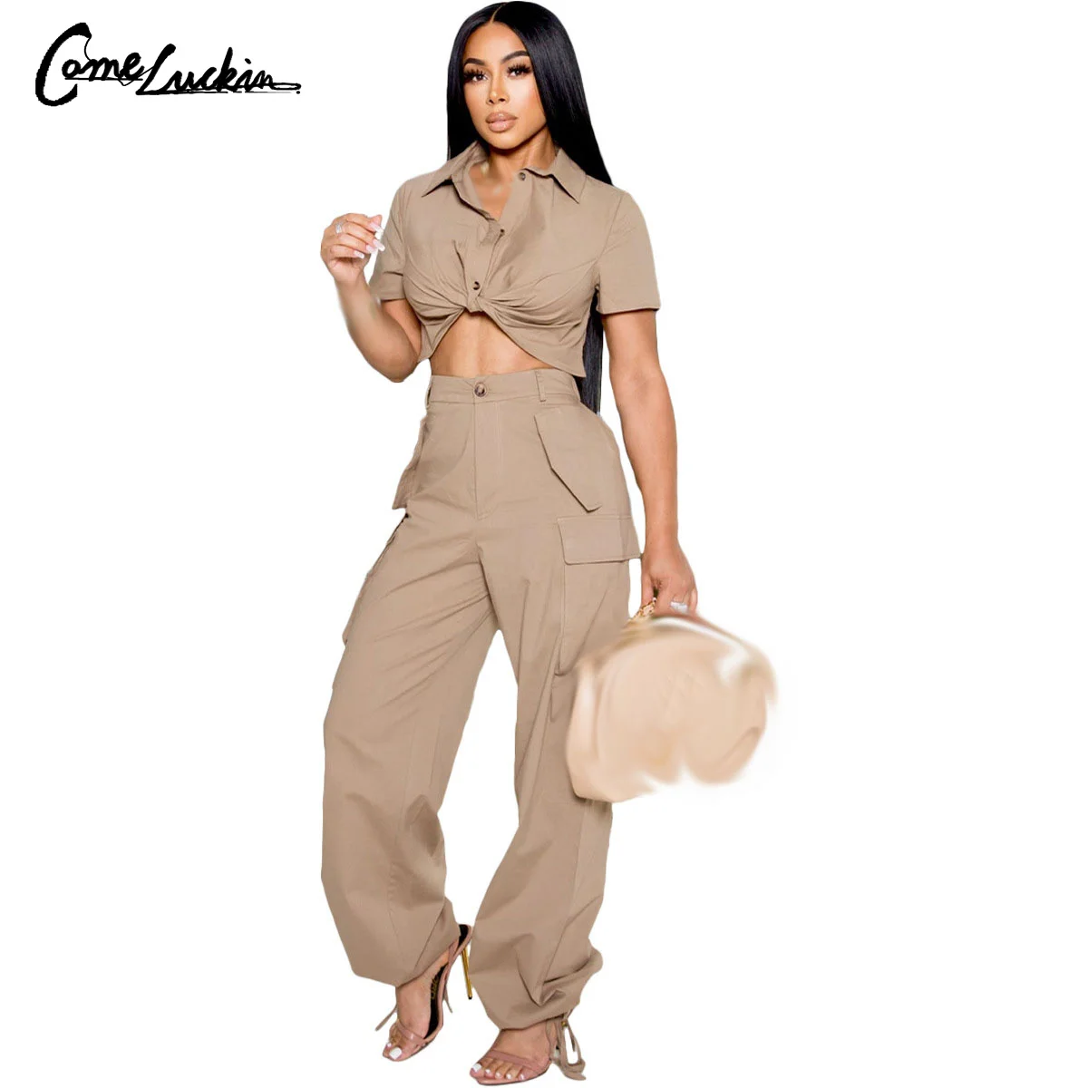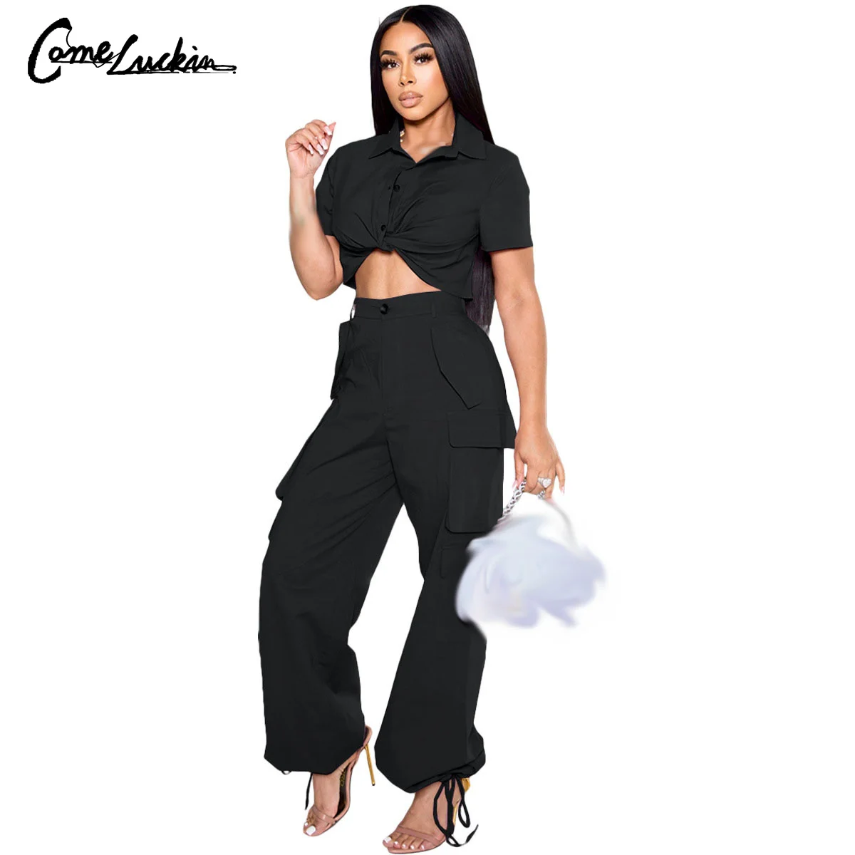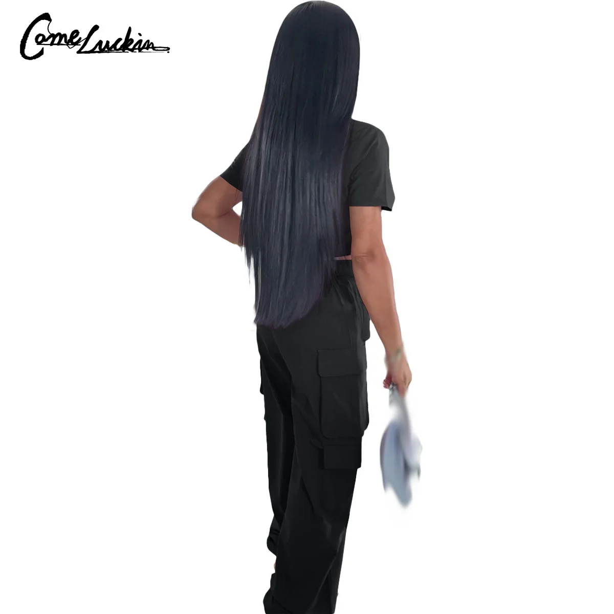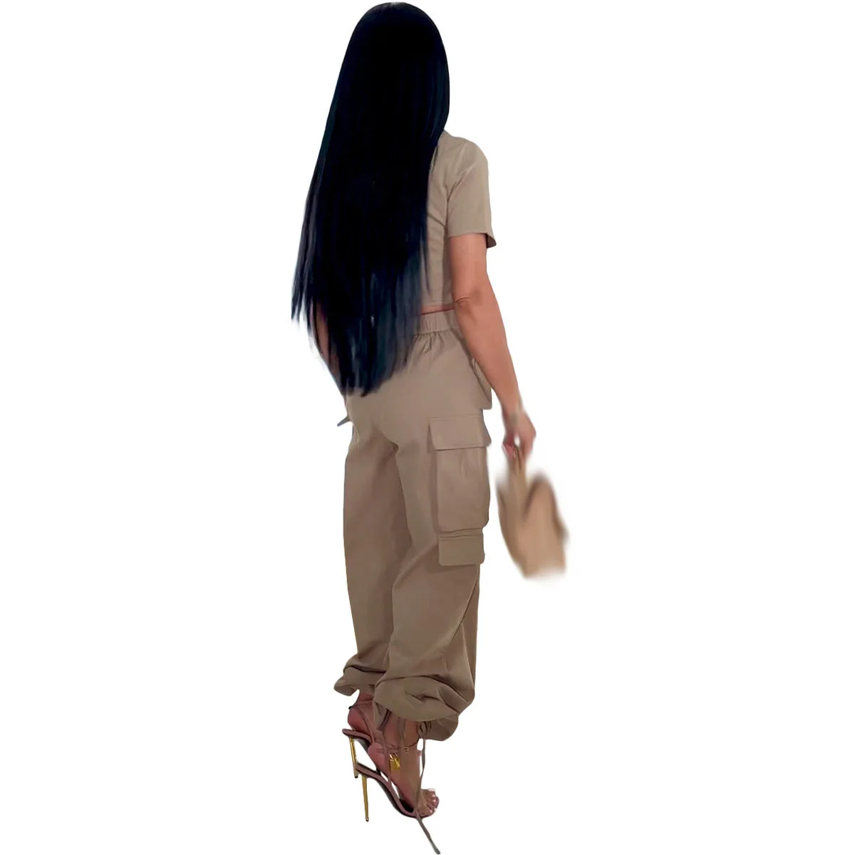 New Arrival women Solid 2 Piece Set Women Cargo Pants Women Lounge wear Blank T Shirt Streetwear