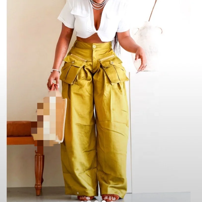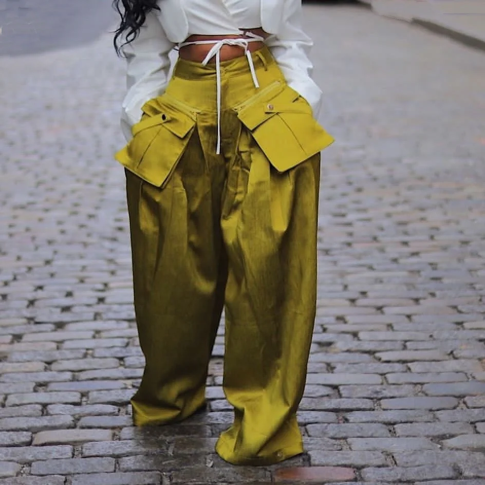 New Arrivals Fall Winter Unique Vintage Straight Pants Women Lady Trending Loose Pocket Pants Fashion Wide Leg Pants