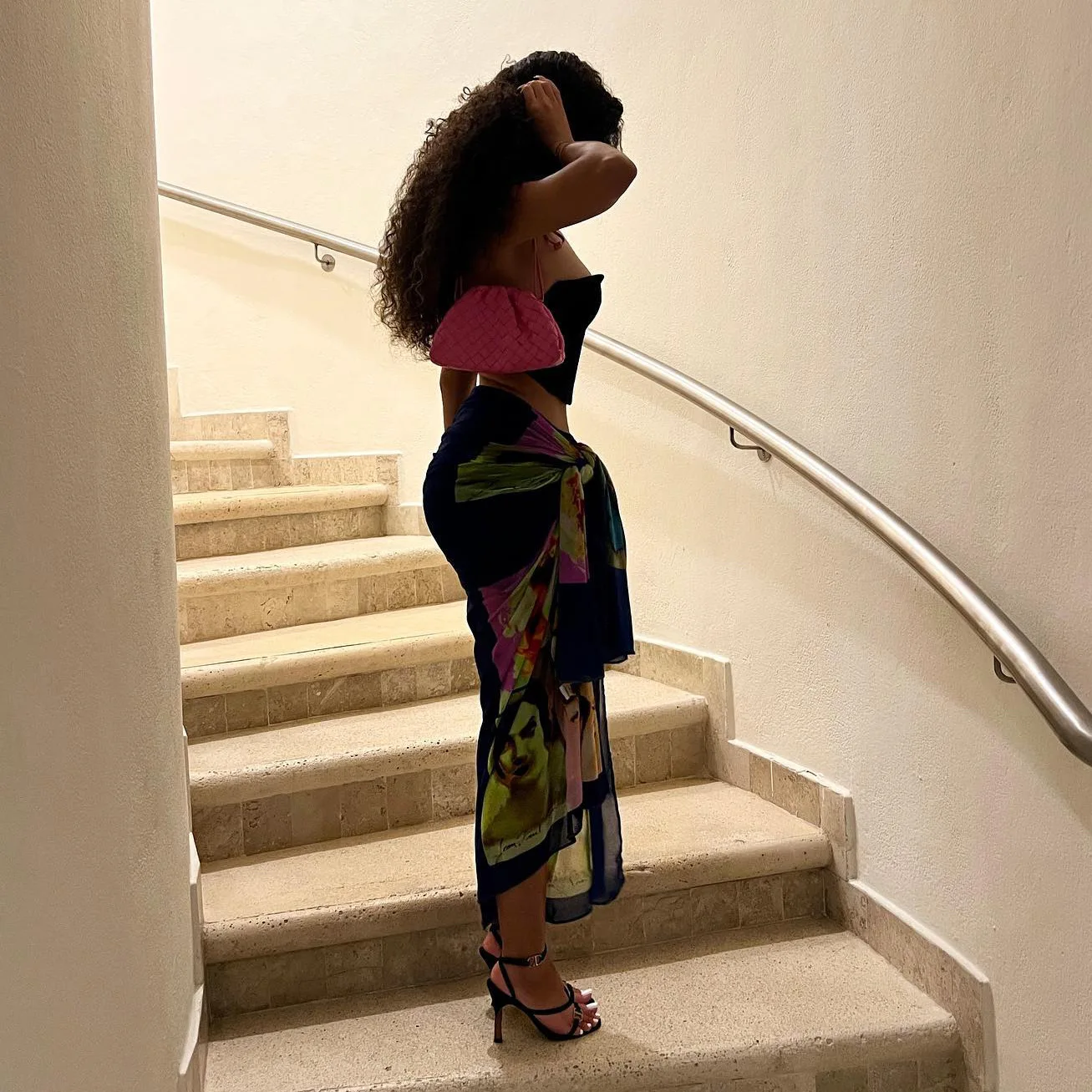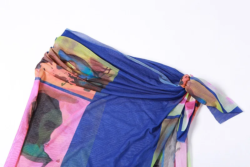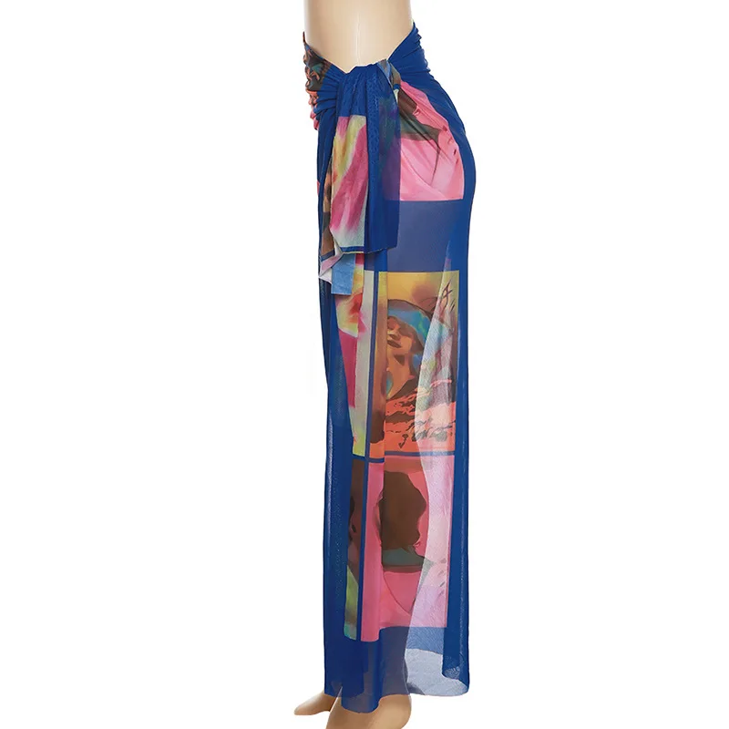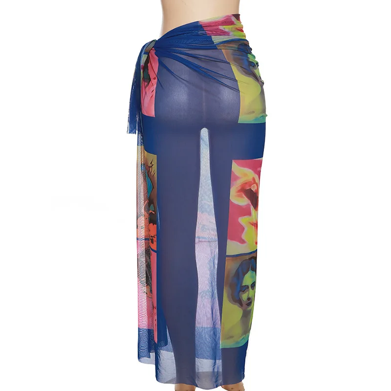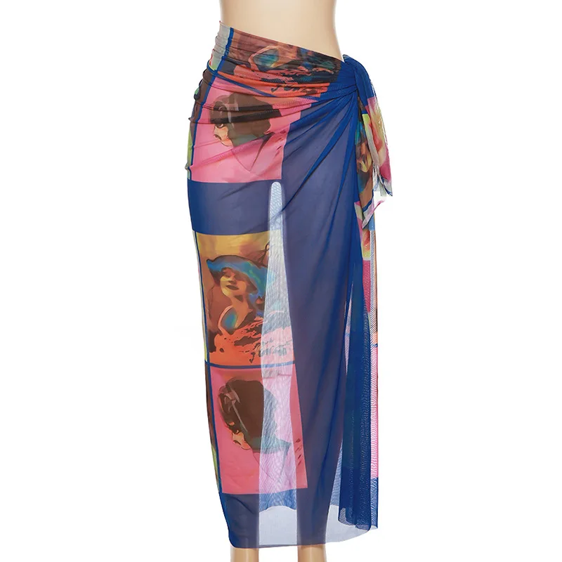 New Arrivals Printed Mesh Transparent Sexy Irregular Long Skirt Dress Ladies Fashion Street Wear Skirt