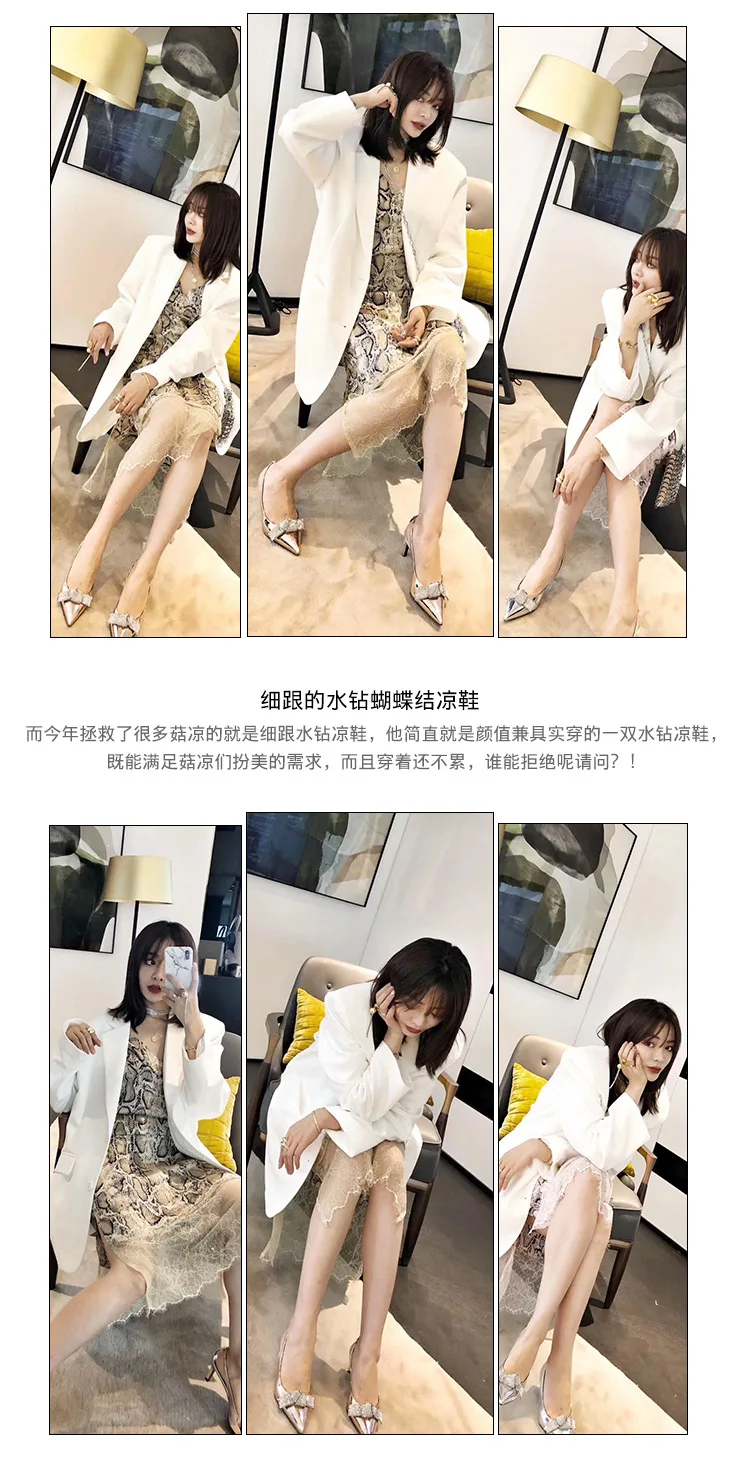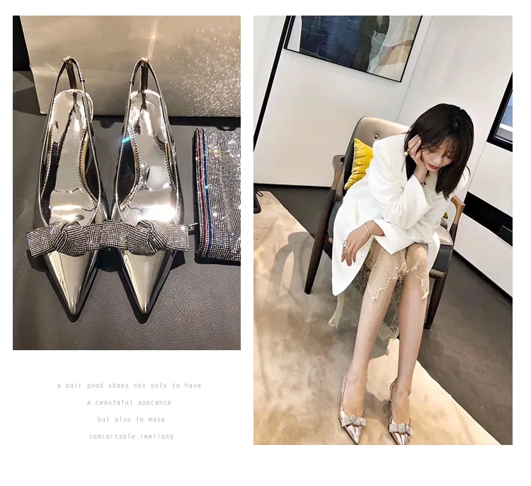 New Arrivals Rhinestone Pointed Toe High Heel Shoes Fashion Bow Sandals For Women sandals for women luxury