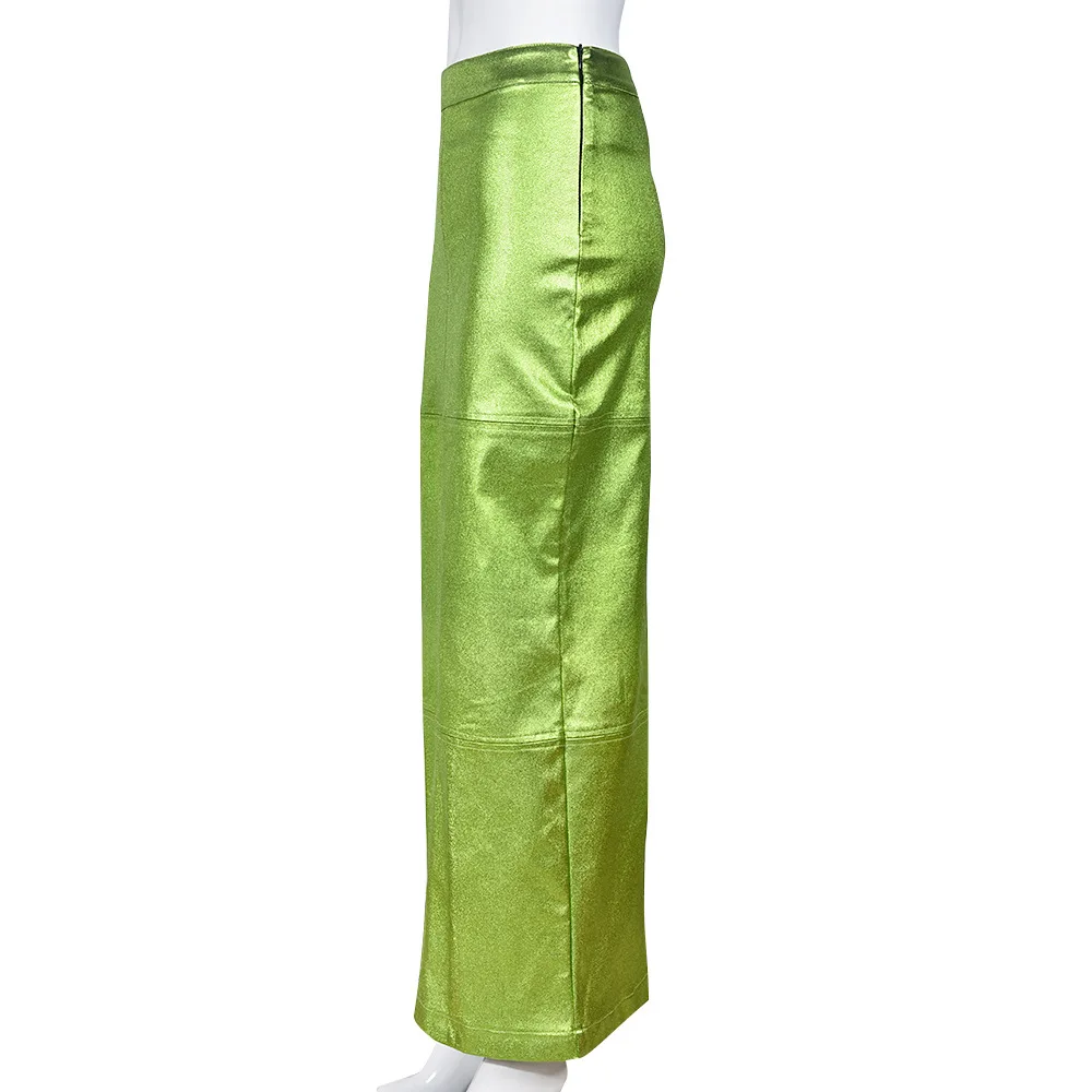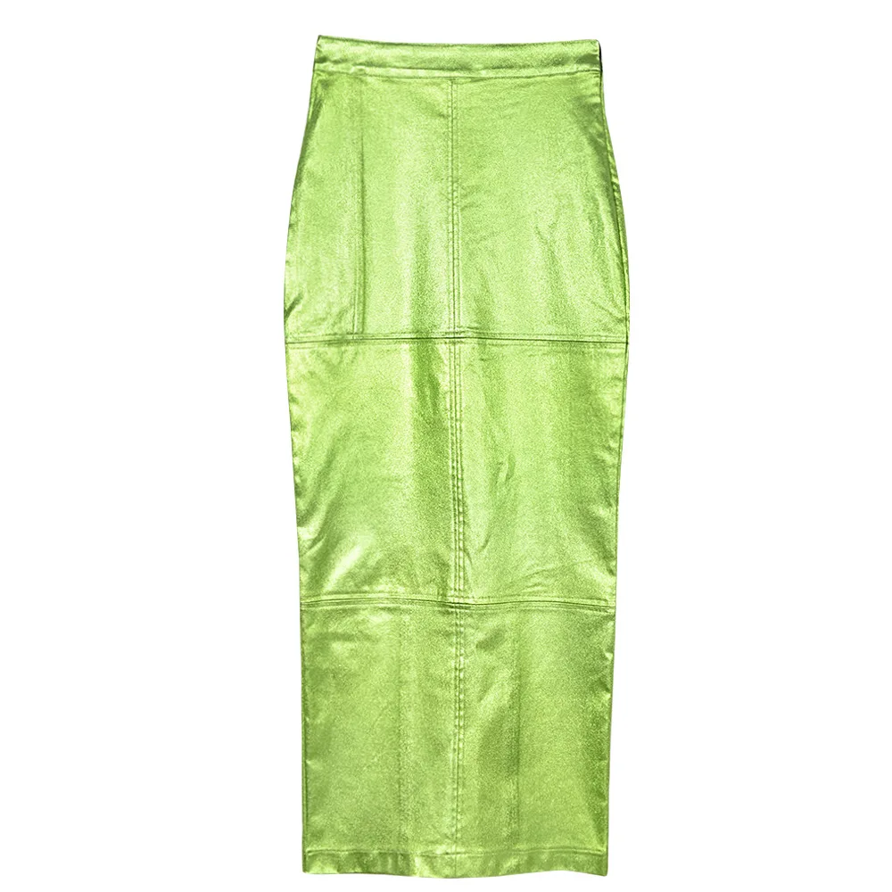 New arrivals summer women elegant PU leather maxi long skirts for ladies fashion vintage metallic women's skirts