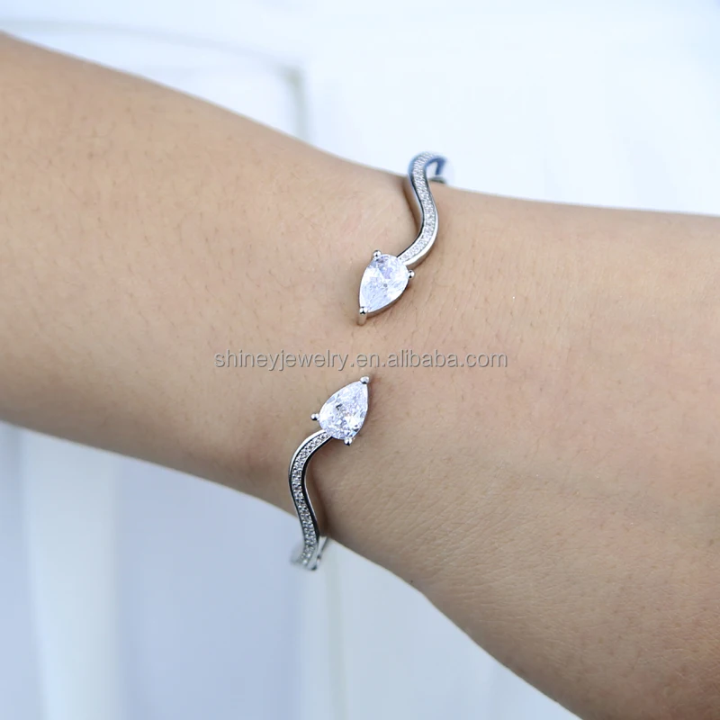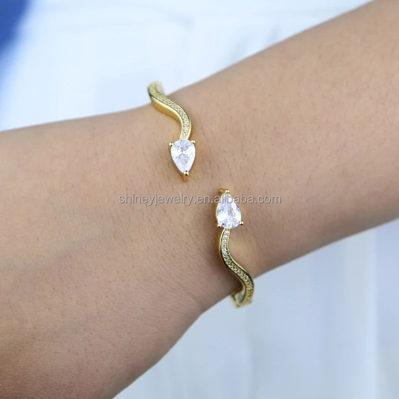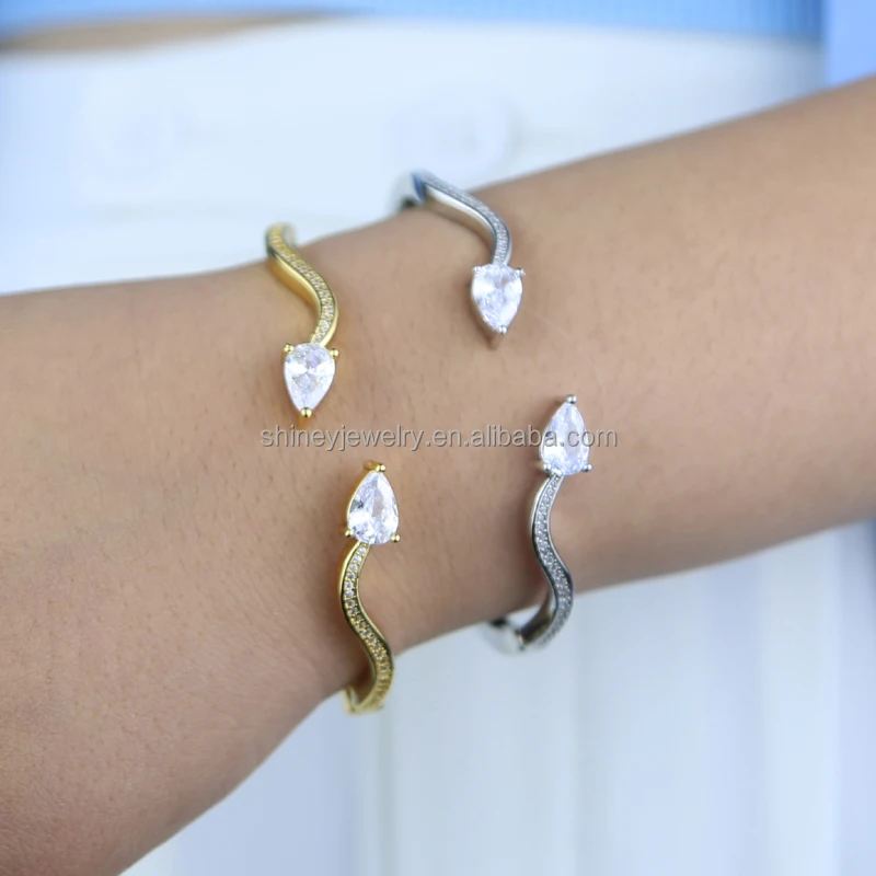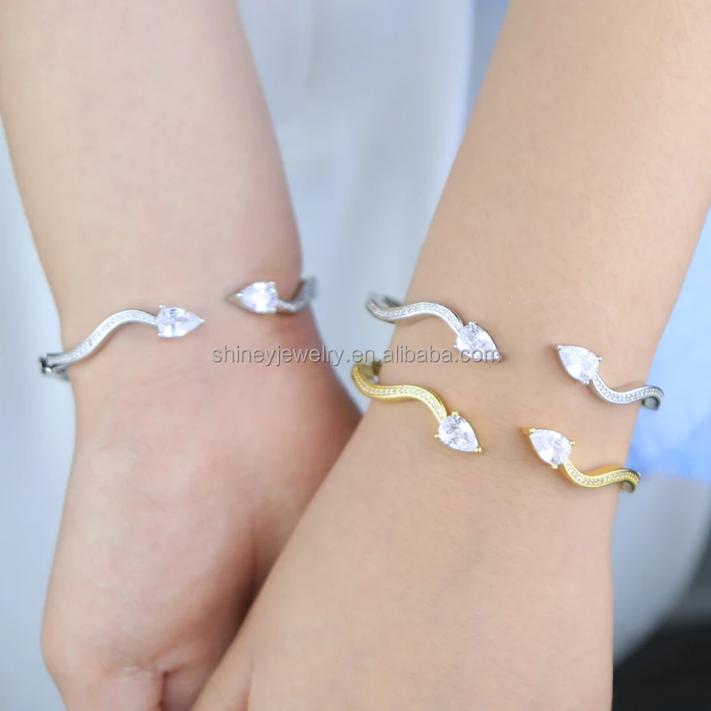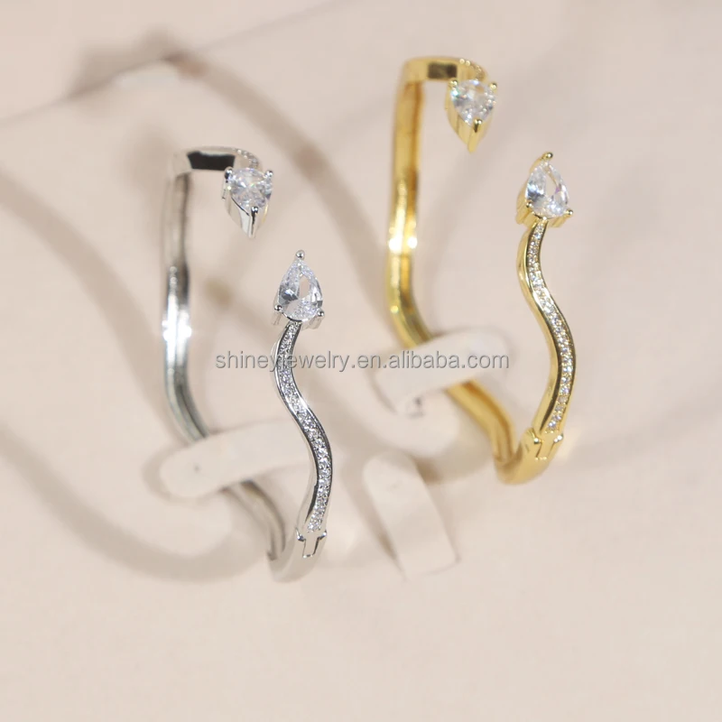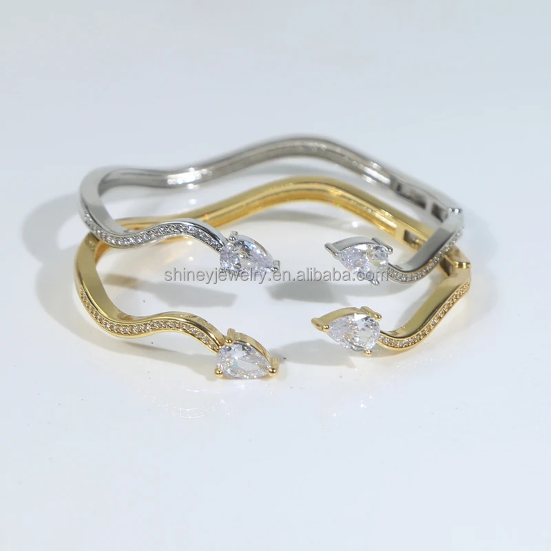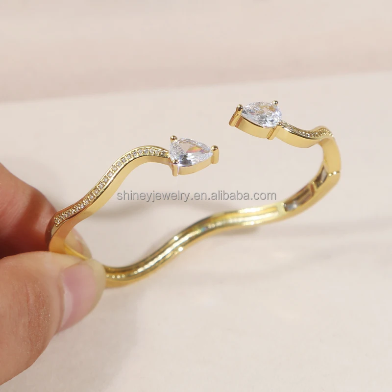 New Arrived Bling Fashion Design Women Girl Gift Party Jewelry 5A Cubic Zirconia CZ Wave Shape Bangle Bracelet