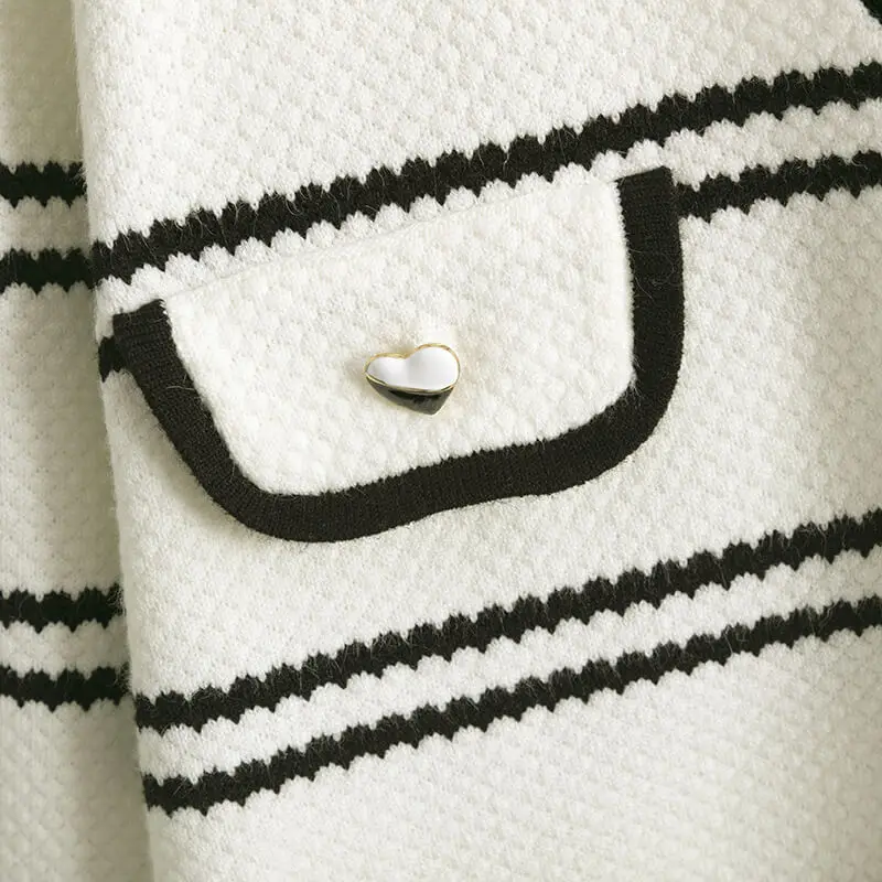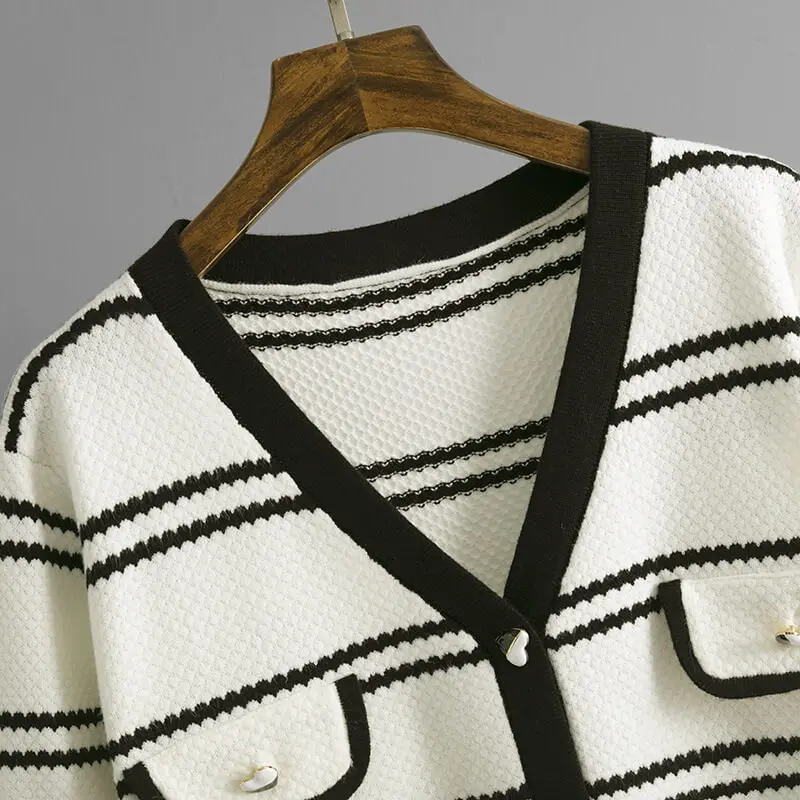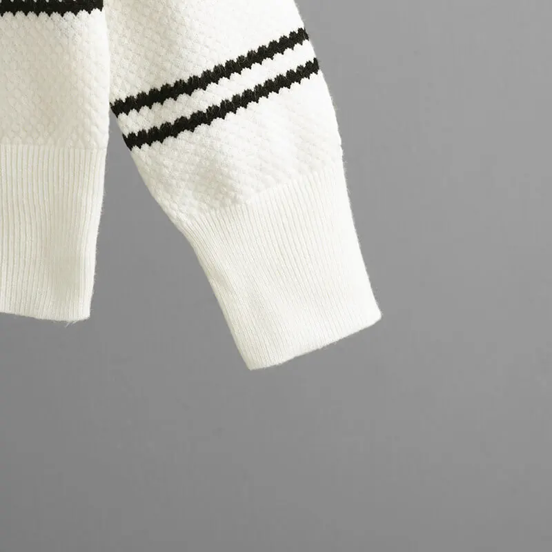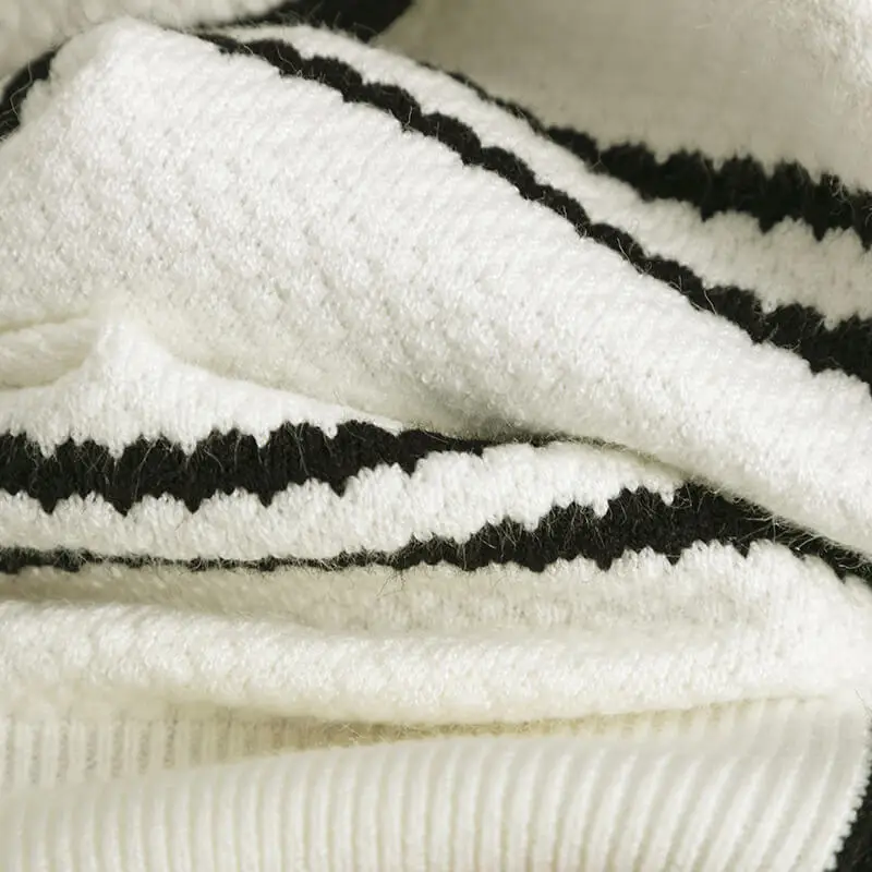 New Autumn And Winter V-neck White Black Striped Lady Knitted Clothes Pullover Knit Sweater