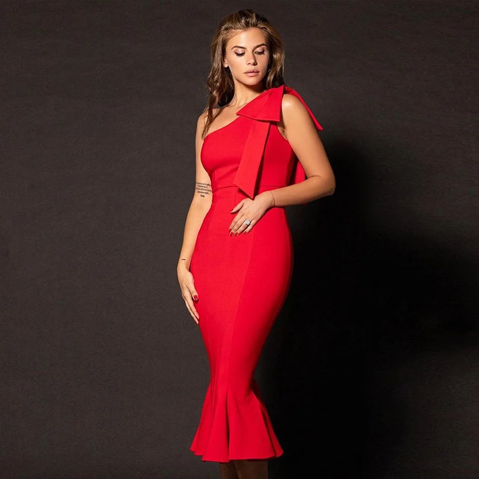 New Bandage Dress Bodycon Single Shoulder Butterfly Bow Red Evening Dresses High Quality Fashion Party Elegant Fishtail Vestidos